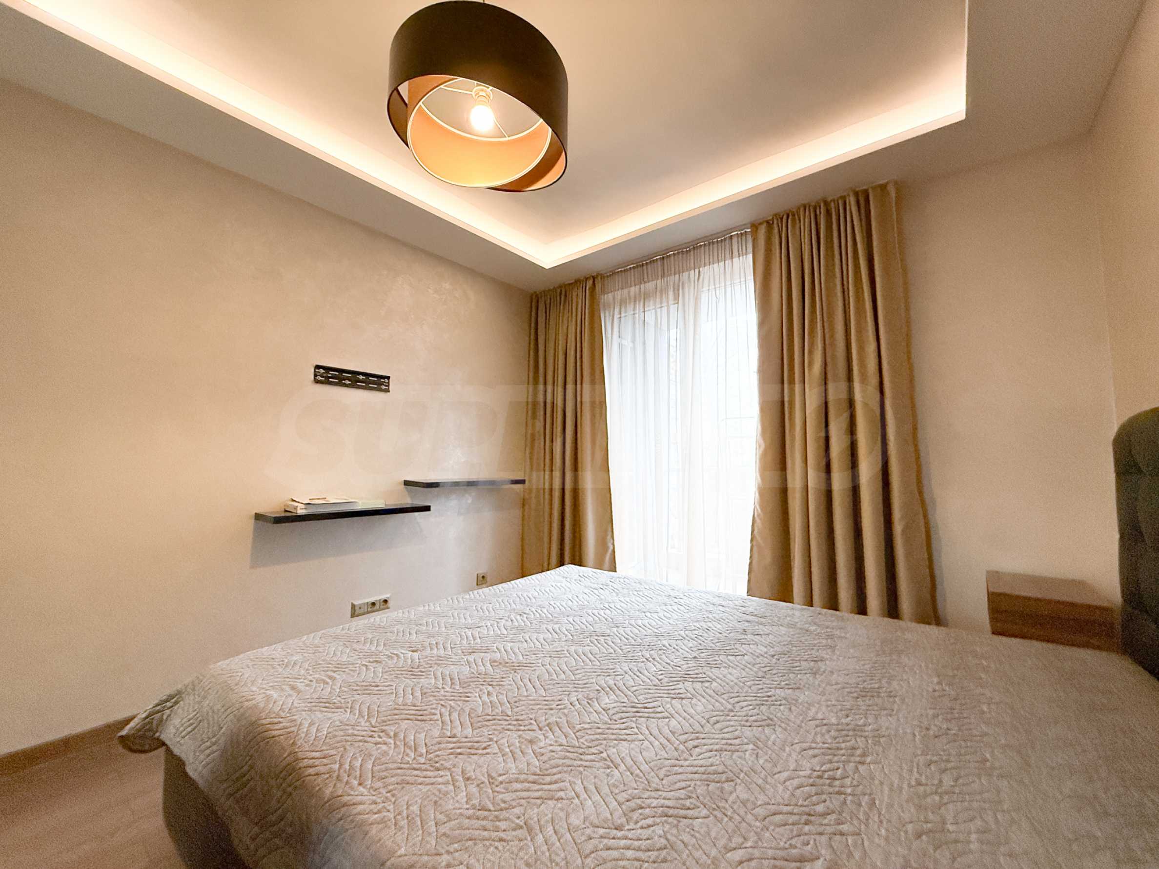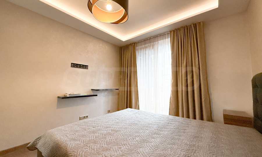 • Спалнята е обзаведена с двойно легло с удобен матрак, нощно шкафче и голям гардероб.