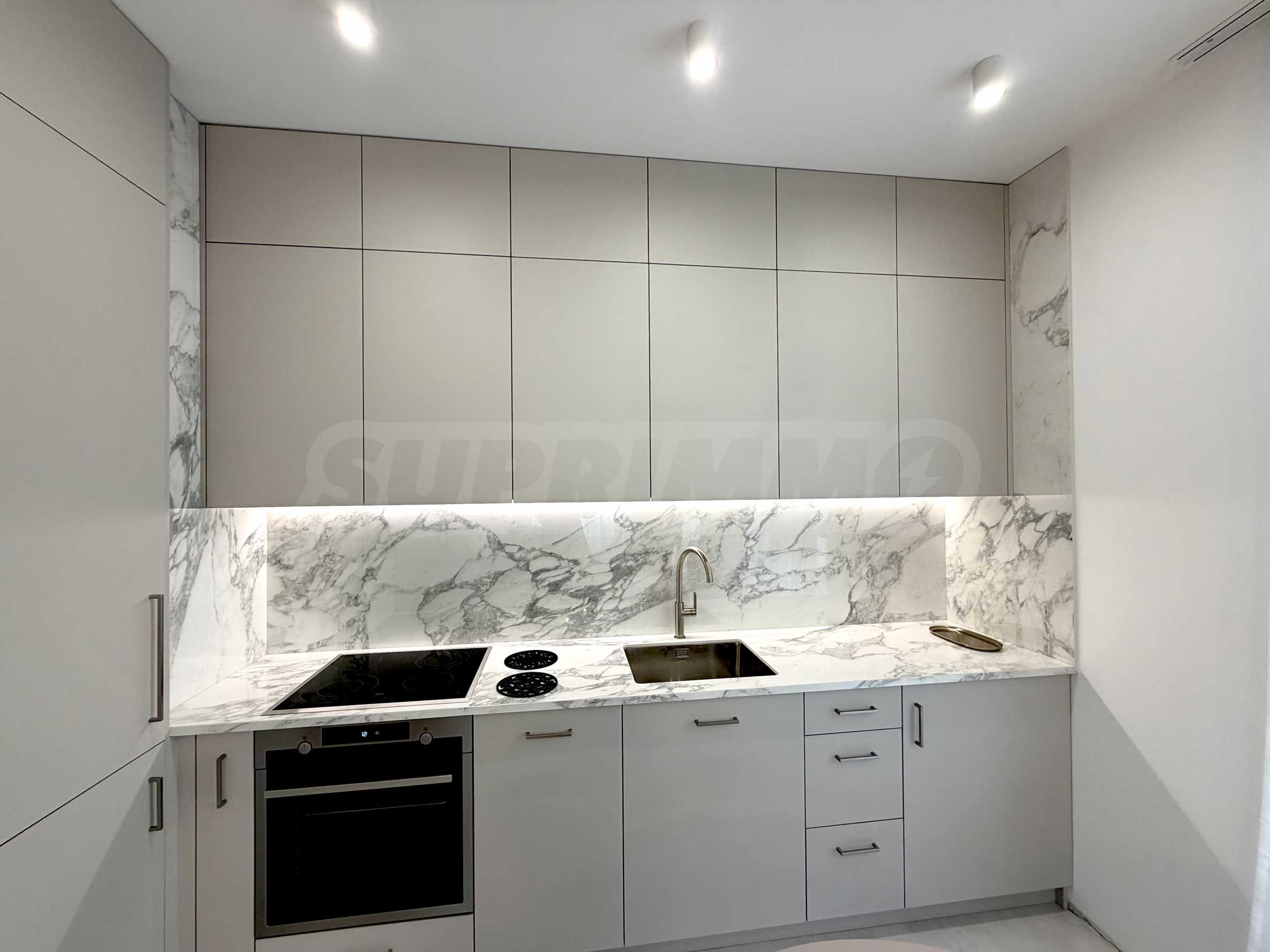Апартаментът е напълно обзаведен и оборудван с висок клас AEG уреди, включително пералня, сушилня и миялна. Прекарани са телевизия и Интернет. В спалнята е предвидено допълнително пространство за багаж чрез подматрачно съхранение.