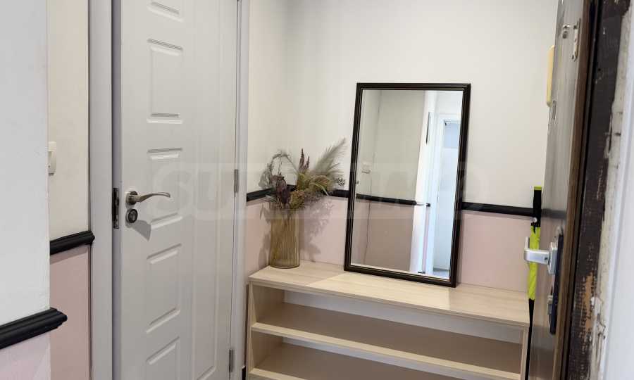 Апартаментът предлага отлично разпределение, включващо просторна дневна с кухненска част, две самостоятелни спални, баня с тоалетна, които осигуряват комфортно ежедневие. Обзавеждането е подбрано с внимание към детайла, с качествени материали и модерни електроуреди от висок клас. Общата квадратура е 75 кв.м.
