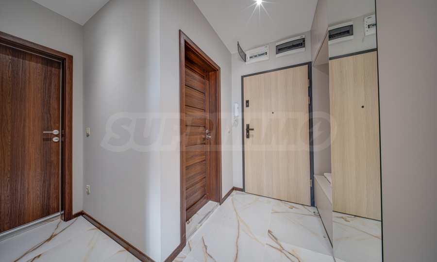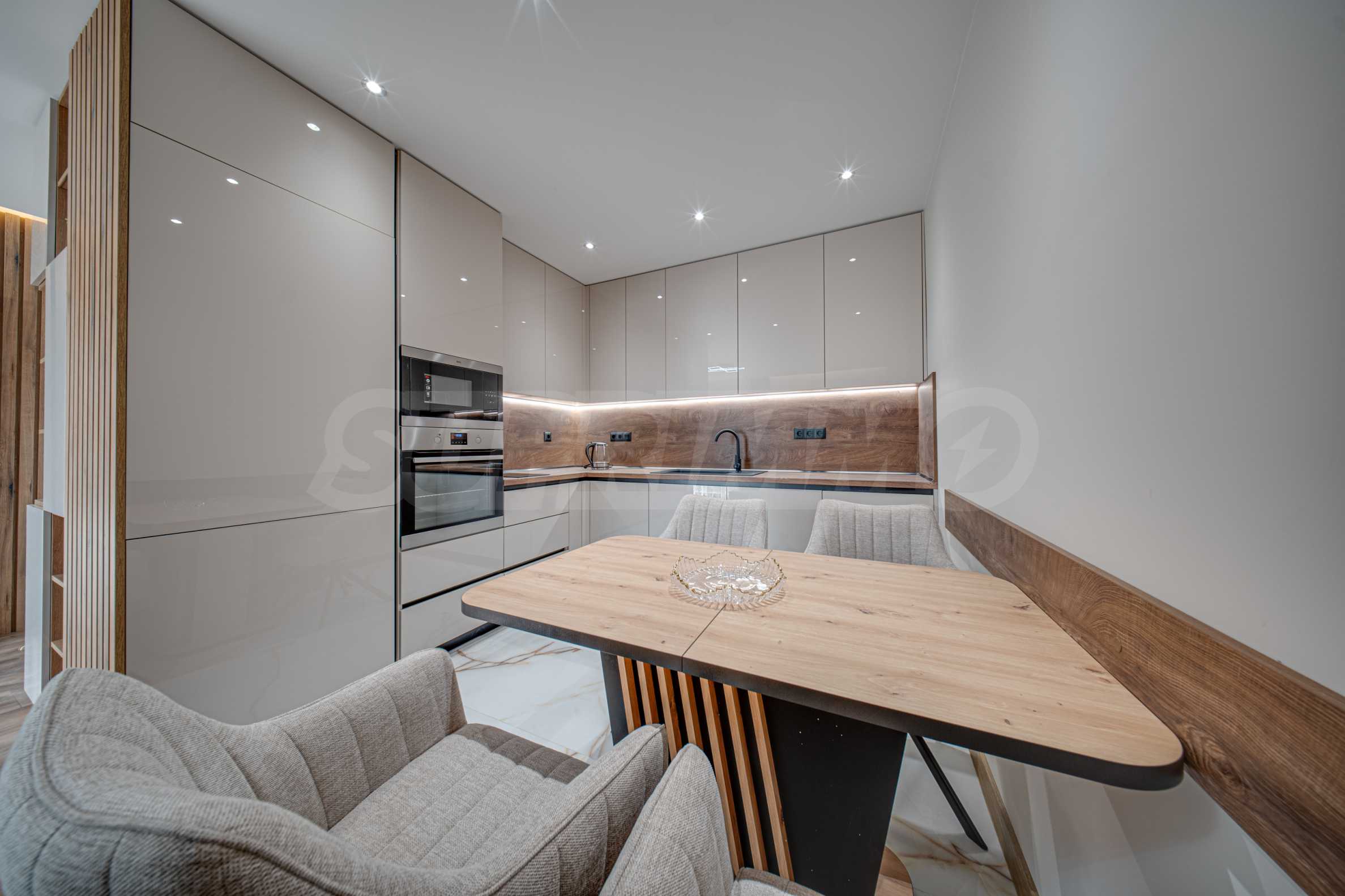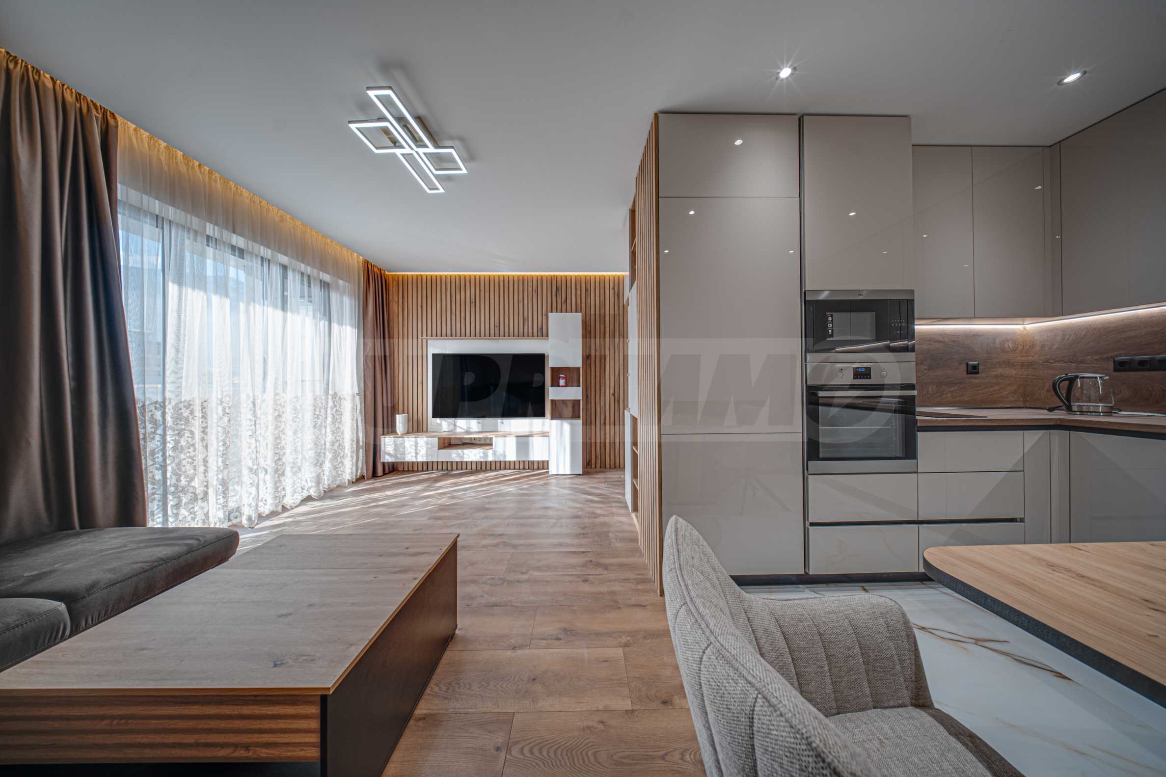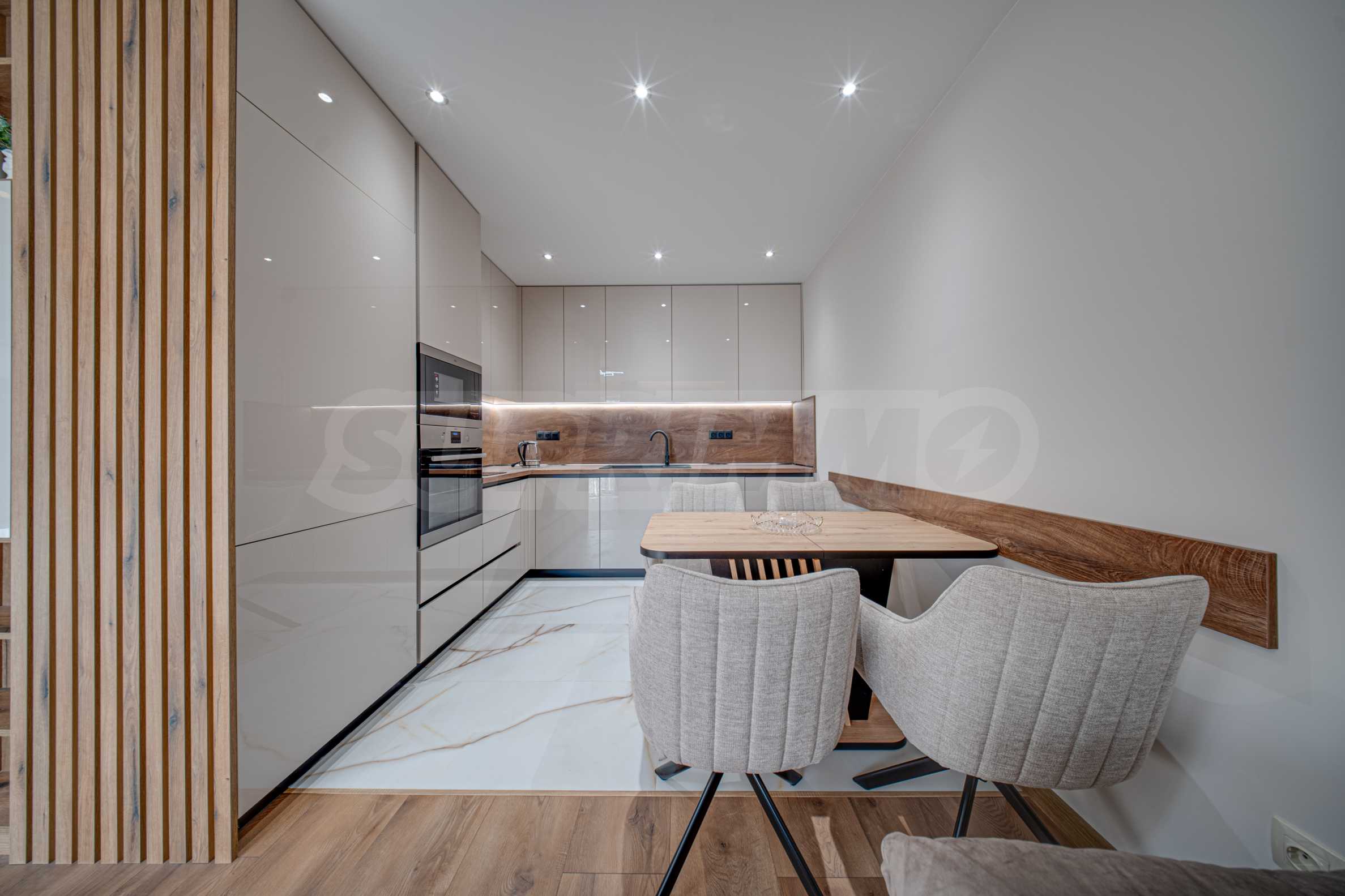 Жилището е чисто ново, намира се в нова, модерна сграда и е с обща площ от 75 кв.м. Разположено е на 5-ти етаж от общо 7, с два асансьора и отлично поддържани общи части. Апартаментът е обзаведен с изключително внимание към детайла, като интериорът е издържан в меки, земни тонове, създаващи усещане за спокойствие, уют и хармония.