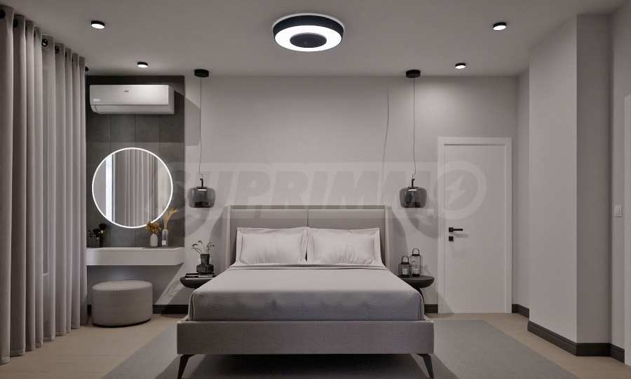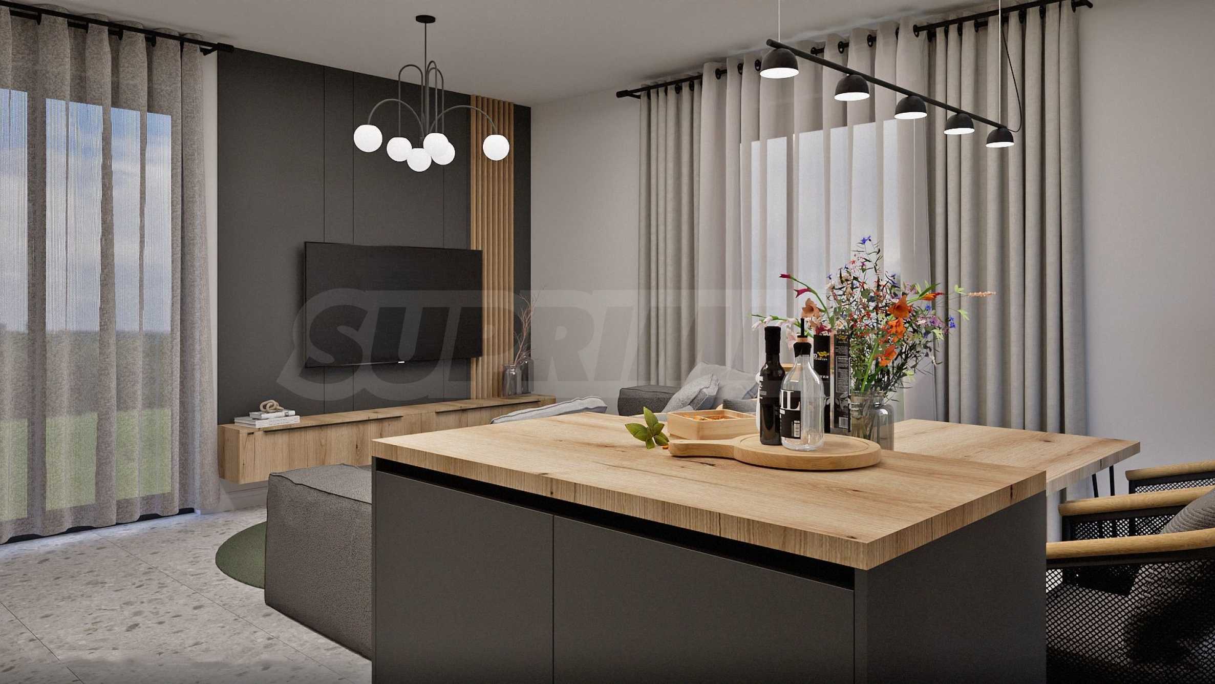 Къщата се издават в степен на завършеност "до ключ", луксозно обзаведени и оборудвани в съвременен и елегантен стил с висококачествени материали. Висок клас изолация, 5-камерна дограма Rehau с отлични топло- и шумоизолационни качества, стъклени парапети на балконите. Отоплението и охлаждането са решени посредством подово отопление и климатици.