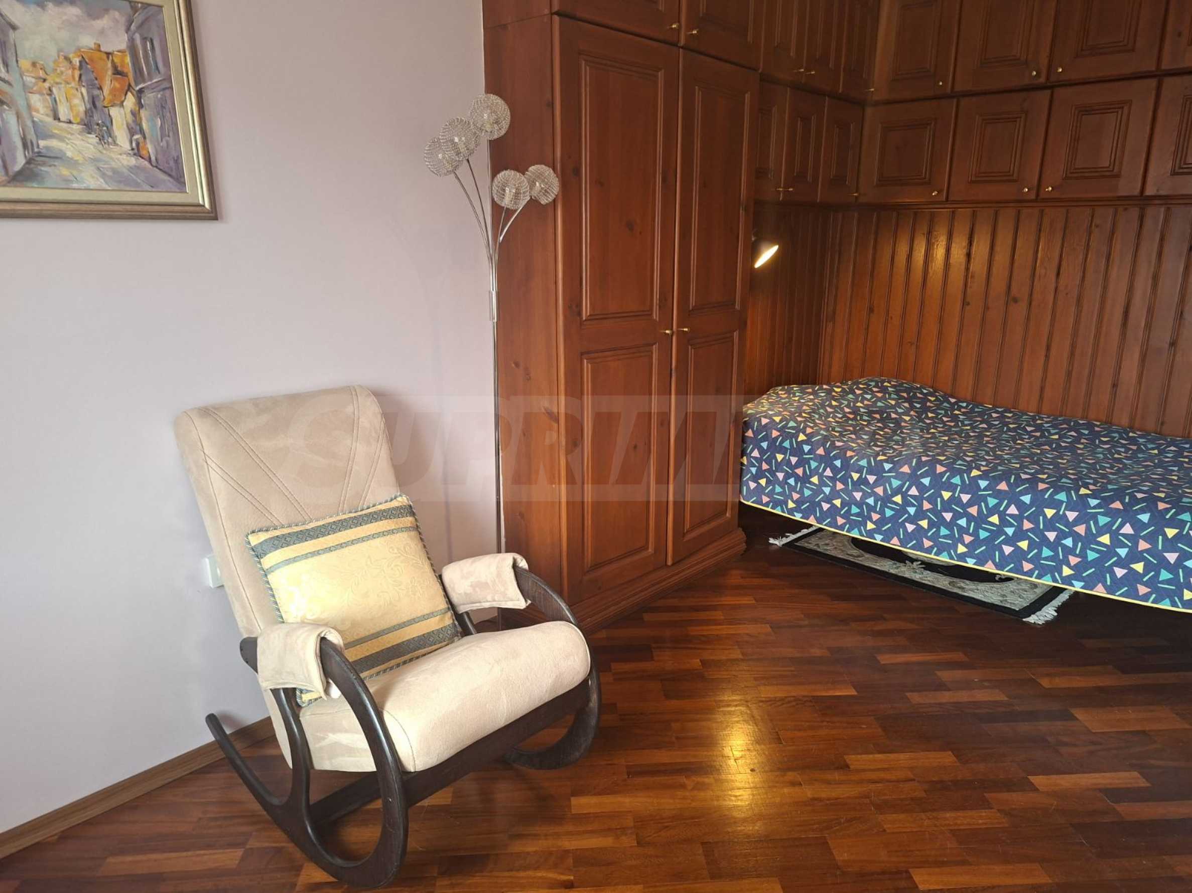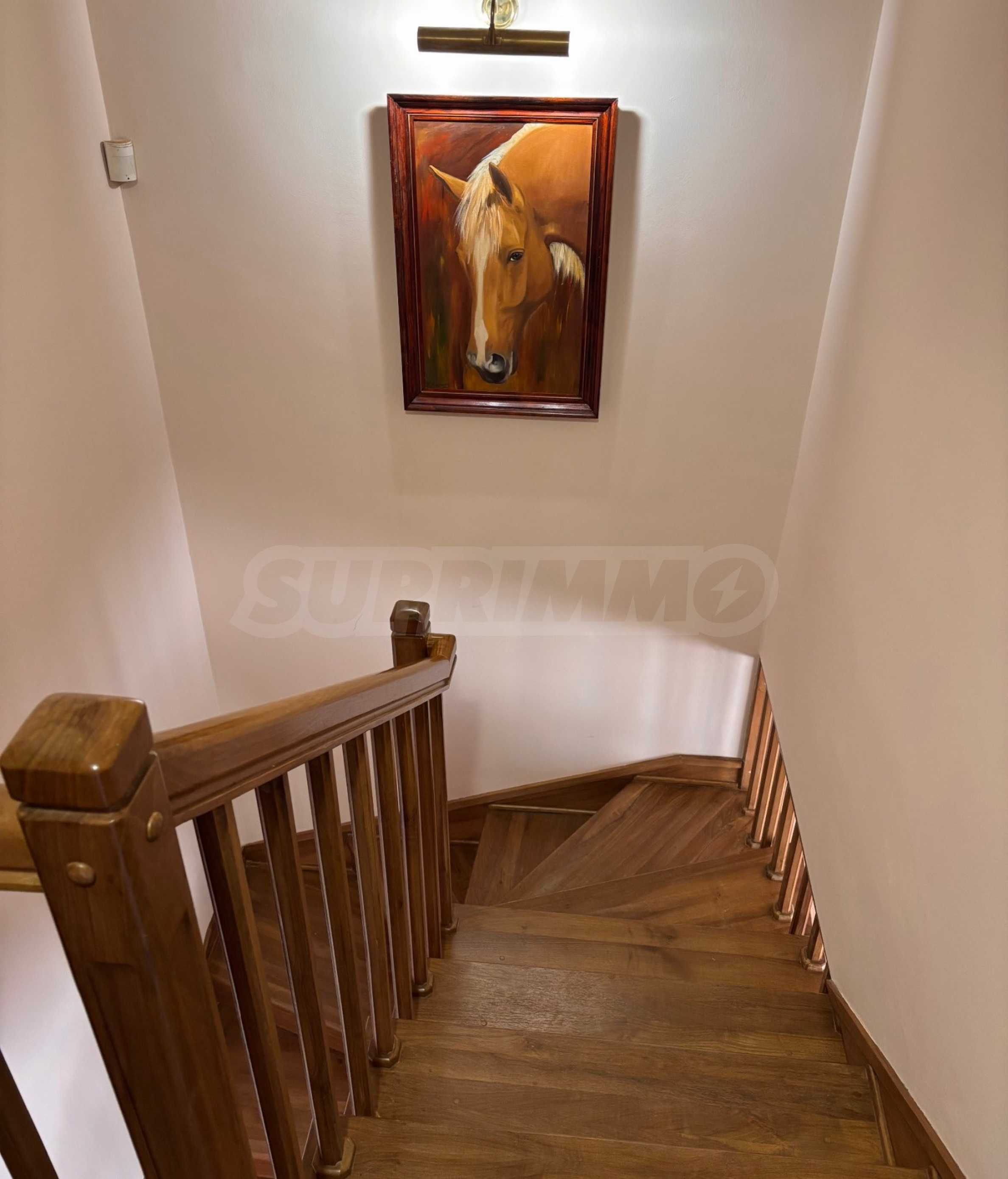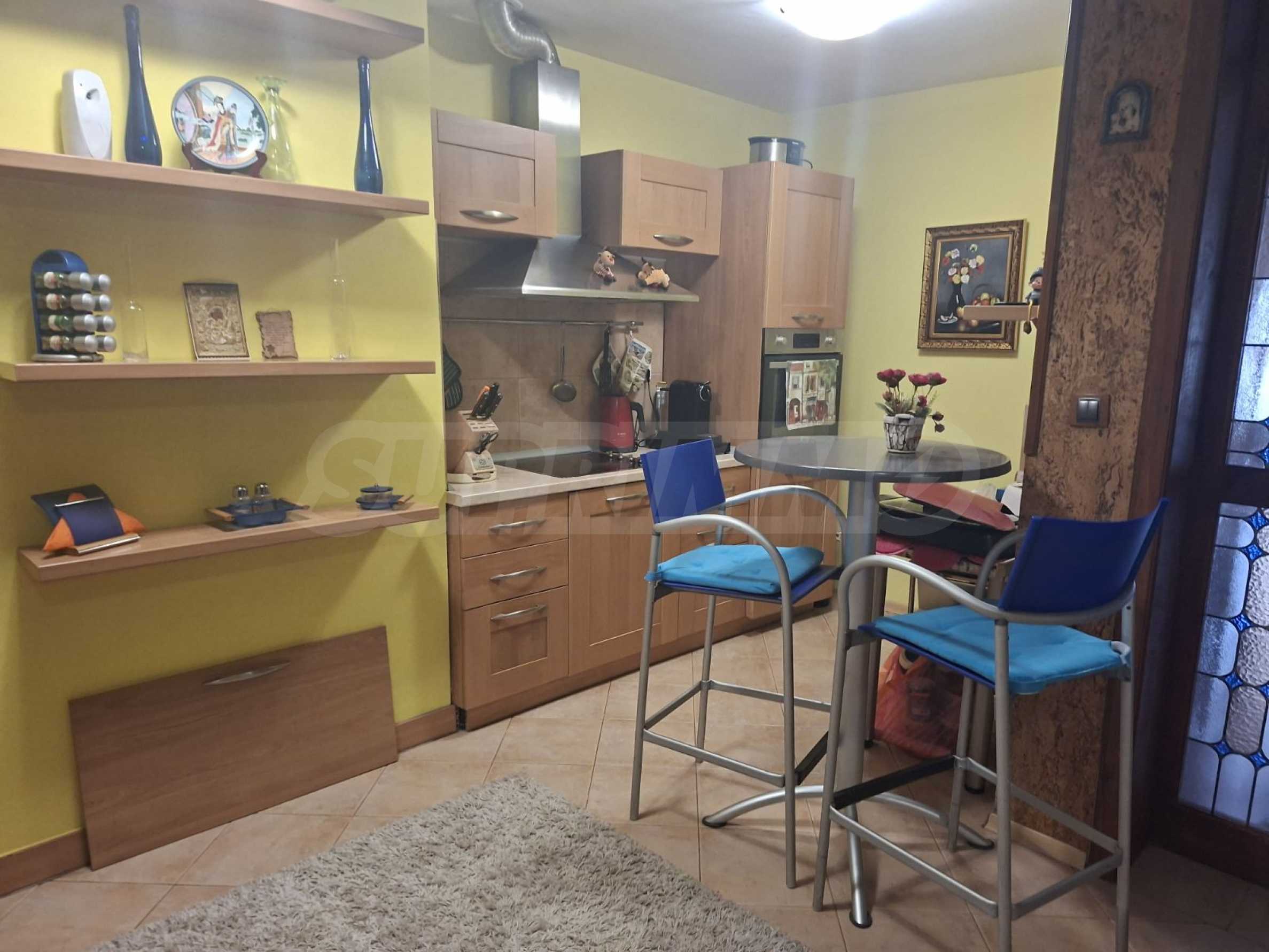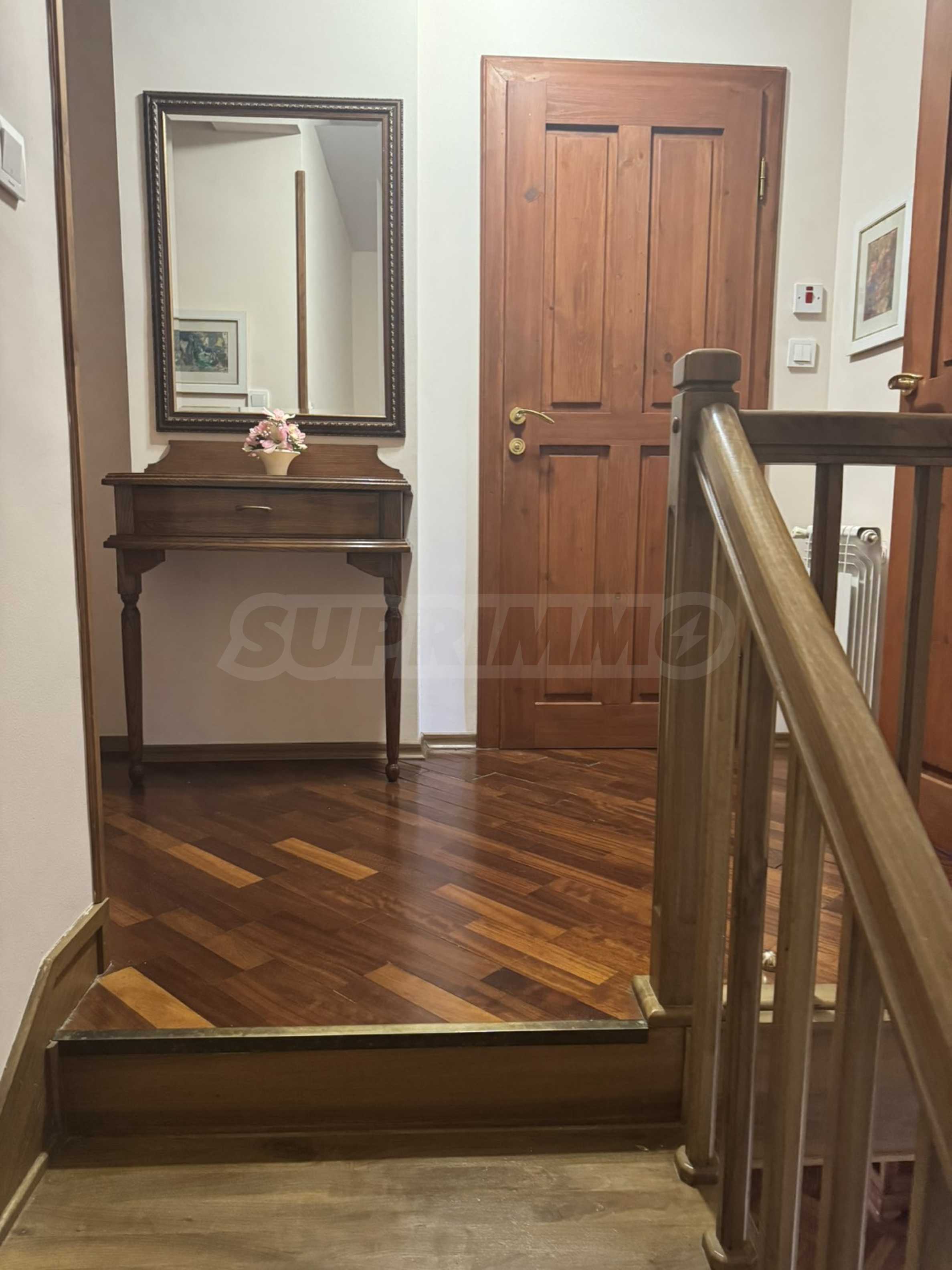 На първото ниво са разположени антре, кухня, трапезария и светла дневна зона, оформени като място за отдих и споделени моменти. Апартаментът е напълно обзаведен и оборудван с всичко необходимо за едно съвременно домакинство, а настилките от естествен паркет придават елегантност, мекота и неподправено усещане за уют.