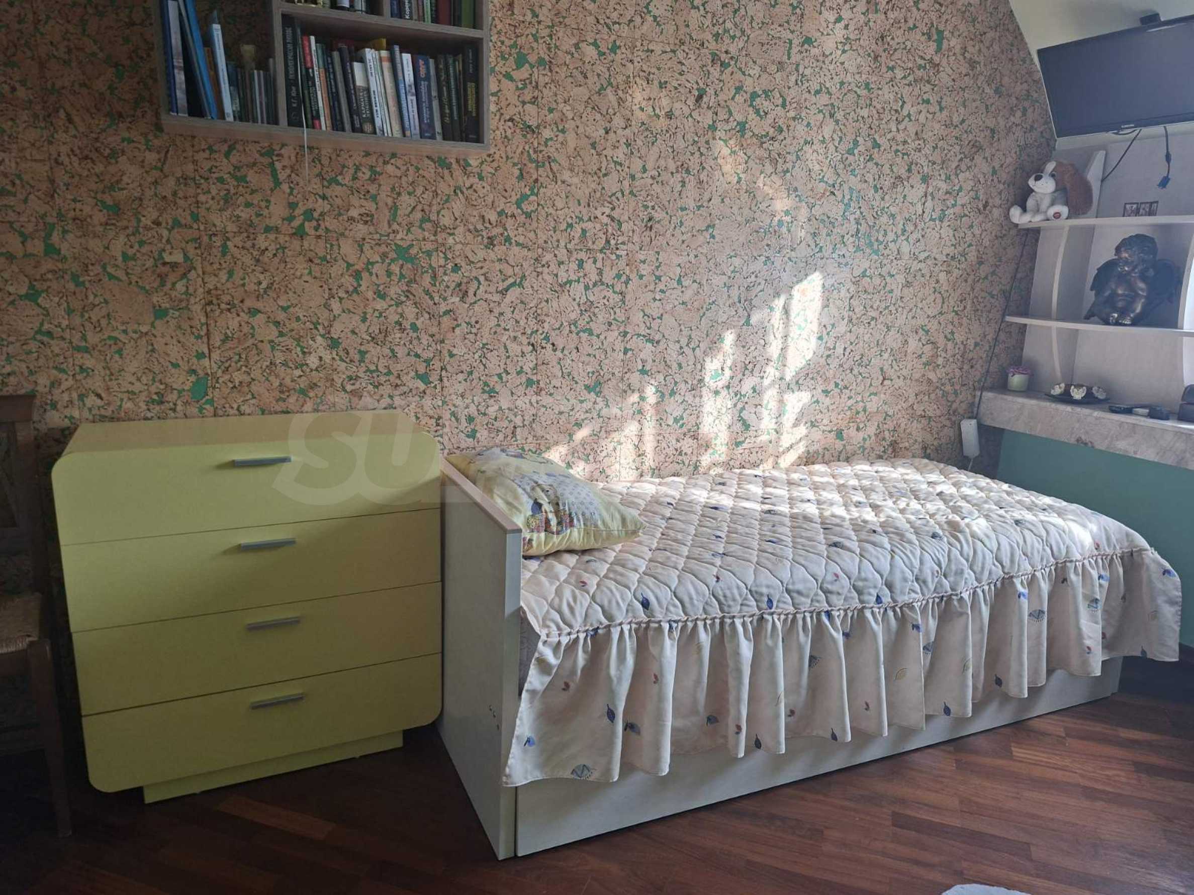 Второто ниво предлага функционално и приятно разпределение с три отделни спални, като едната разполага с директен излаз към просторна тераса. Стаите са подчертани от естествена дървена ламперия, която създава топлина, характер и артистично усещане – пространство, в което човек истински се отпуска и се чувства у дома.
