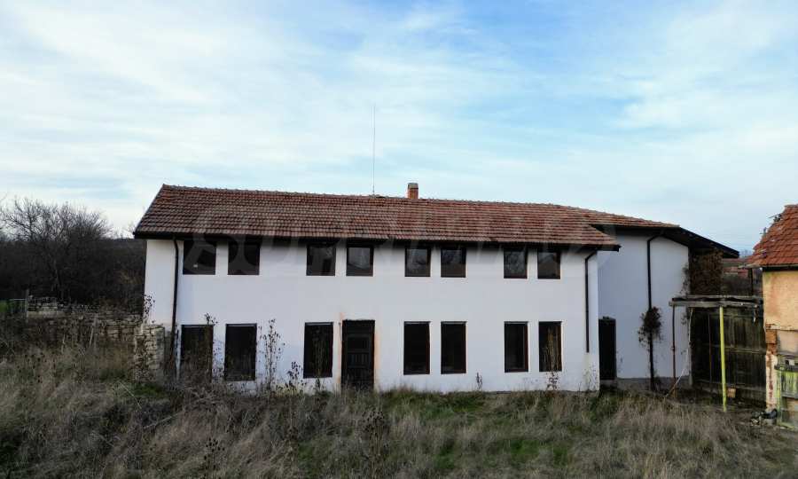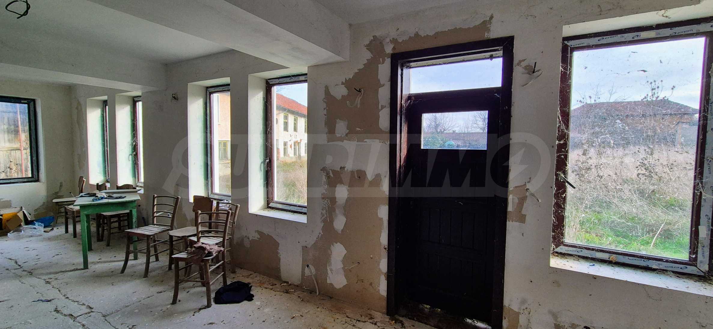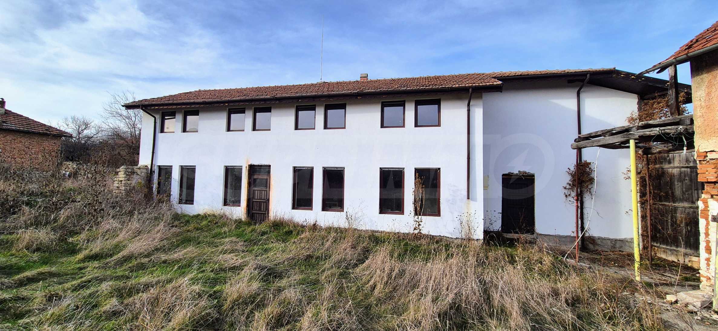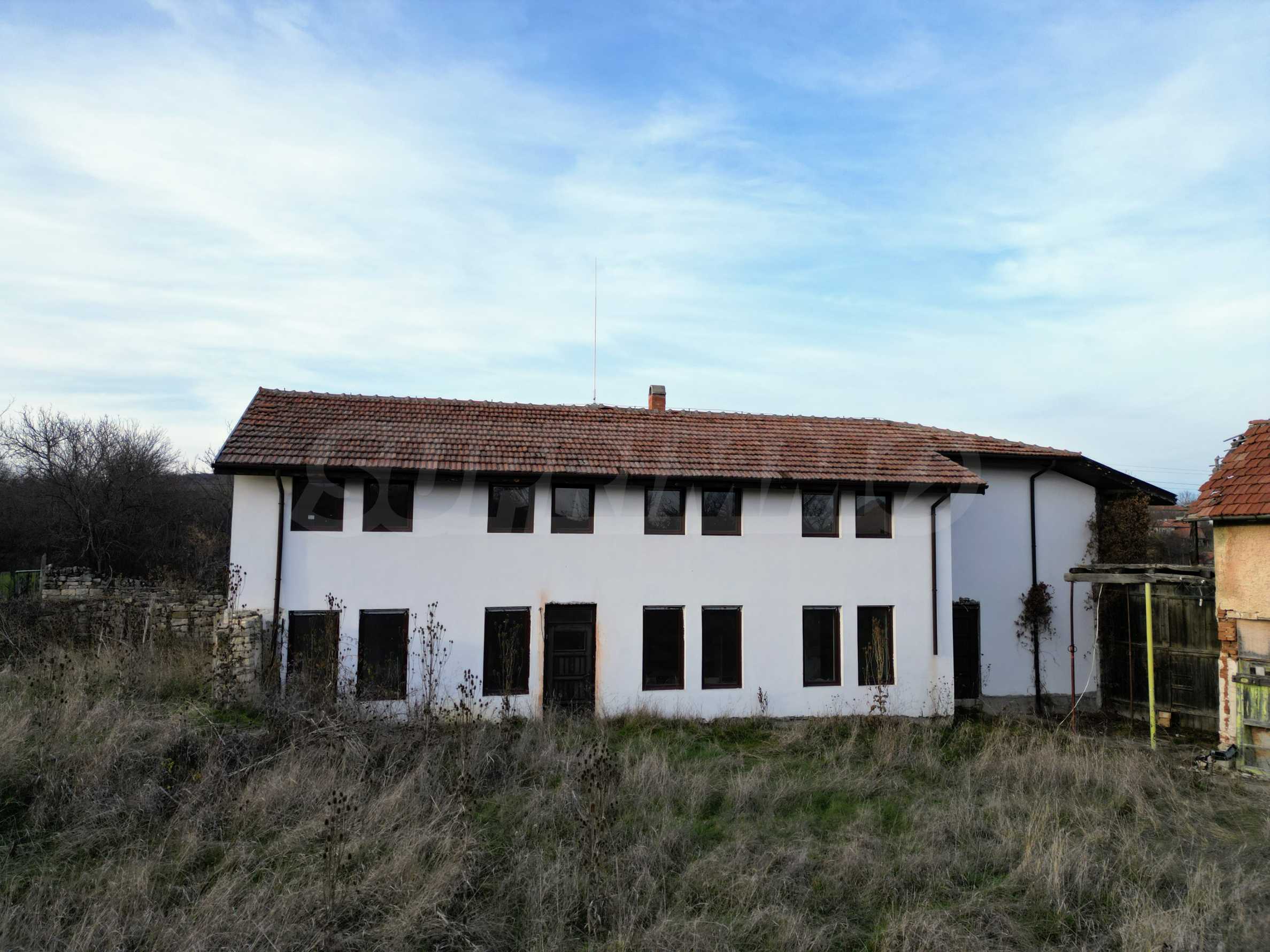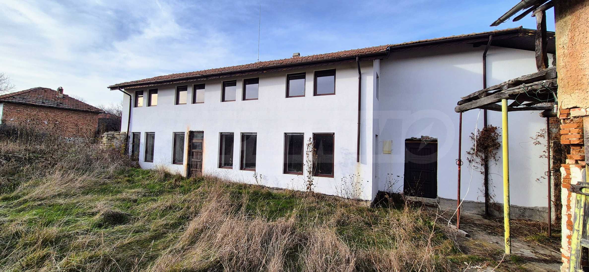Основната двуетажна сграда е с РЗП 231 кв.м. (115.50 кв.м. ЗП) и е в груб строеж, но с извършени съществени подобрения: положена външна мазилка, PVC дограма, нов покрив, гръмоотвод, както и започнати ВиК и ел. инсталации, вътрешна изолация и мазилки.