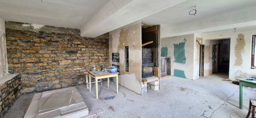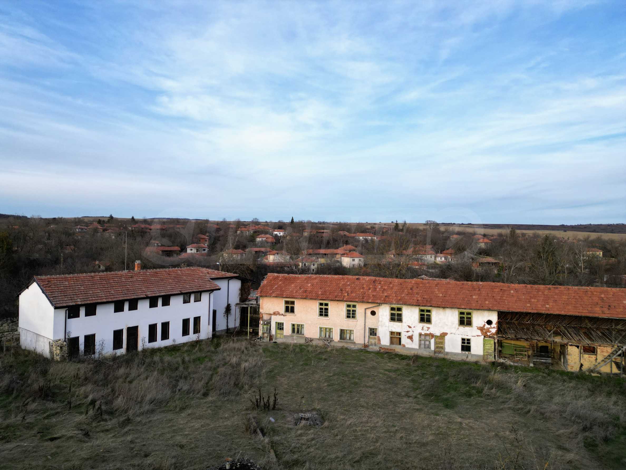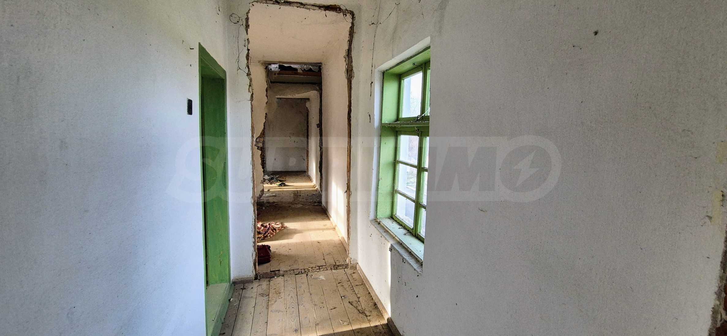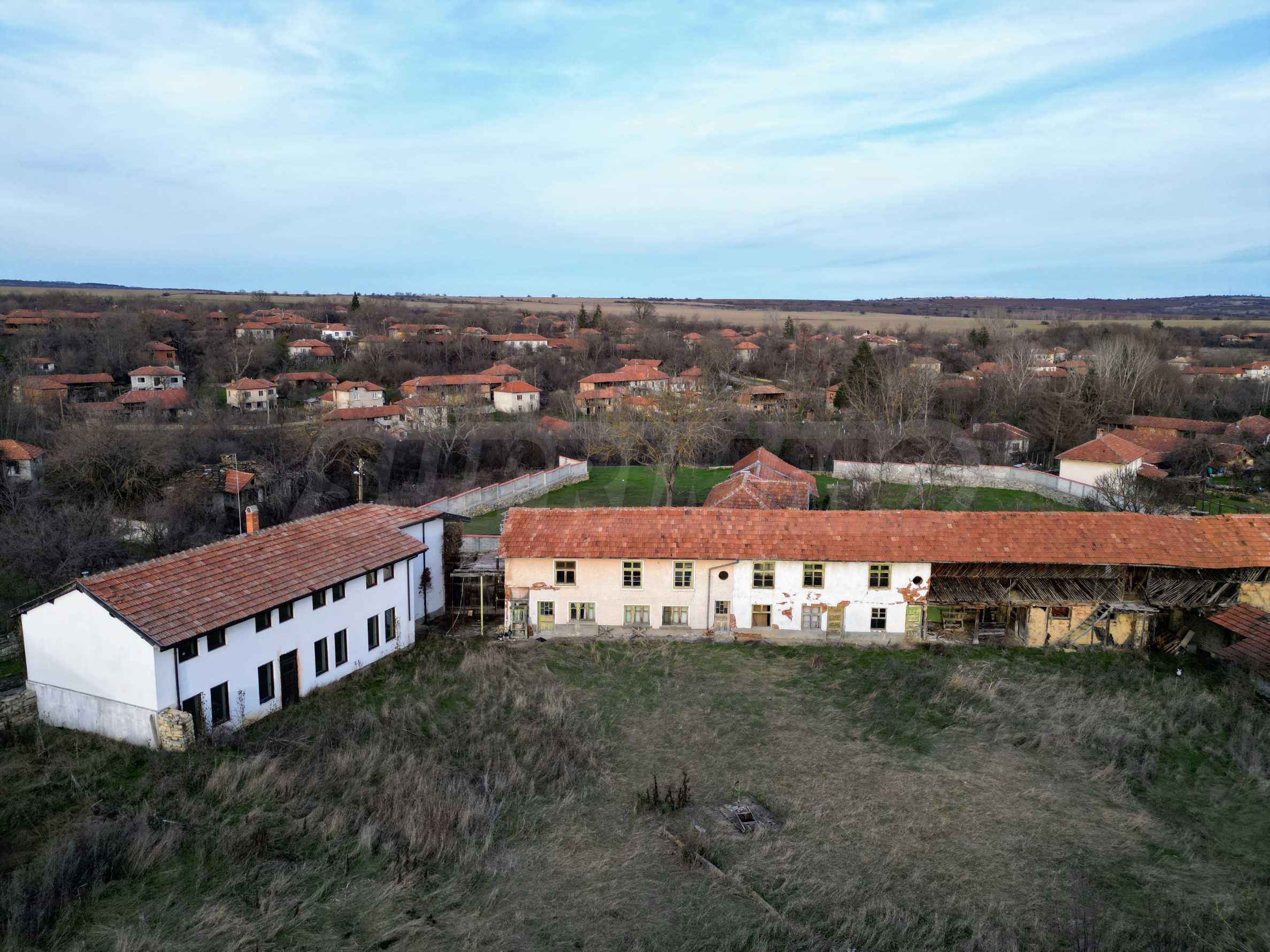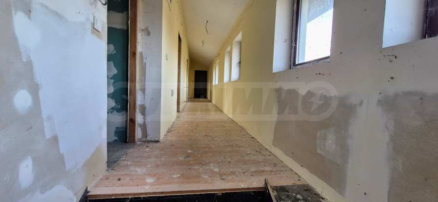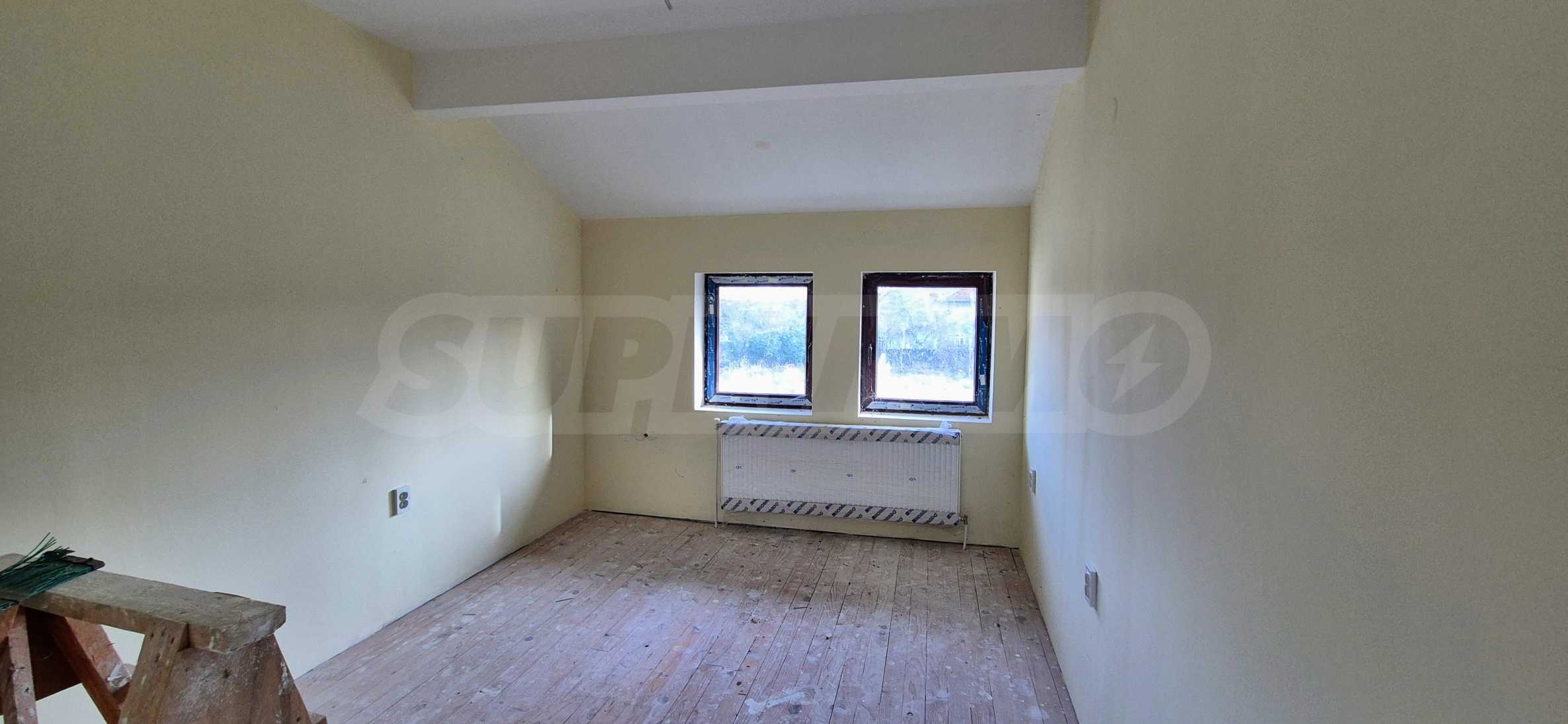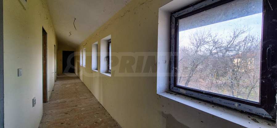 Основната двуетажна сграда е с РЗП 231 кв.м. (115.50 кв.м. ЗП) и е в груб строеж, но с извършени съществени подобрения: положена външна мазилка, PVC дограма, нов покрив, гръмоотвод, както и започнати ВиК и ел. инсталации, вътрешна изолация и мазилки.