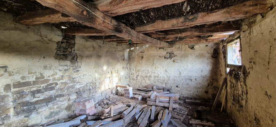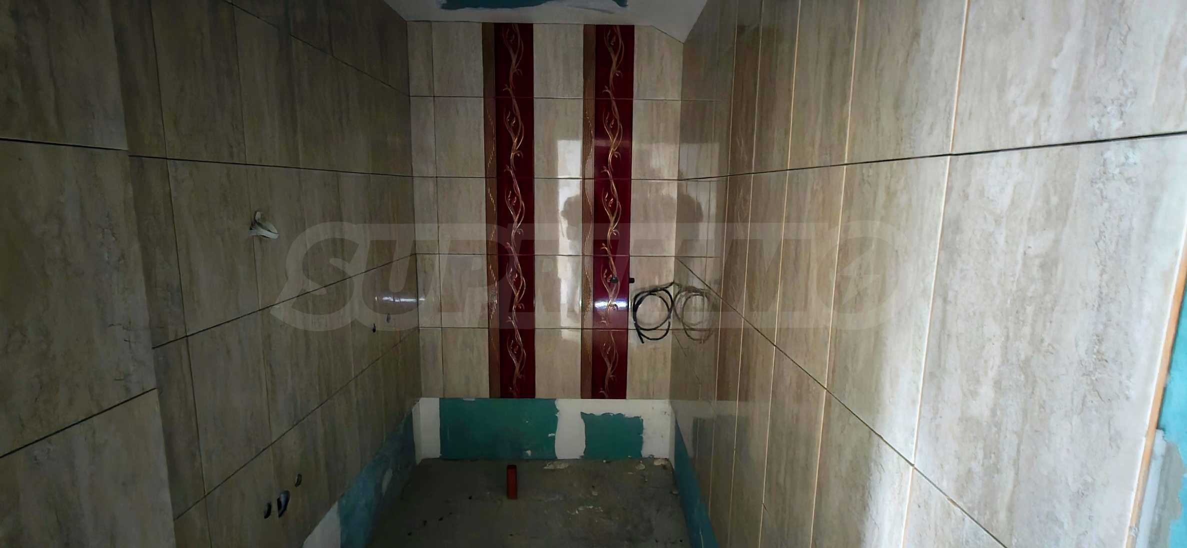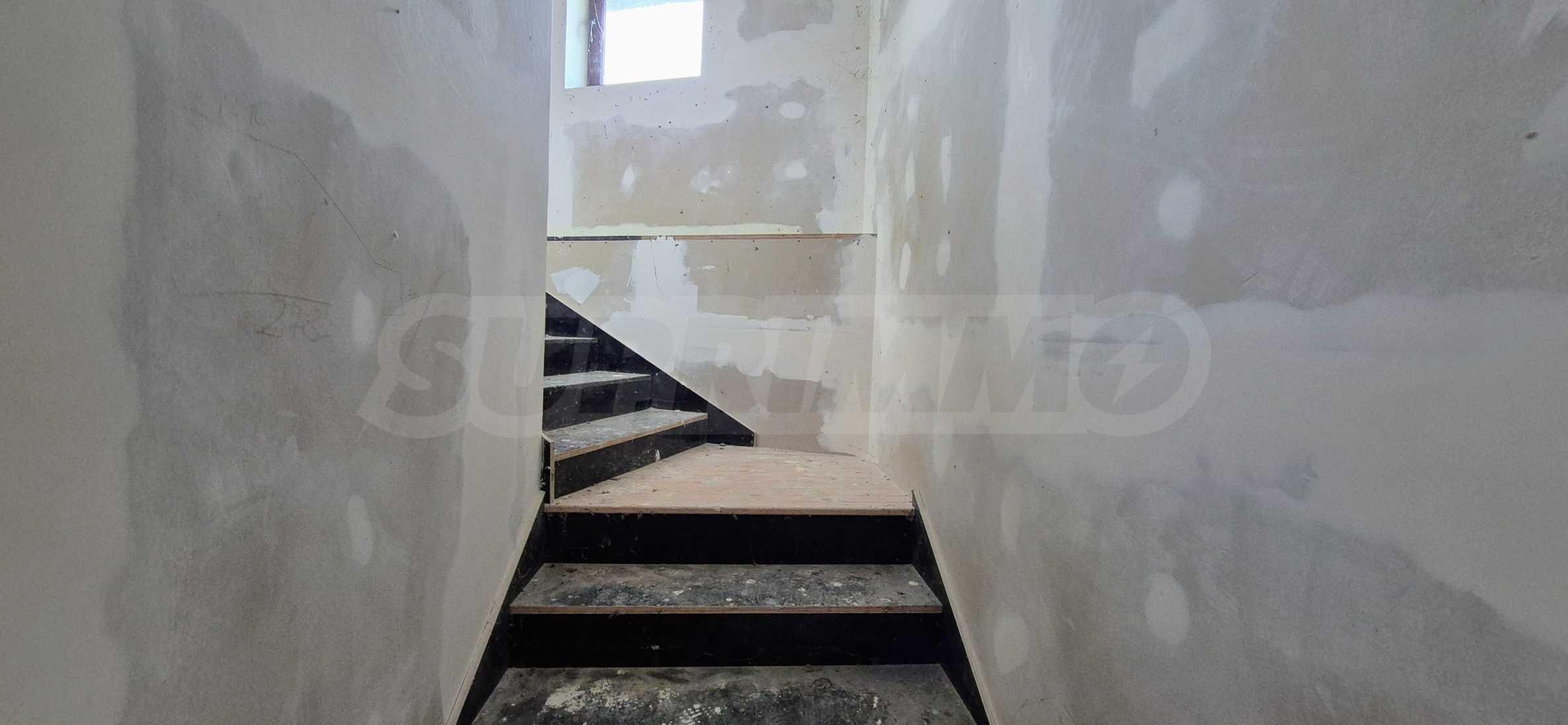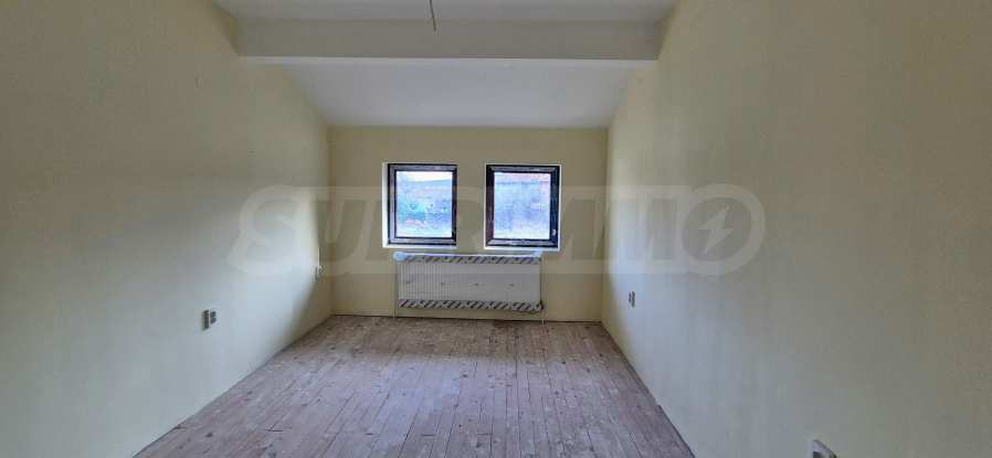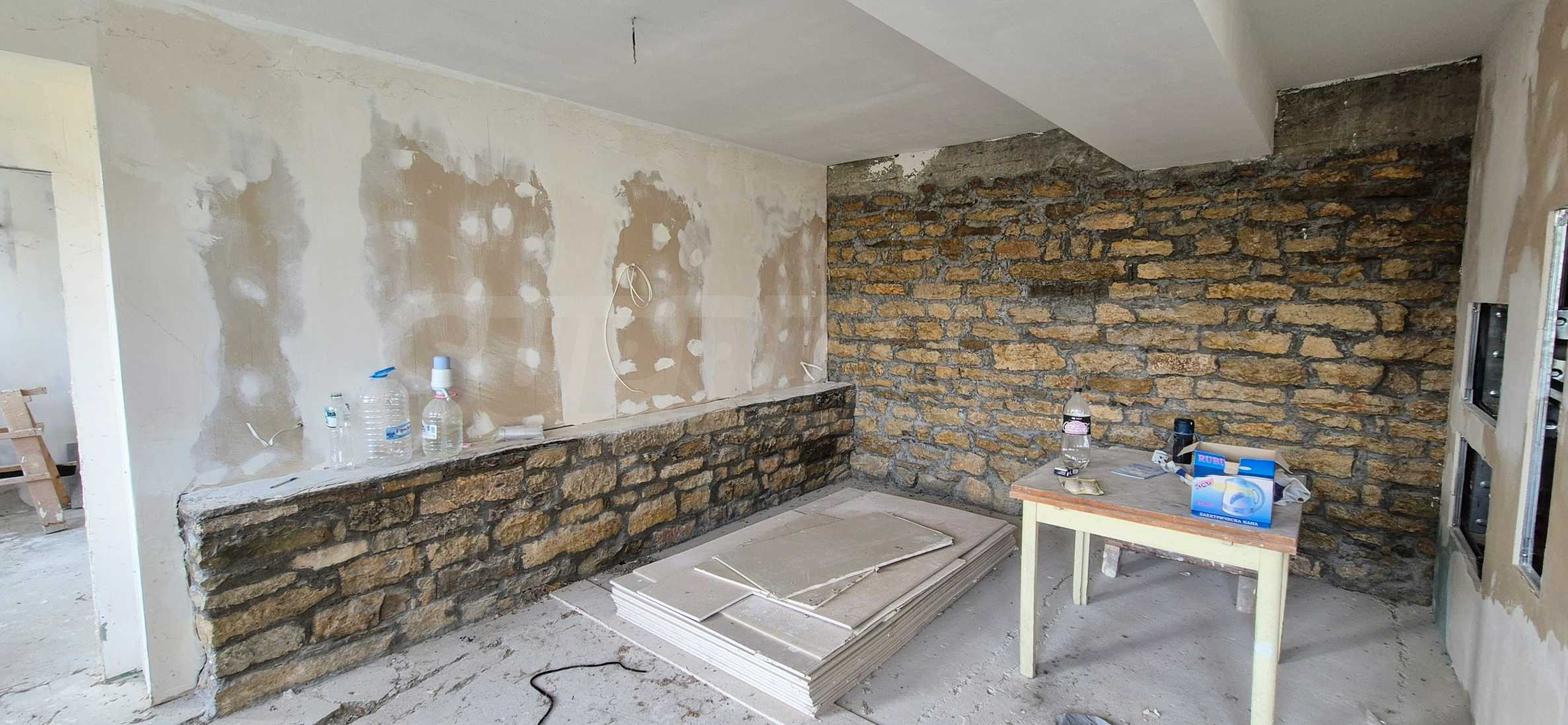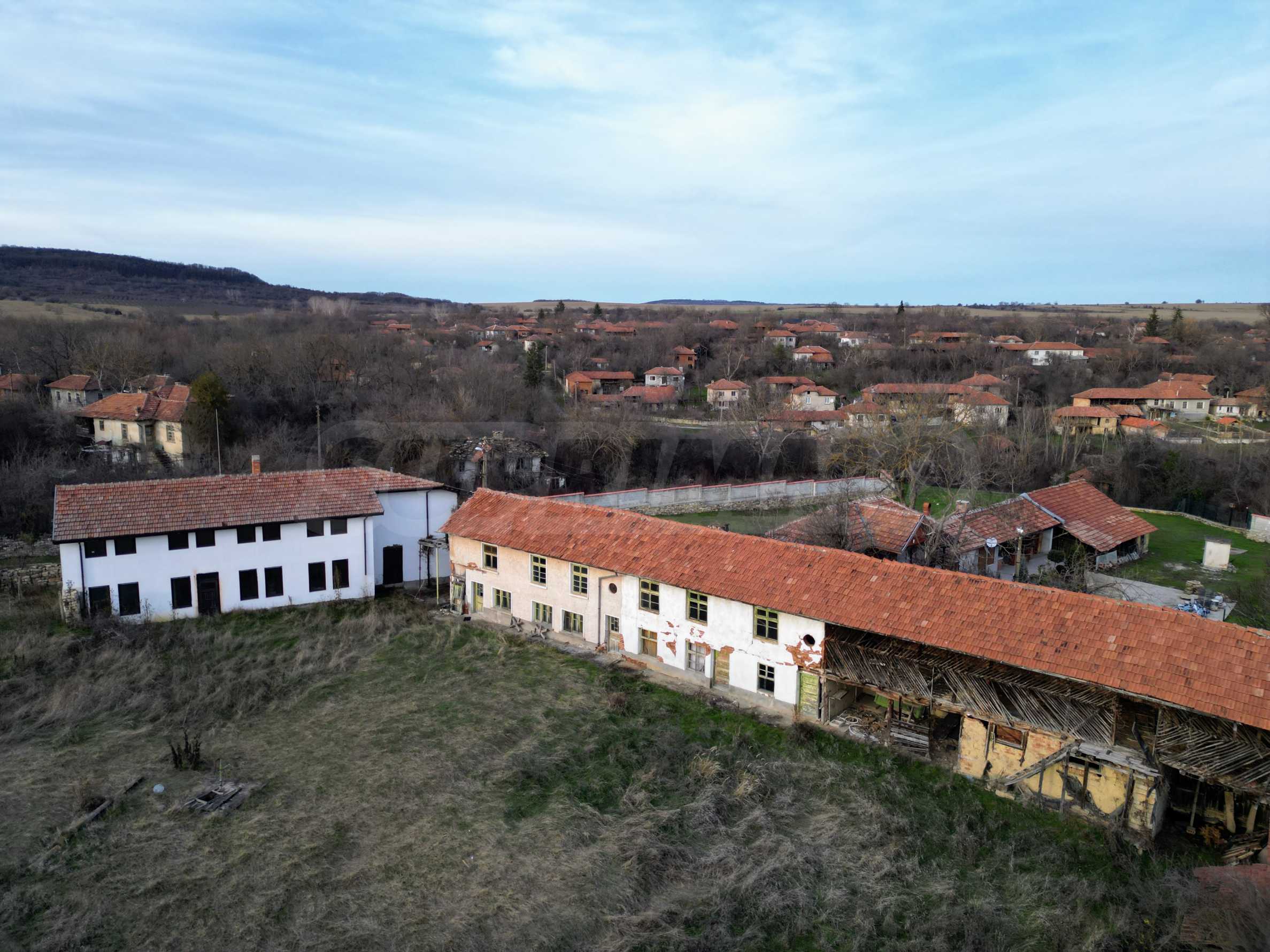 Основната двуетажна сграда е с РЗП 231 кв.м. (115.50 кв.м. ЗП) и е в груб строеж, но с извършени съществени подобрения: положена външна мазилка, PVC дограма, нов покрив, гръмоотвод, както и започнати ВиК и ел. инсталации, вътрешна изолация и мазилки.