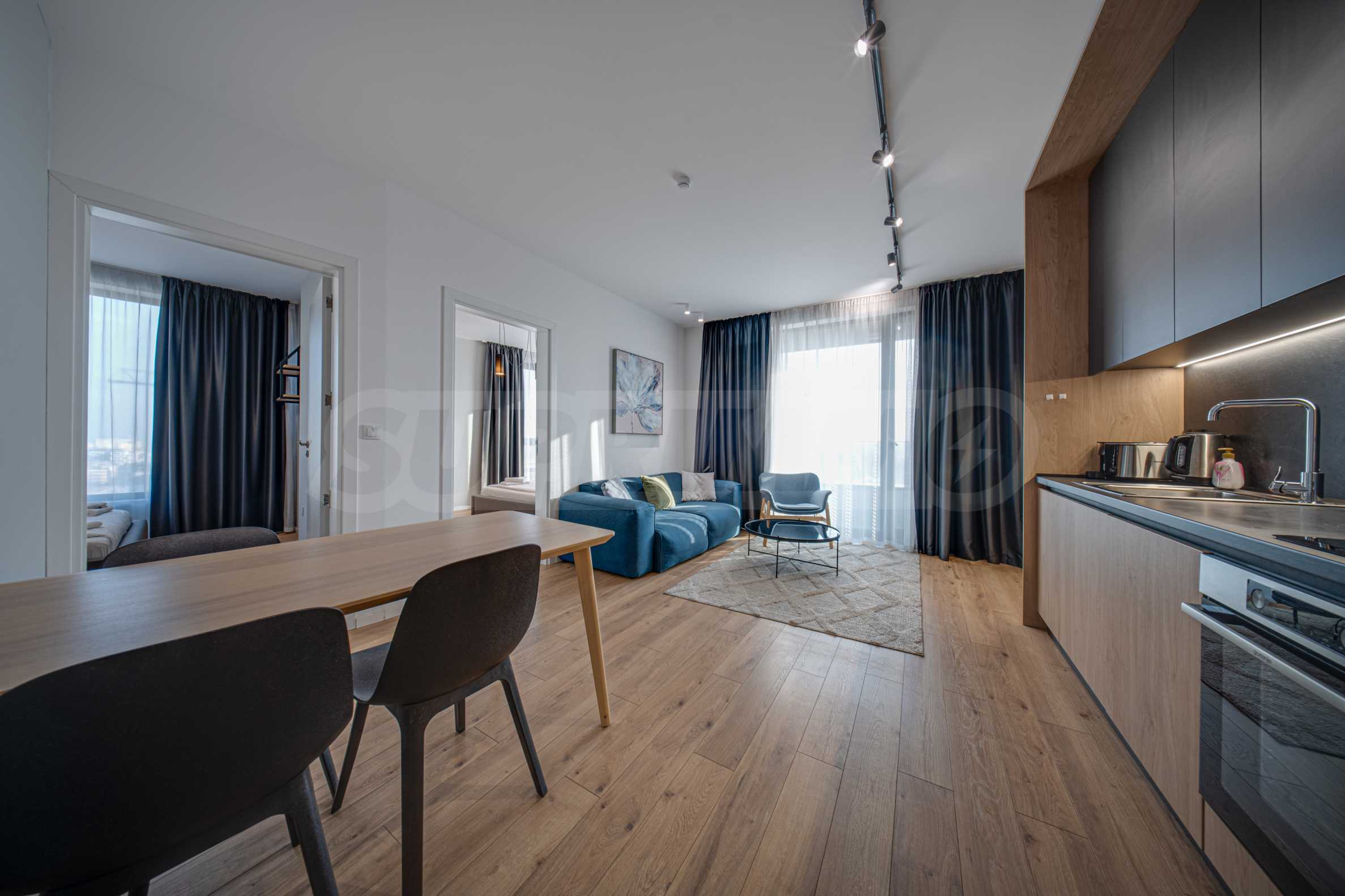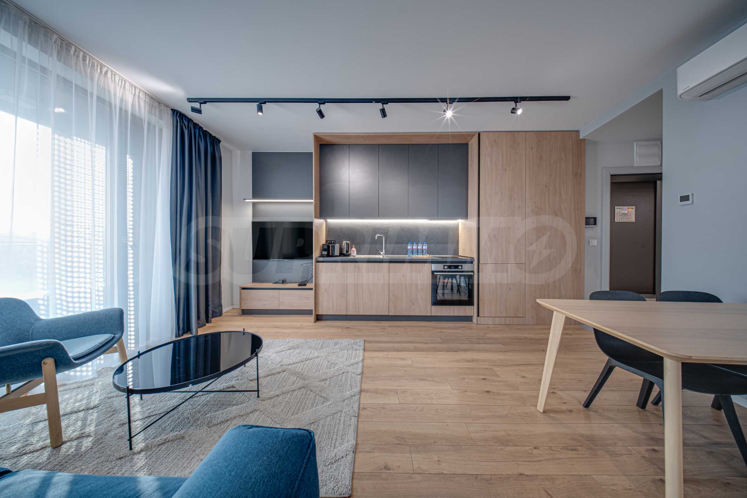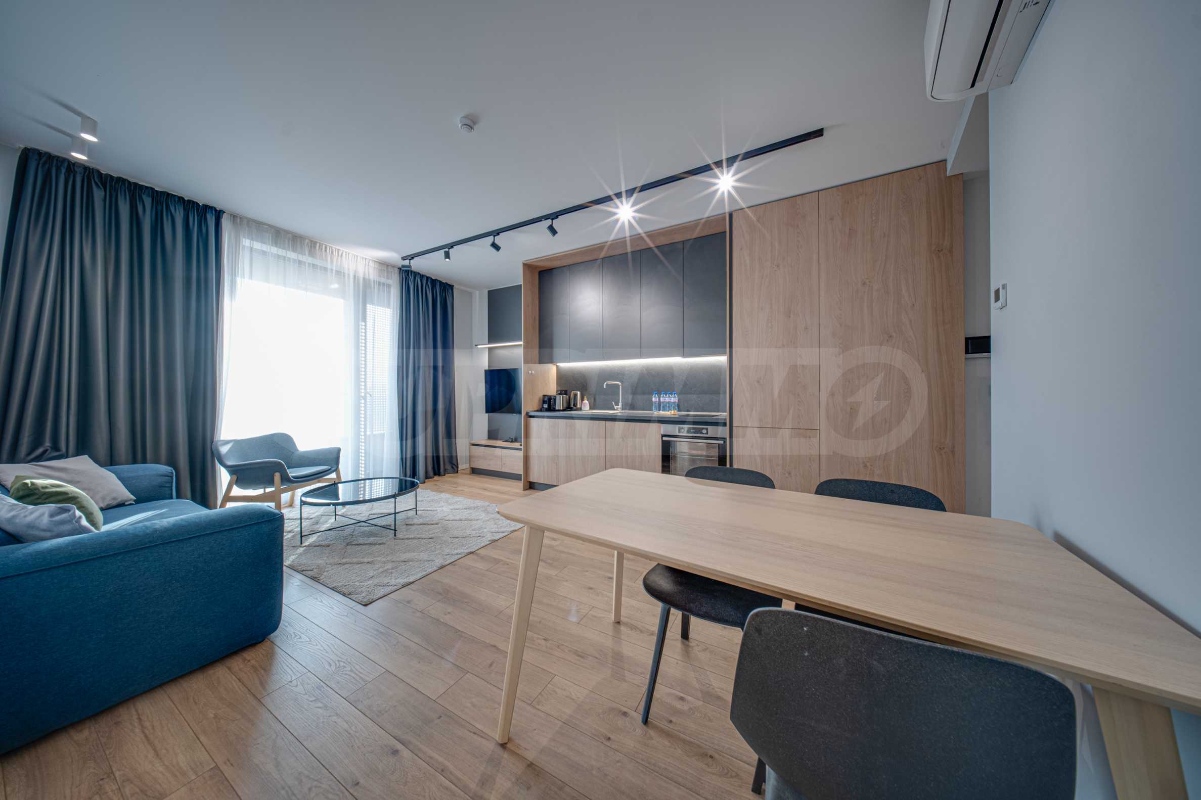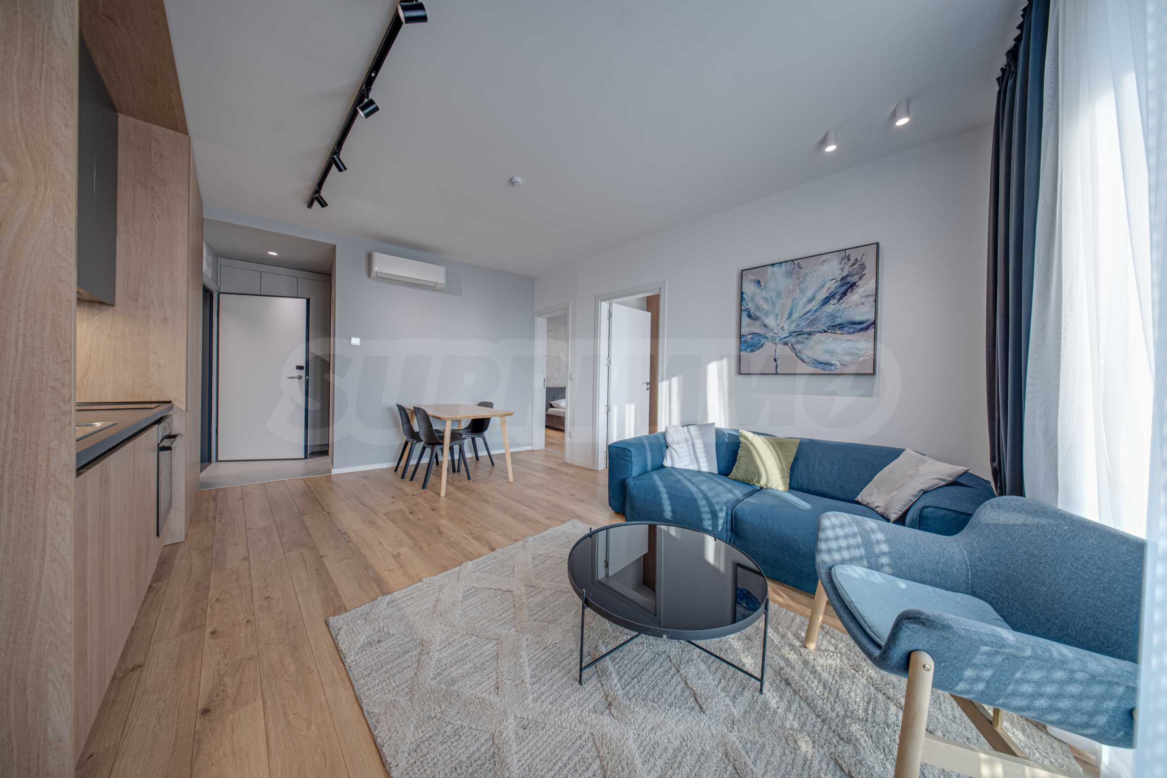 Жилището е светло, просторно и с изключително функционален дизайн, изпълнено е със съвременни решения и интериор в топли и меки цветове, създаващи усещане за уют, спокойствие и комфорт. Обзавеждането и оборудването са първокласни, с нови висококачествени мебели и електроуреди от последно поколение, осигуряващи безпроблемно и приятно ежедневие.