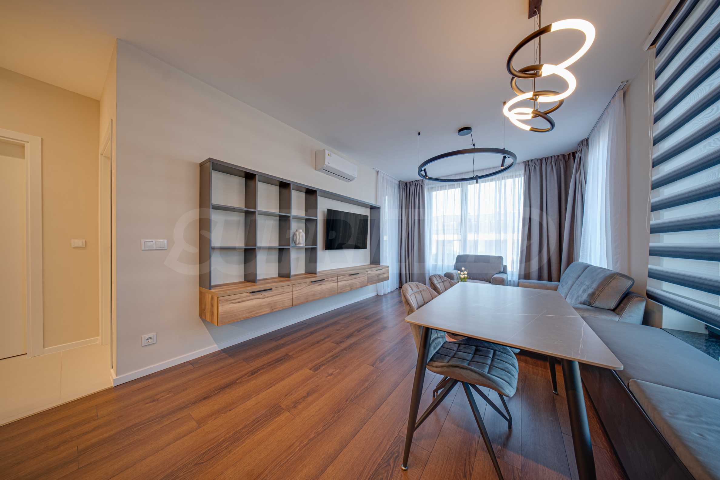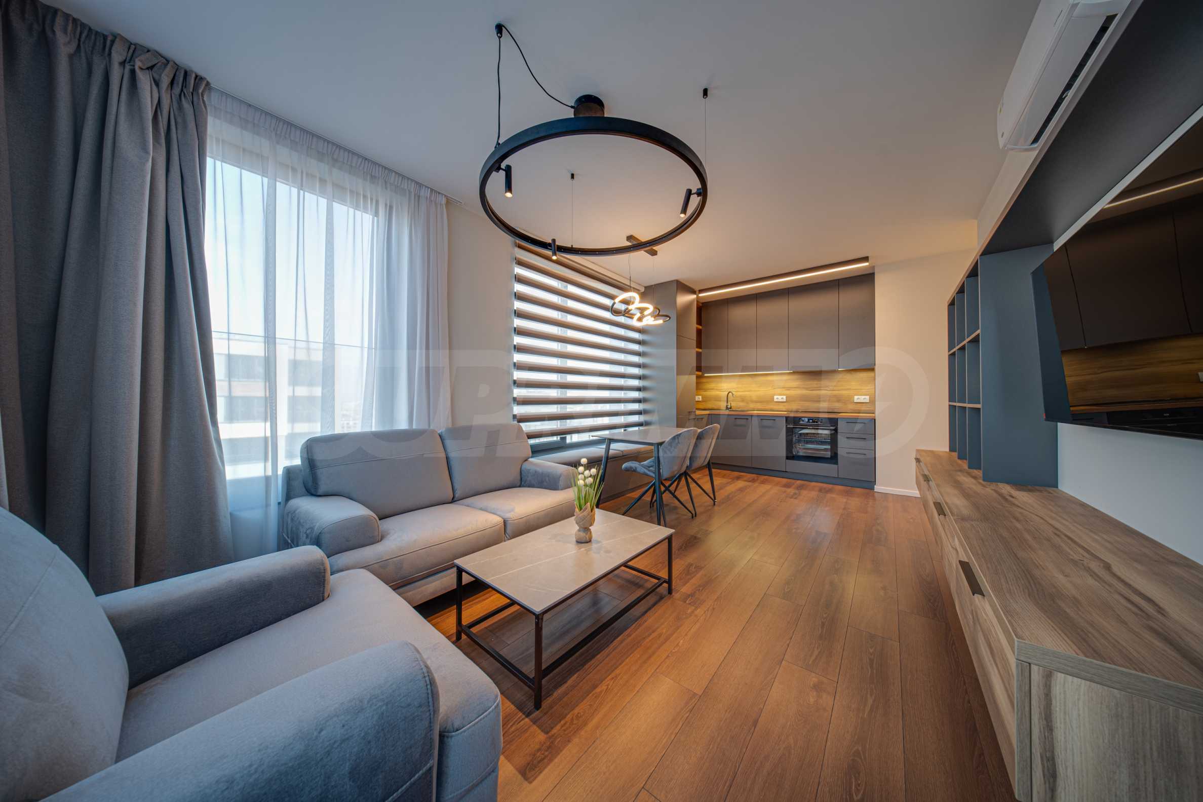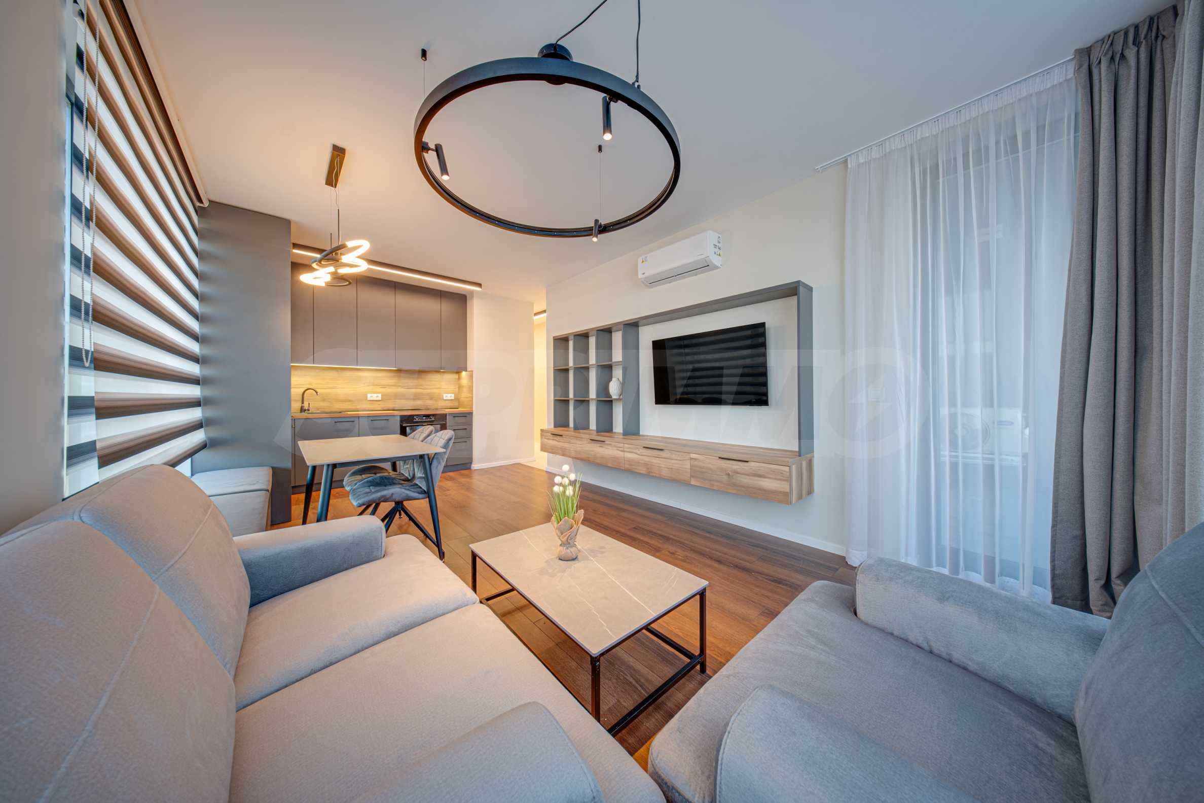Жилището е светло, просторно и изключително функционално, изпълнено със съвременни интериорни решения и дизайн в топли и меки цветове, създаващи усещане за уют, спокойствие и комфорт. Обзавеждането и оборудването са първокласни, с нови, висококачествени мебели и електроуреди от последно поколение, осигуряващи безпроблемно и приятно ежедневие.
