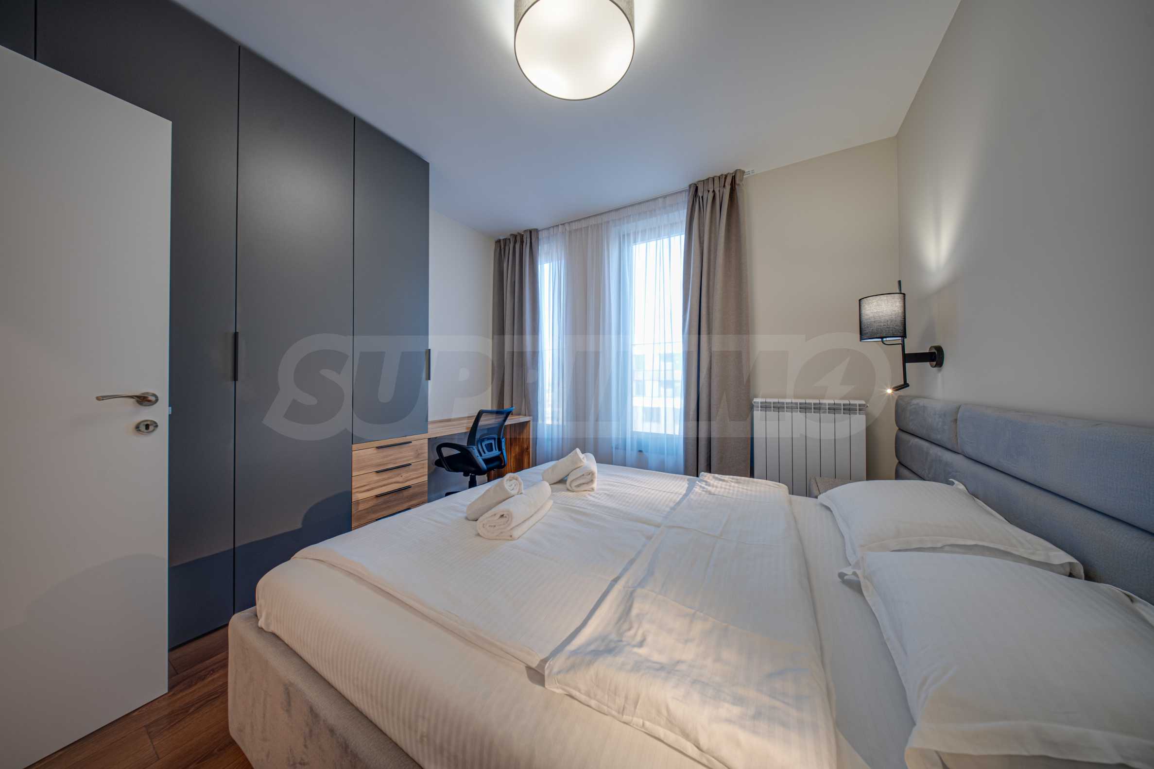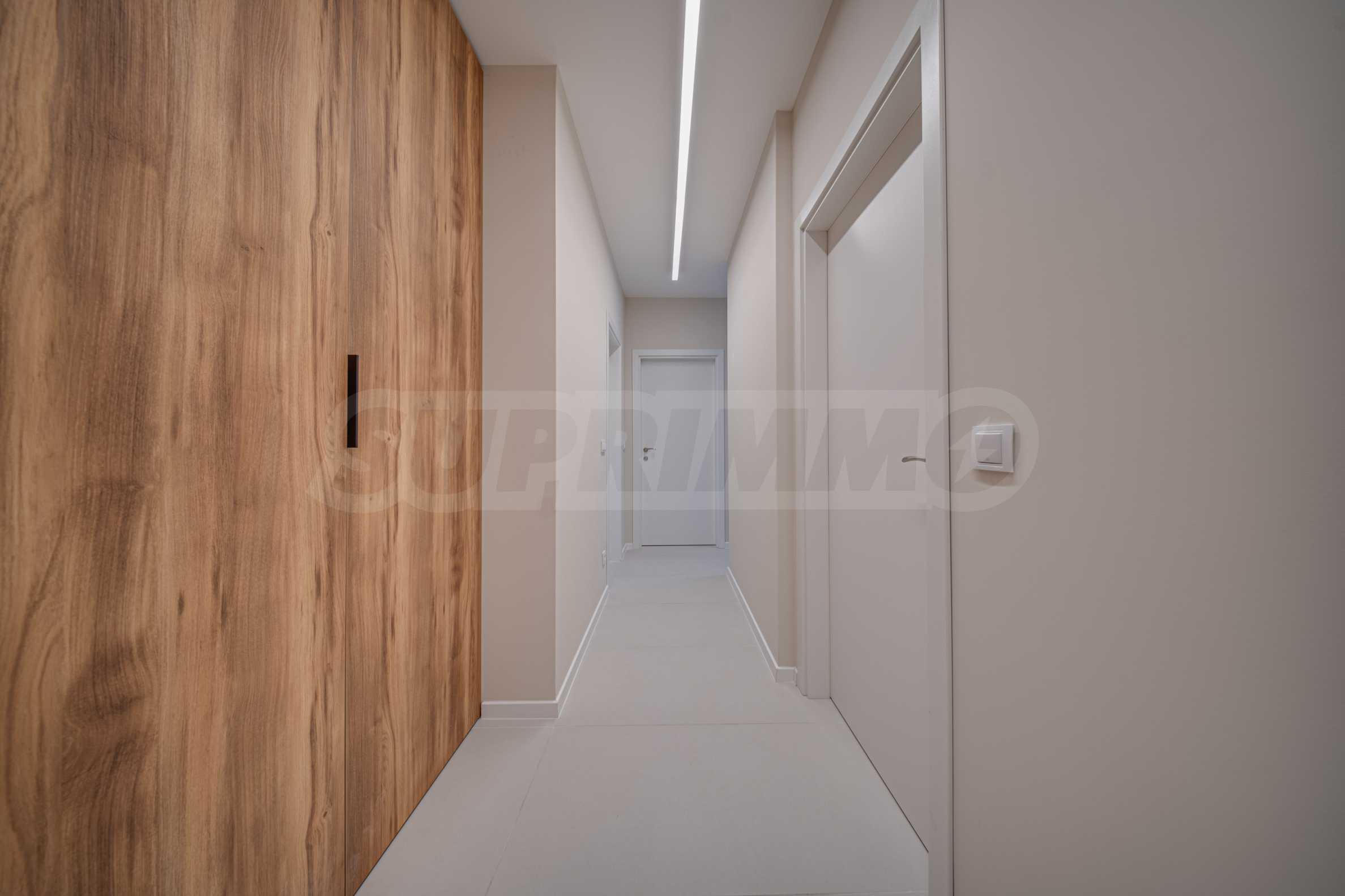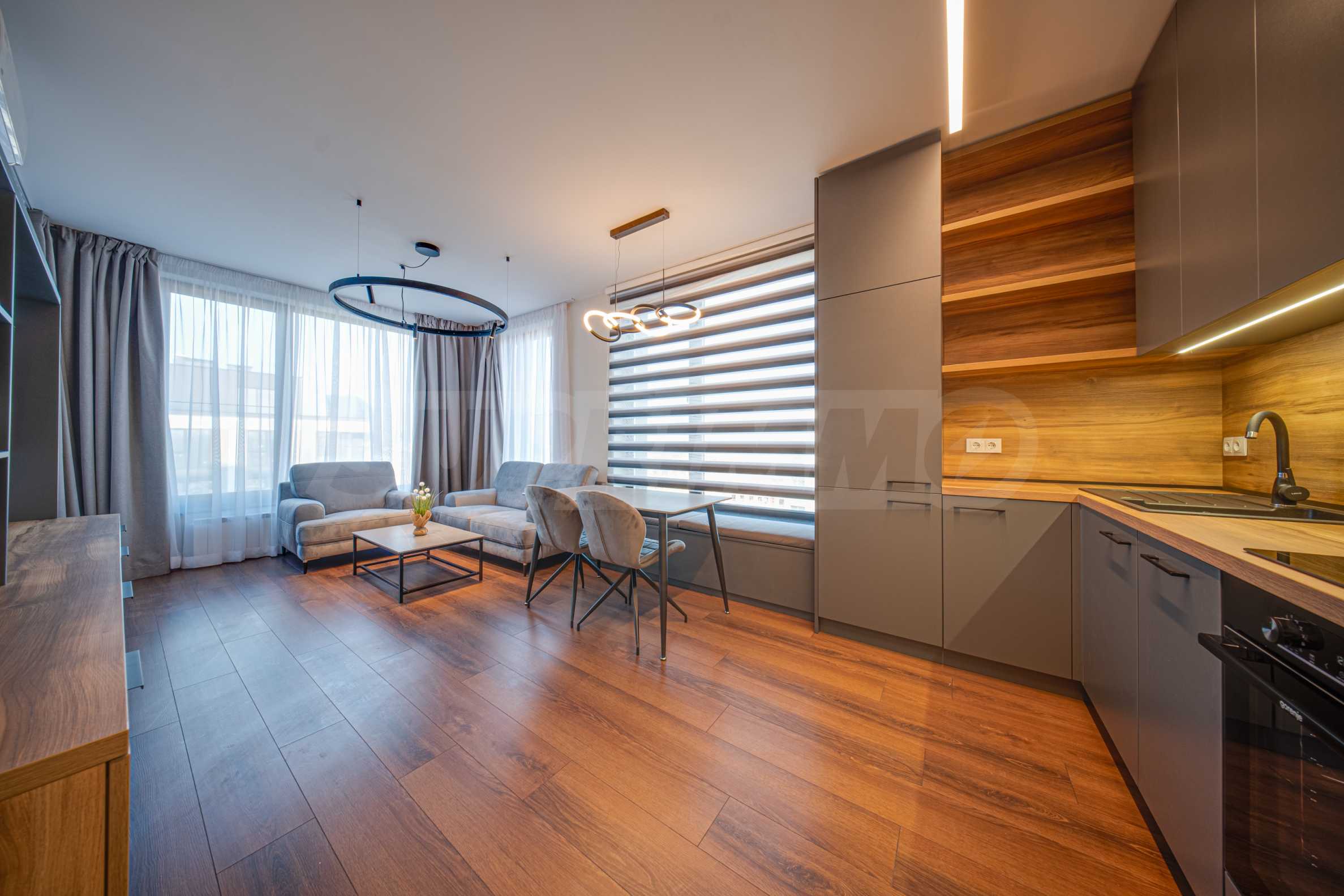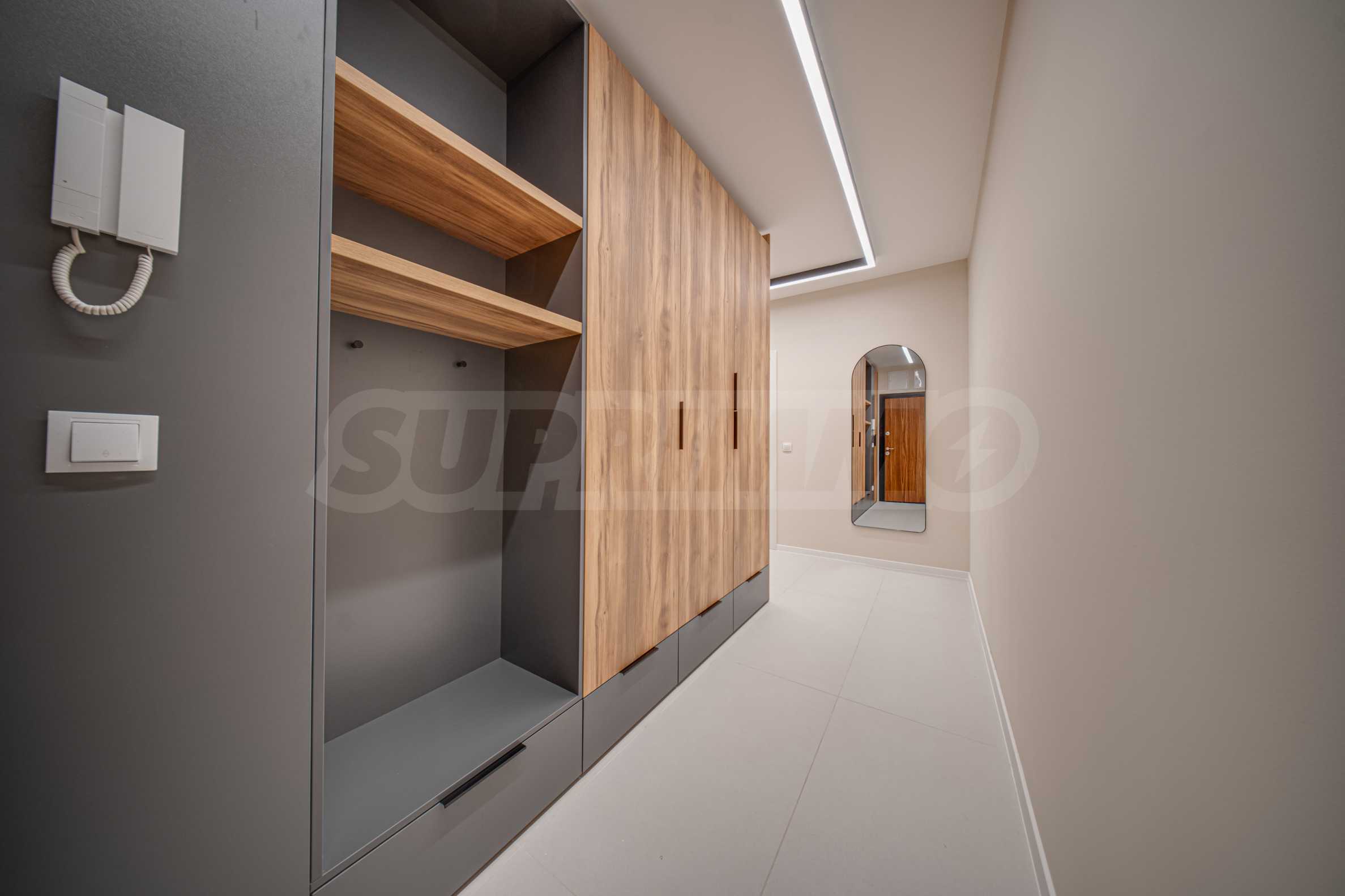 Жилището е светло, просторно и изключително функционално, изпълнено със съвременни интериорни решения и дизайн в топли и меки цветове, създаващи усещане за уют, спокойствие и комфорт. Обзавеждането и оборудването са първокласни, с нови, висококачествени мебели и електроуреди от последно поколение, осигуряващи безпроблемно и приятно ежедневие.