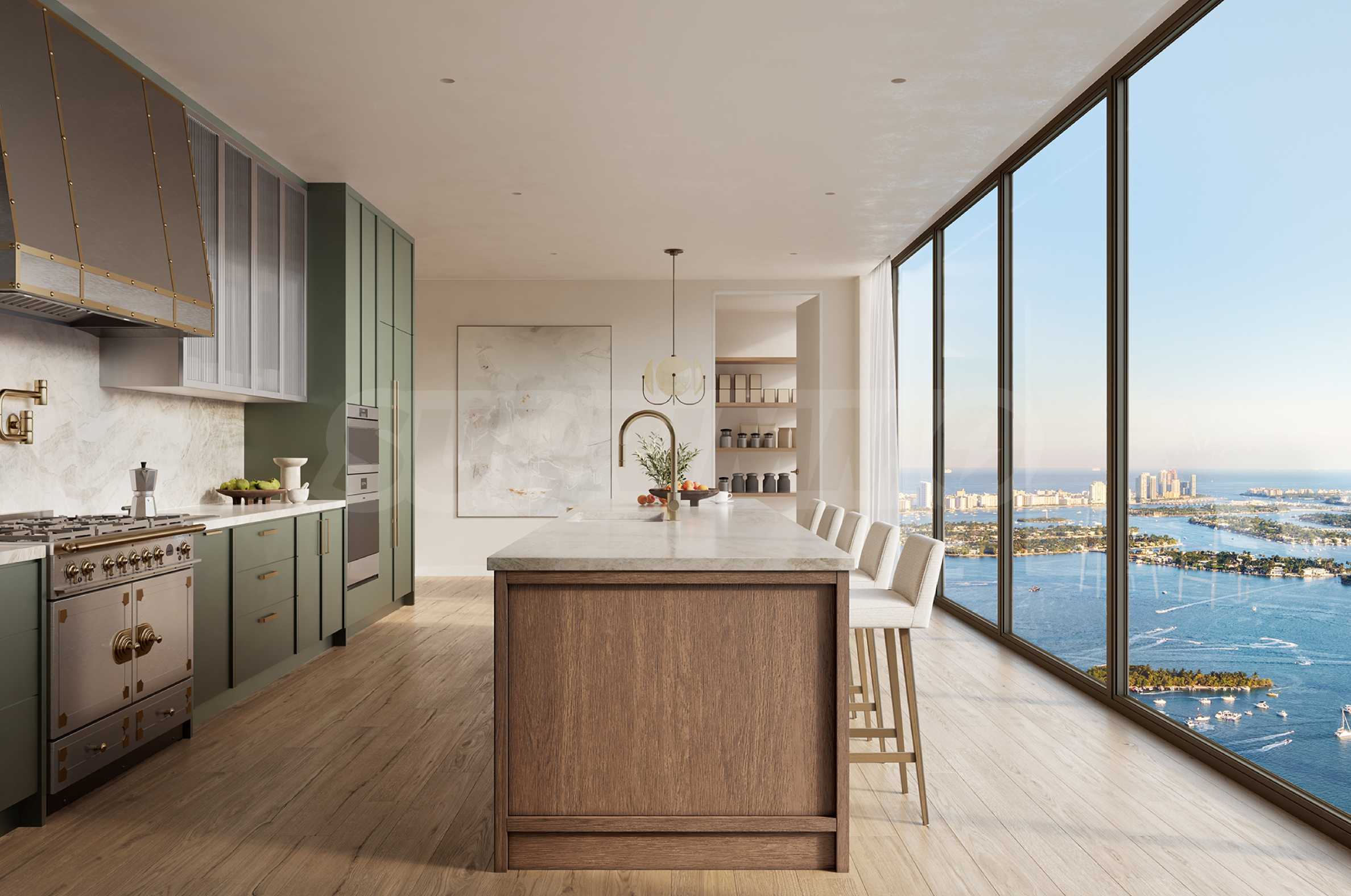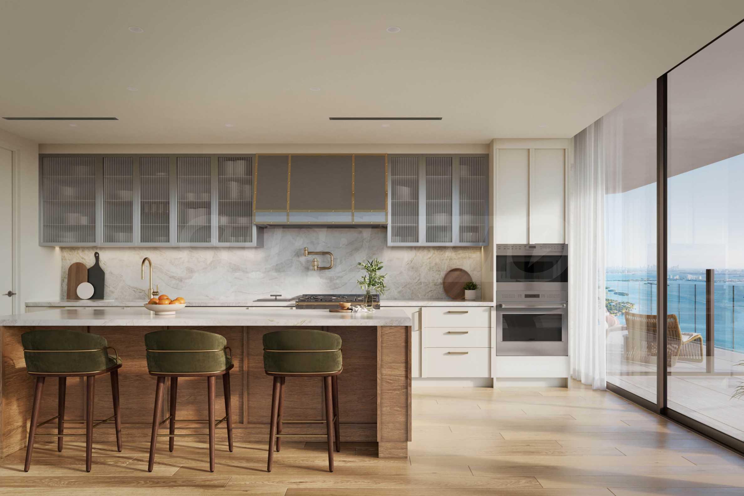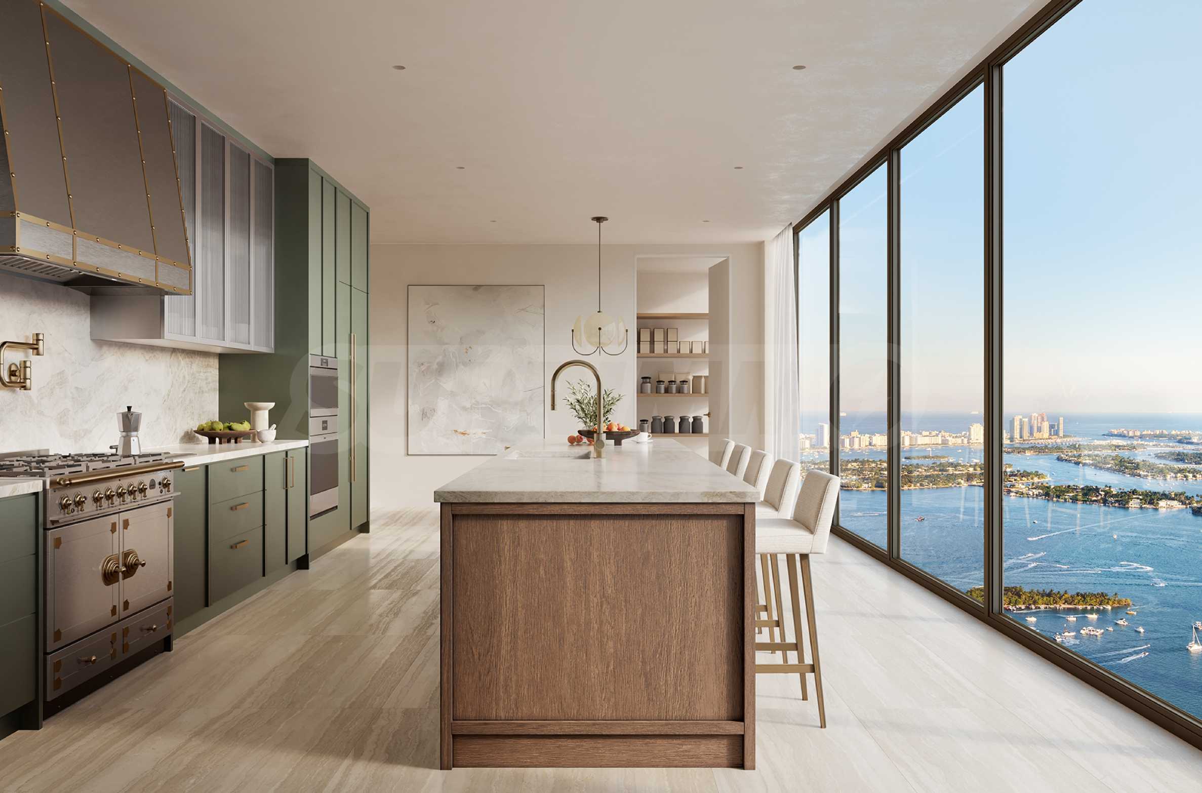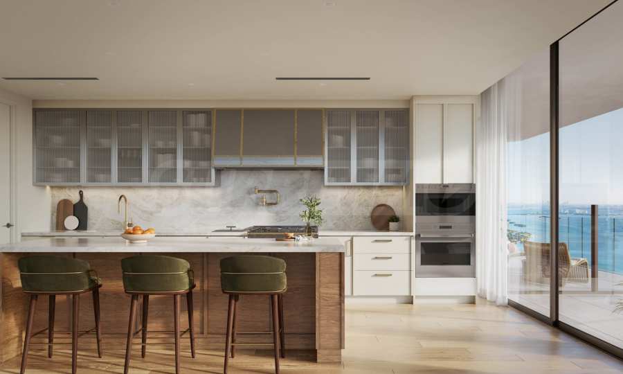 Кухнята е истинското сърце на дома, затова резиденциите разполагат с изцяло оборудвани chef’s кухни, проектирани от Марио Карбоне от Major Food Group. Пространството съчетава класическа кулинарна философия със съвременни технологии чрез фурни и котлони от серията CornuFé на La Cornue, уреди Wolf и Sub-Zero, специализирани мивки, италиански шкафове по поръчка и вградена винена витрина. Това е мястото, където семейството се събира и се наслаждава на споделени моменти, където приятелите са винаги добре дошли и където всяко ястие се превръща в истинско преживяване. При желание е налична и услуга за предварително зареждане на хранителни продукти, която допълва усещането за комфорт и безупречна грижа.