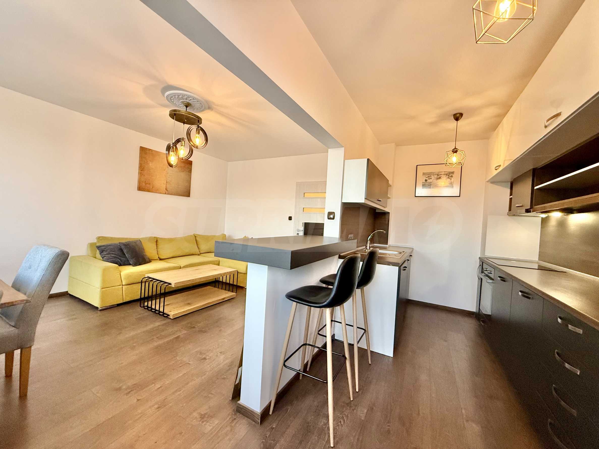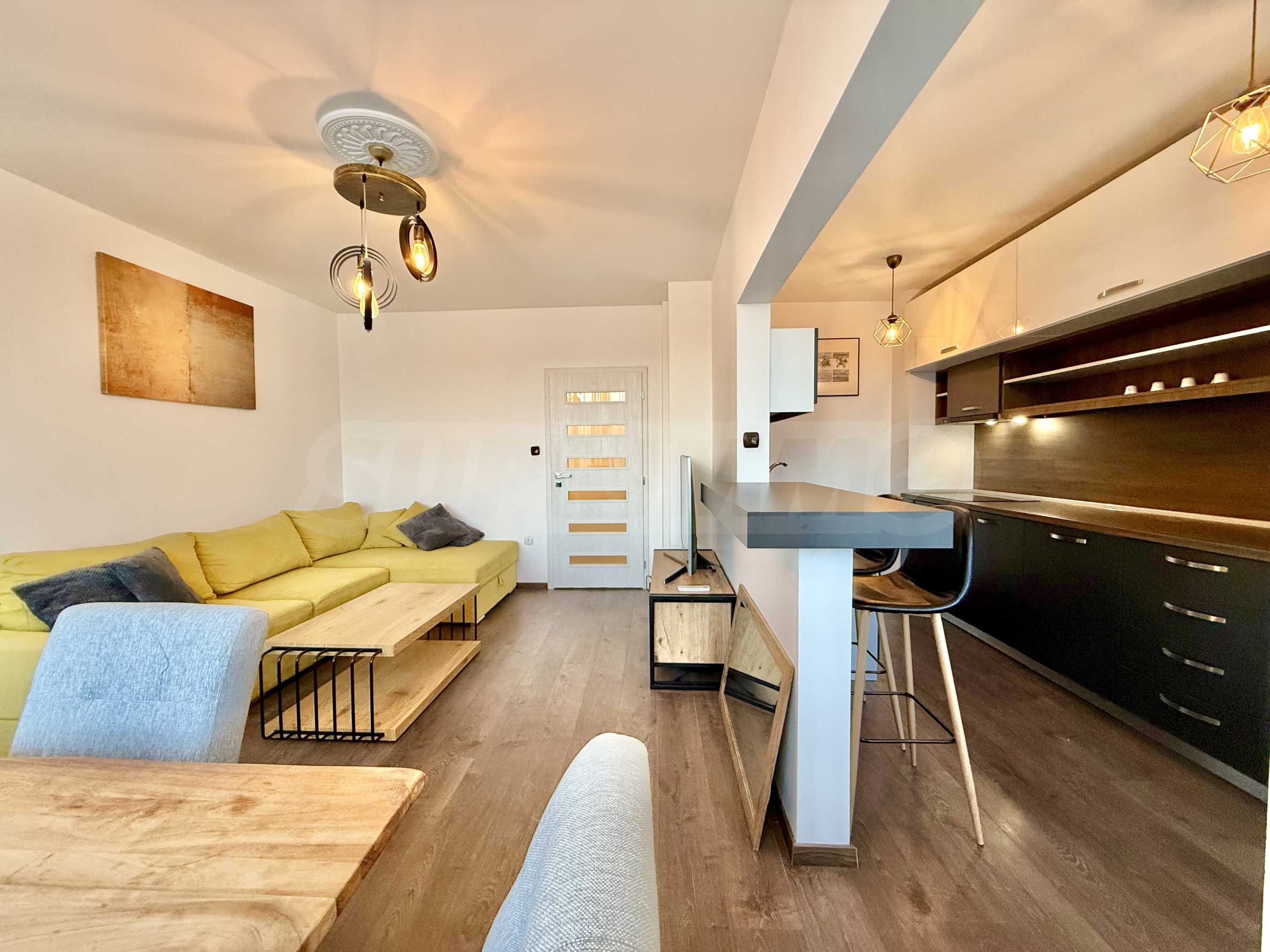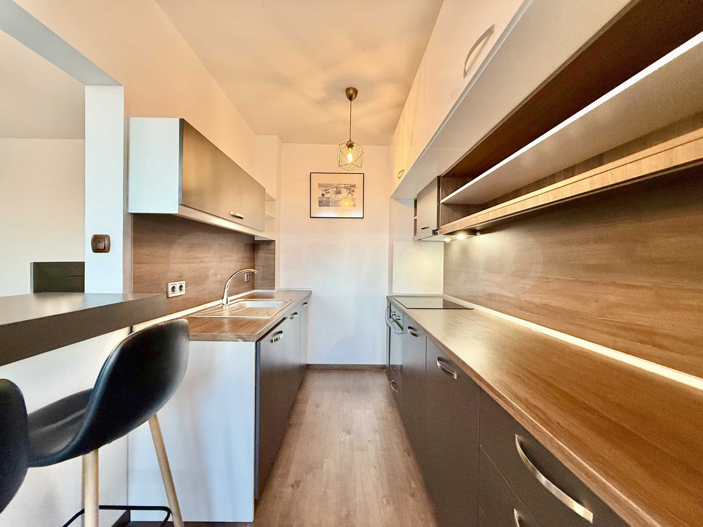 Апартаментът е изцяло обзаведен в модерен стил и оборудван с всички необходими мебели и електроуреди за комфортно ежедневие.