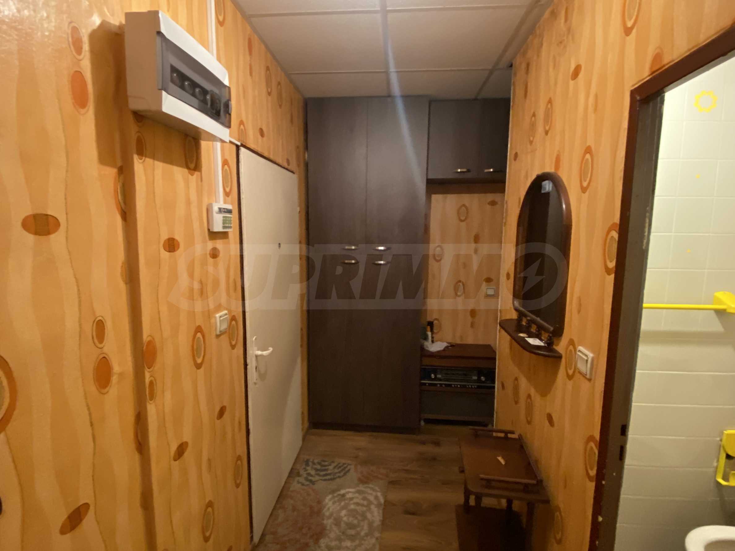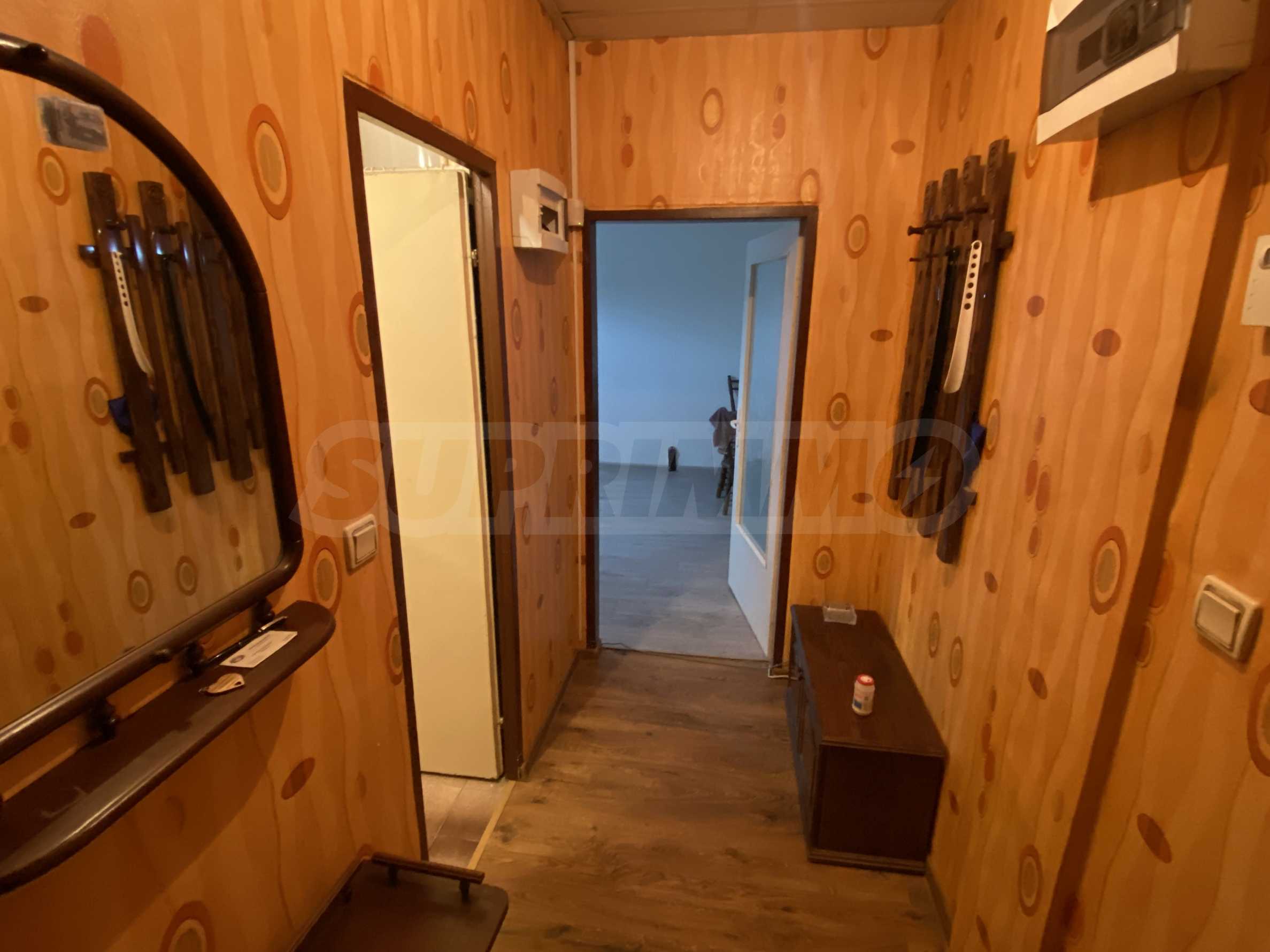 Подовите настилки са ламиниран паркет, а стените са боядисани с латекс, което осигурява лесна поддръжка и свеж вид. В коридора е изграден вграден гардероб и допълнителни шкафове, които предоставят допълнително пространство за съхранение.