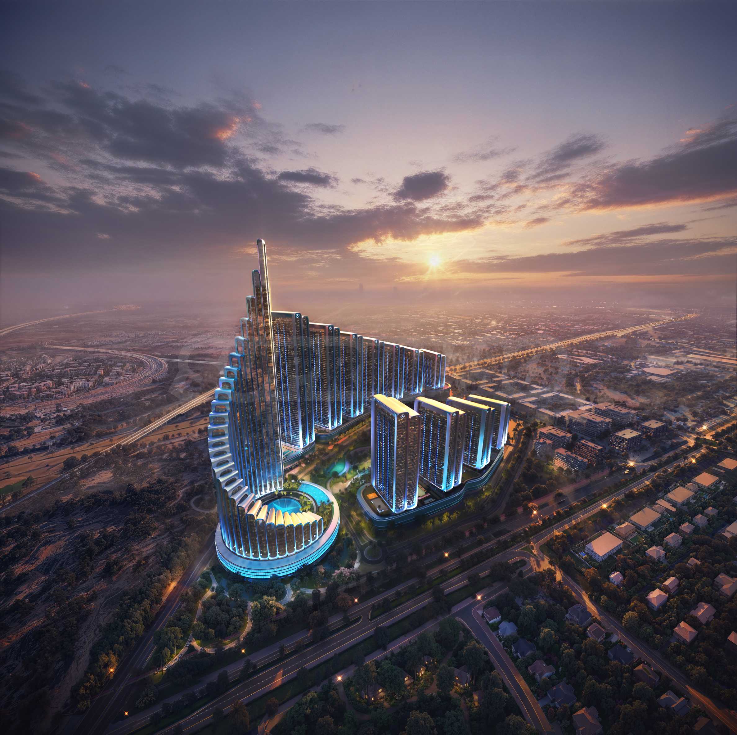 Представяме Mercedes-Benz Places – Binghatti City – емблематичен жилищен проект с изключителен мащаб, разположен в една от най-новите и най-перспективни жилищни зони на Дубай - Meydan. Това е вторият брандиран жилищен проект, реализиран в партньорство между Binghatti и Mercedes-Benz, след успешния дебют на Mercedes-Benz Places Dubai, както и първата общност от подобен мащаб в историята на Binghatti.
