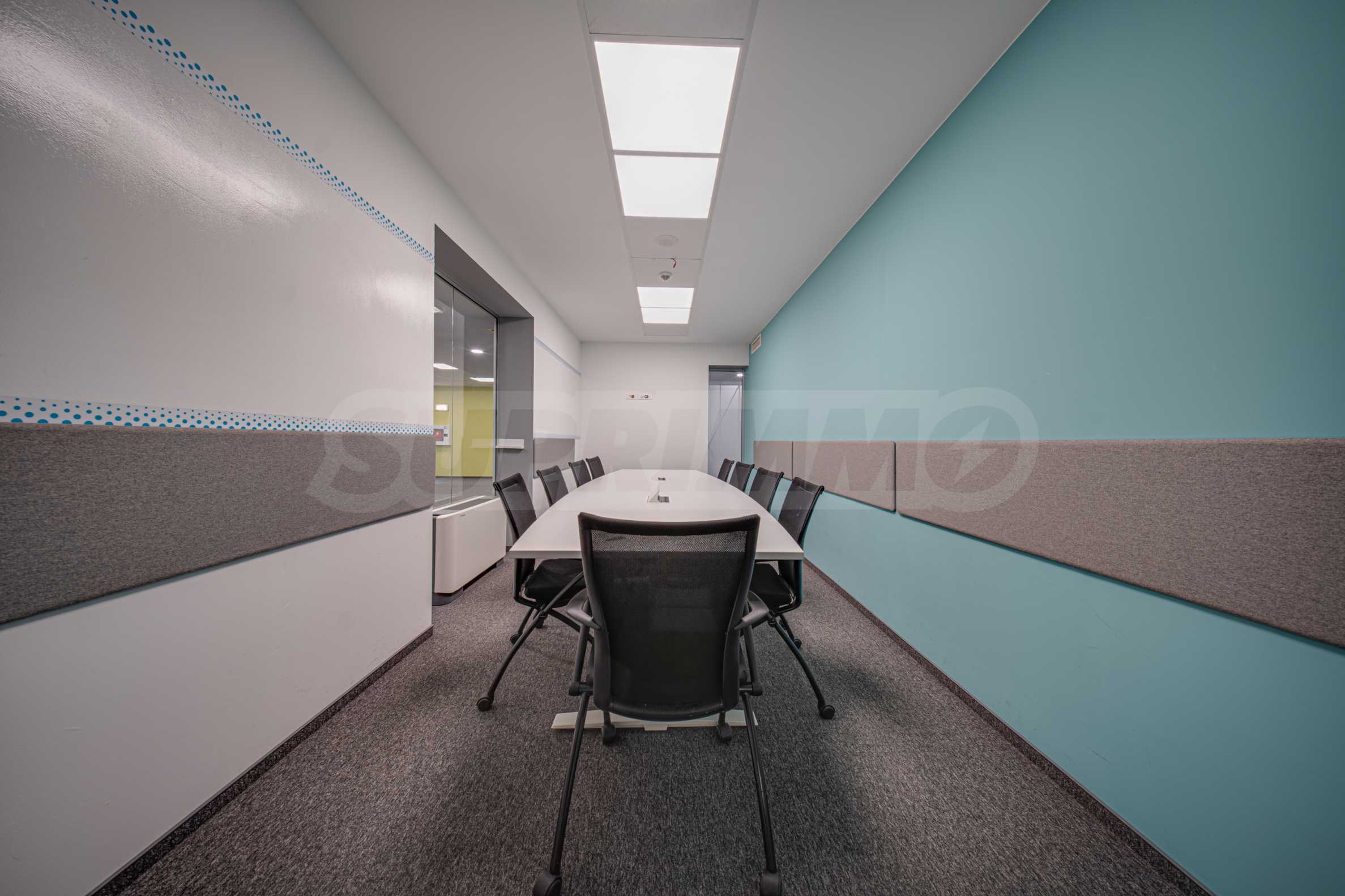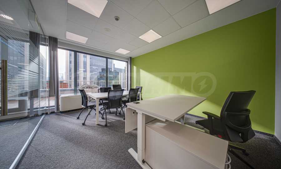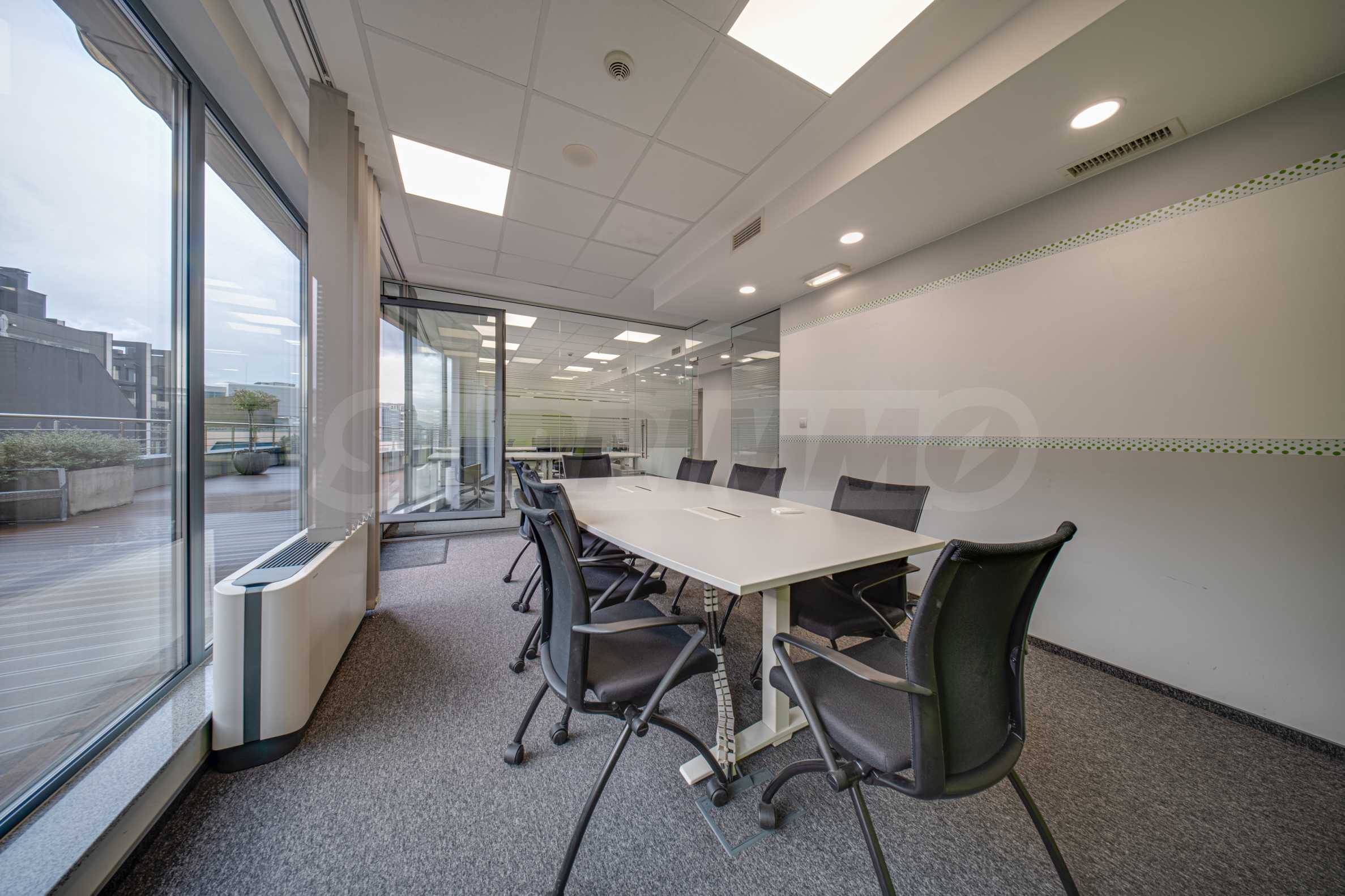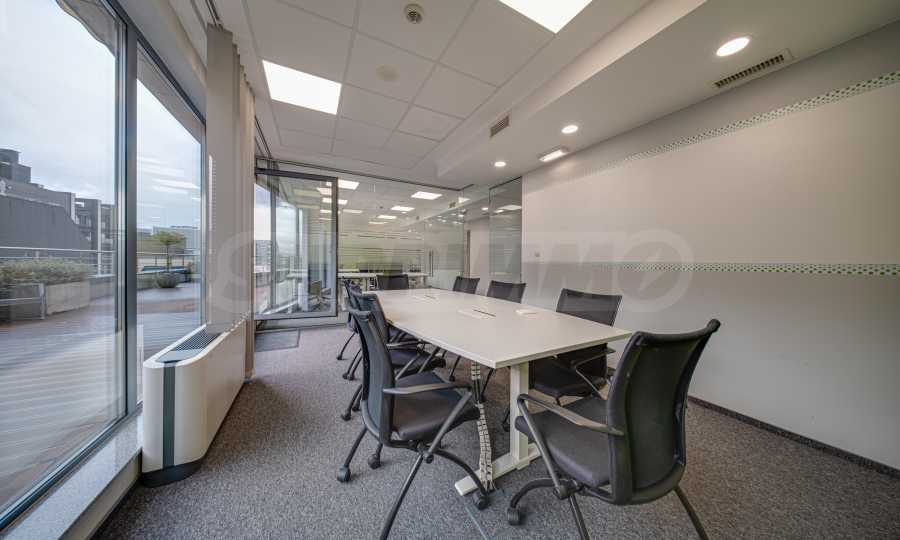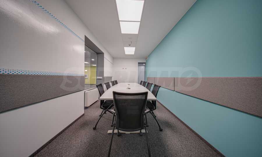 - Всеки етаж разполага със заседателна зала, кухня, по няколко кабинета и големи "open space" работни помещения с възможност за промяна в разпределението;
