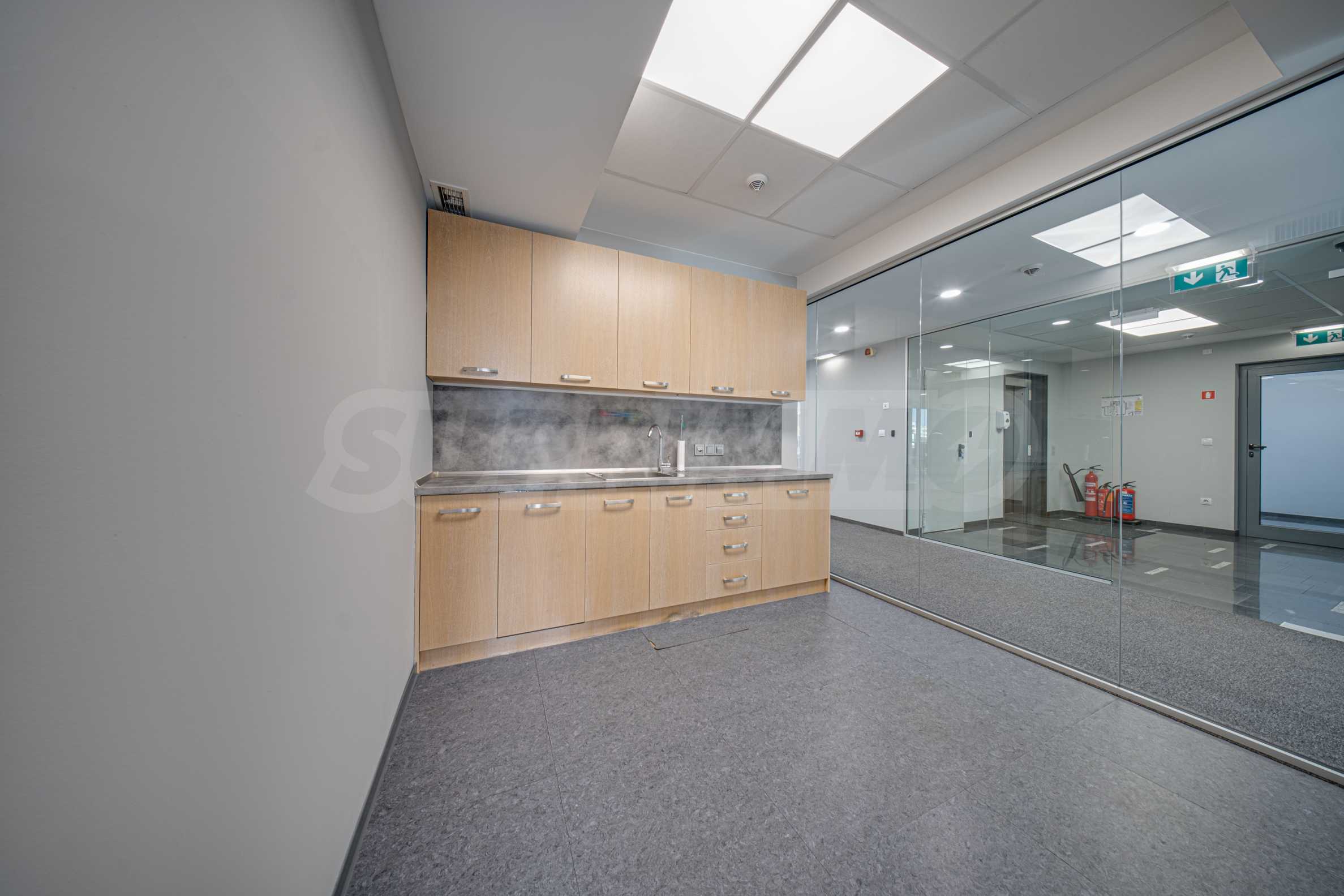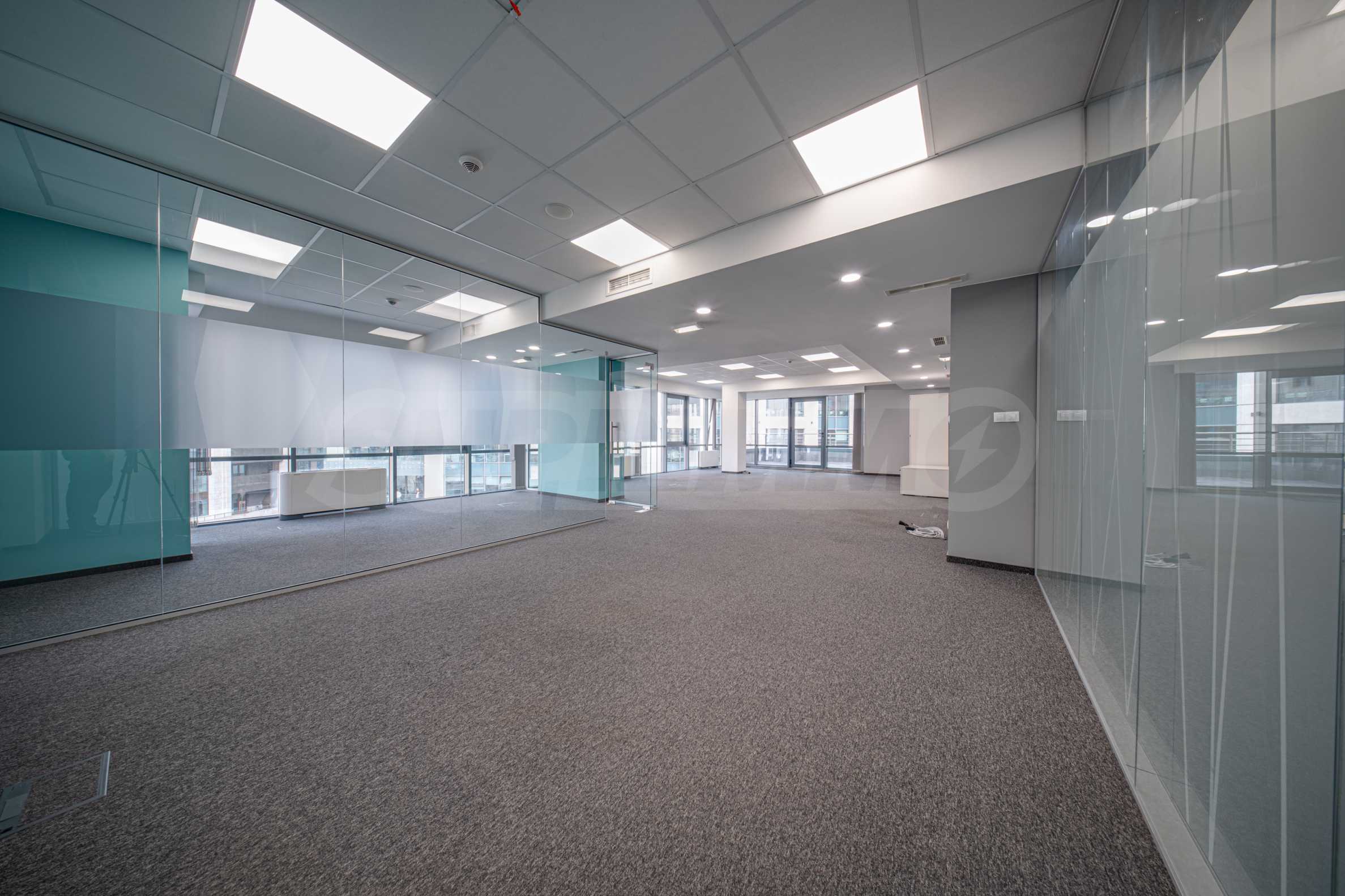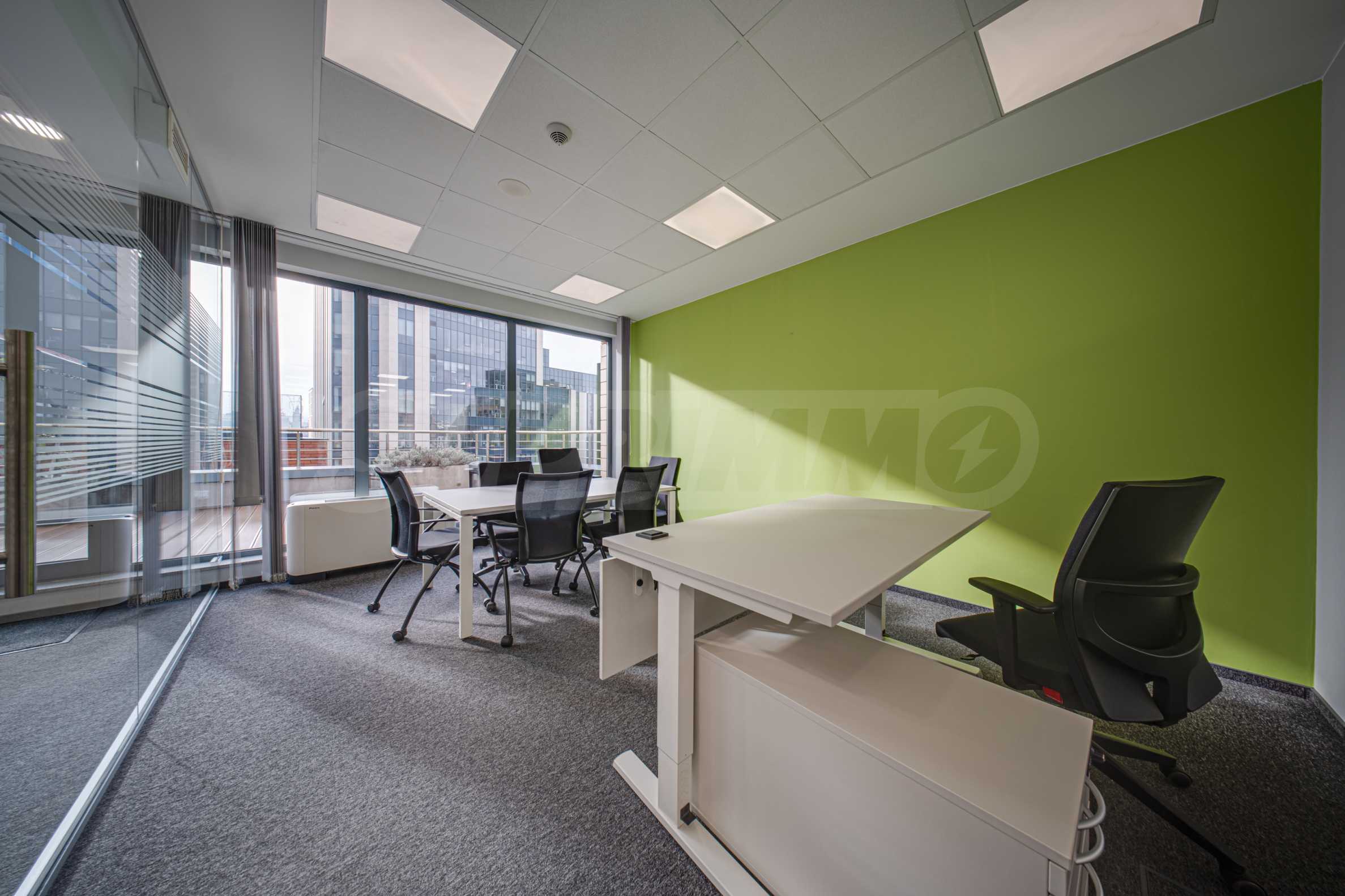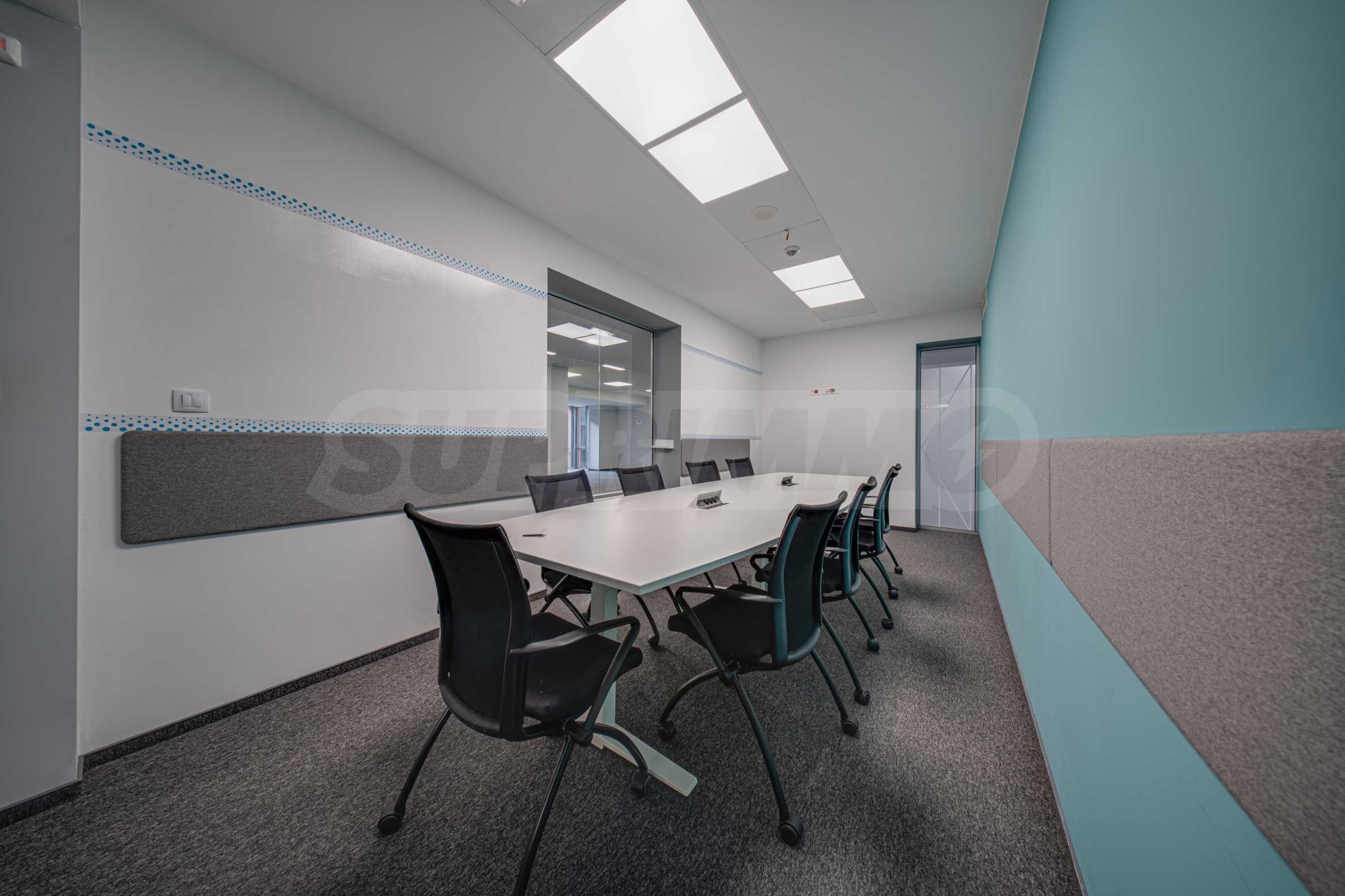 - Всеки етаж разполага със заседателна зала, кухня, по няколко кабинета и големи "open space" работни помещения с възможност за промяна в разпределението;