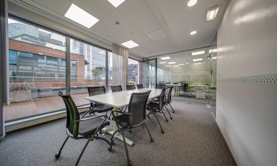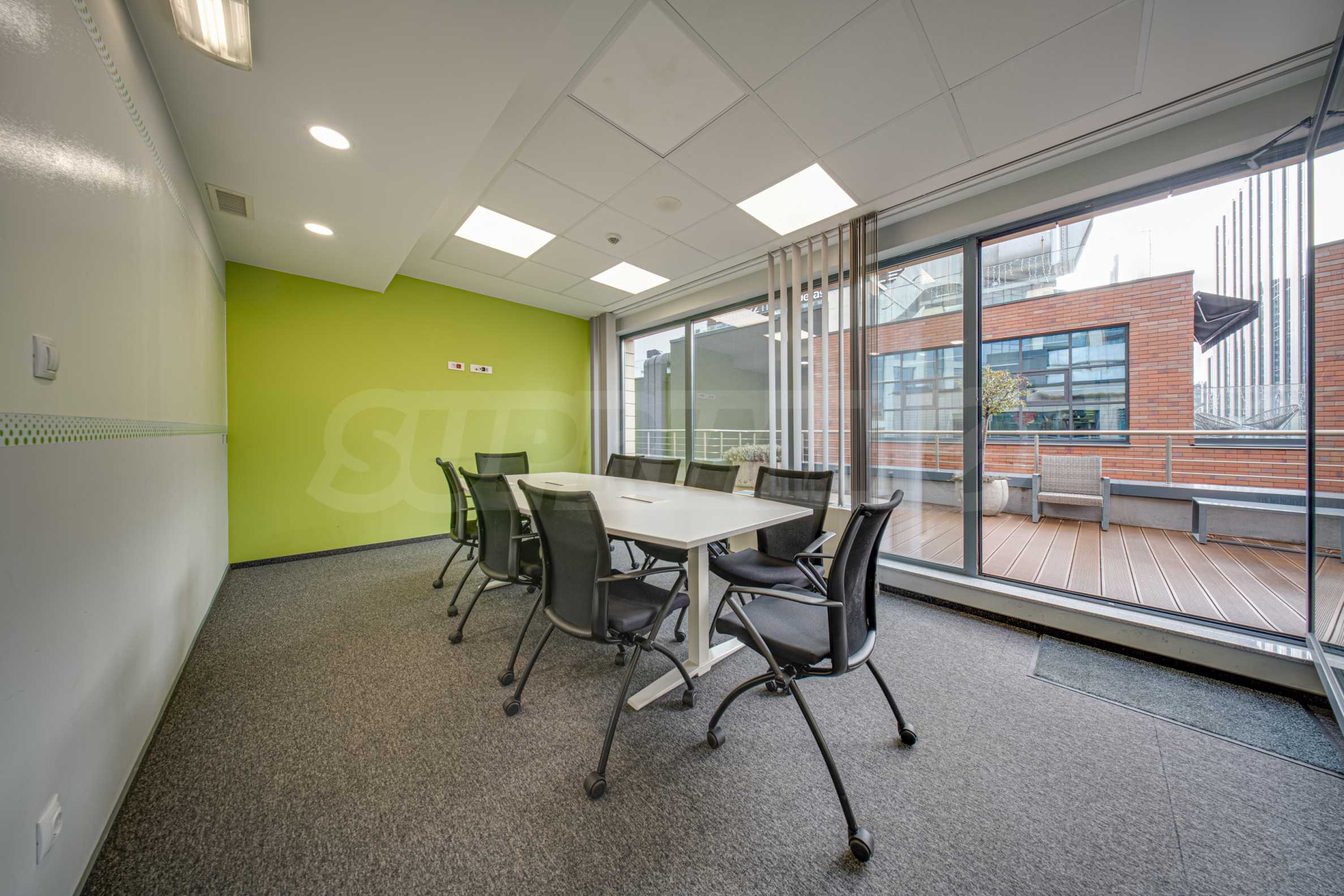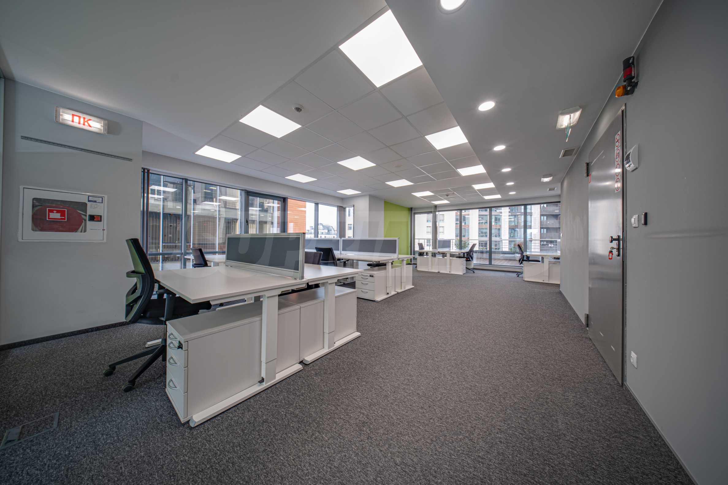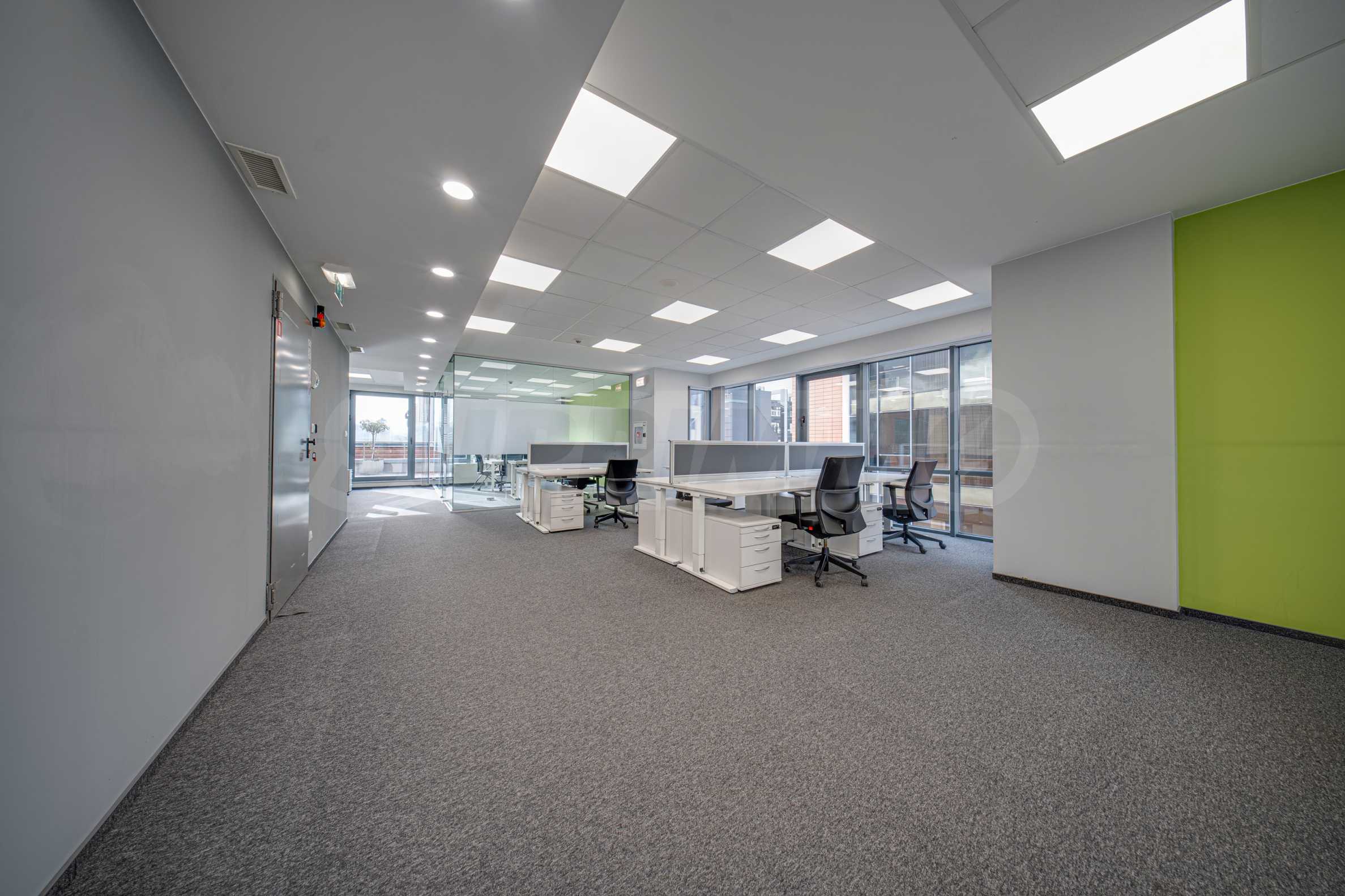 - Всеки етаж разполага със заседателна зала, кухня, по няколко кабинета и големи "open space" работни помещения с възможност за промяна в разпределението;