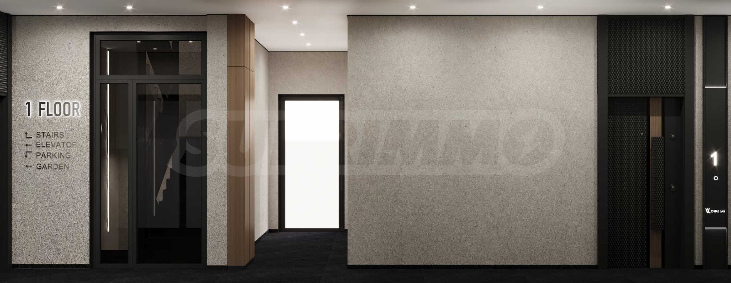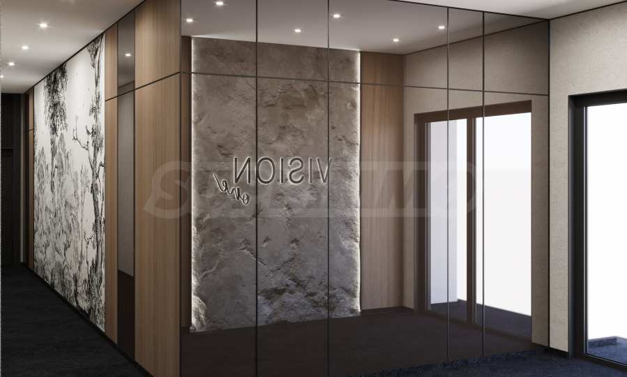 • Общи части: Общите пространства са изпълнени по индивидуален дизайнерски проект и впечатляват с висококачествени материали и внимание към детайла: настилки от естествен камък, декоративни мазилки, ламперия и тапети, скрито осветление, което подчертава материалите и създава спокойна и ексклузивна атмосфера;