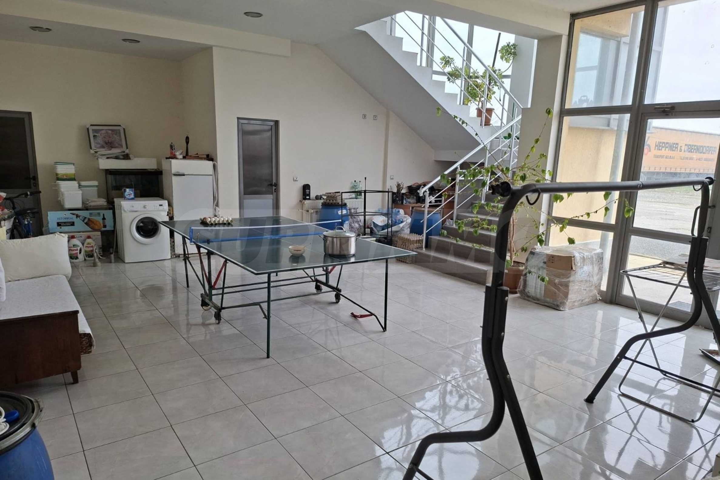 Имотът е с площ 1500 кв.м, разположен върху парцел от 20 000 кв.м, с изградена инфраструктура, работещ бизнес.