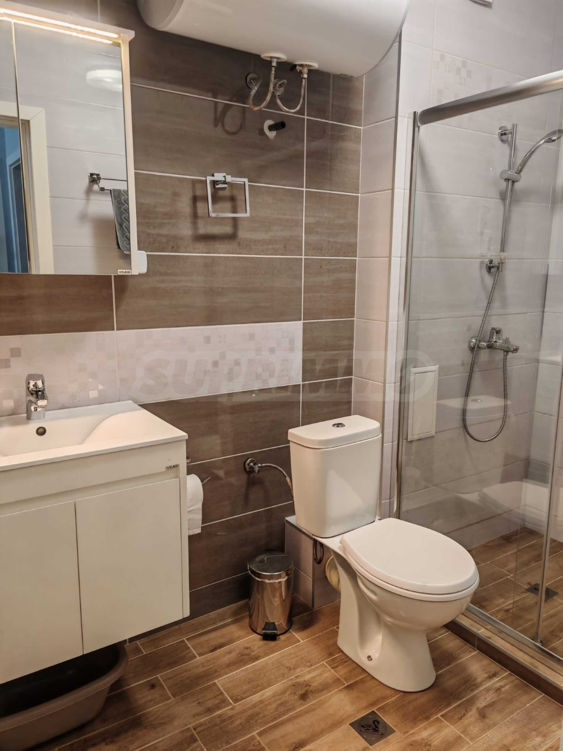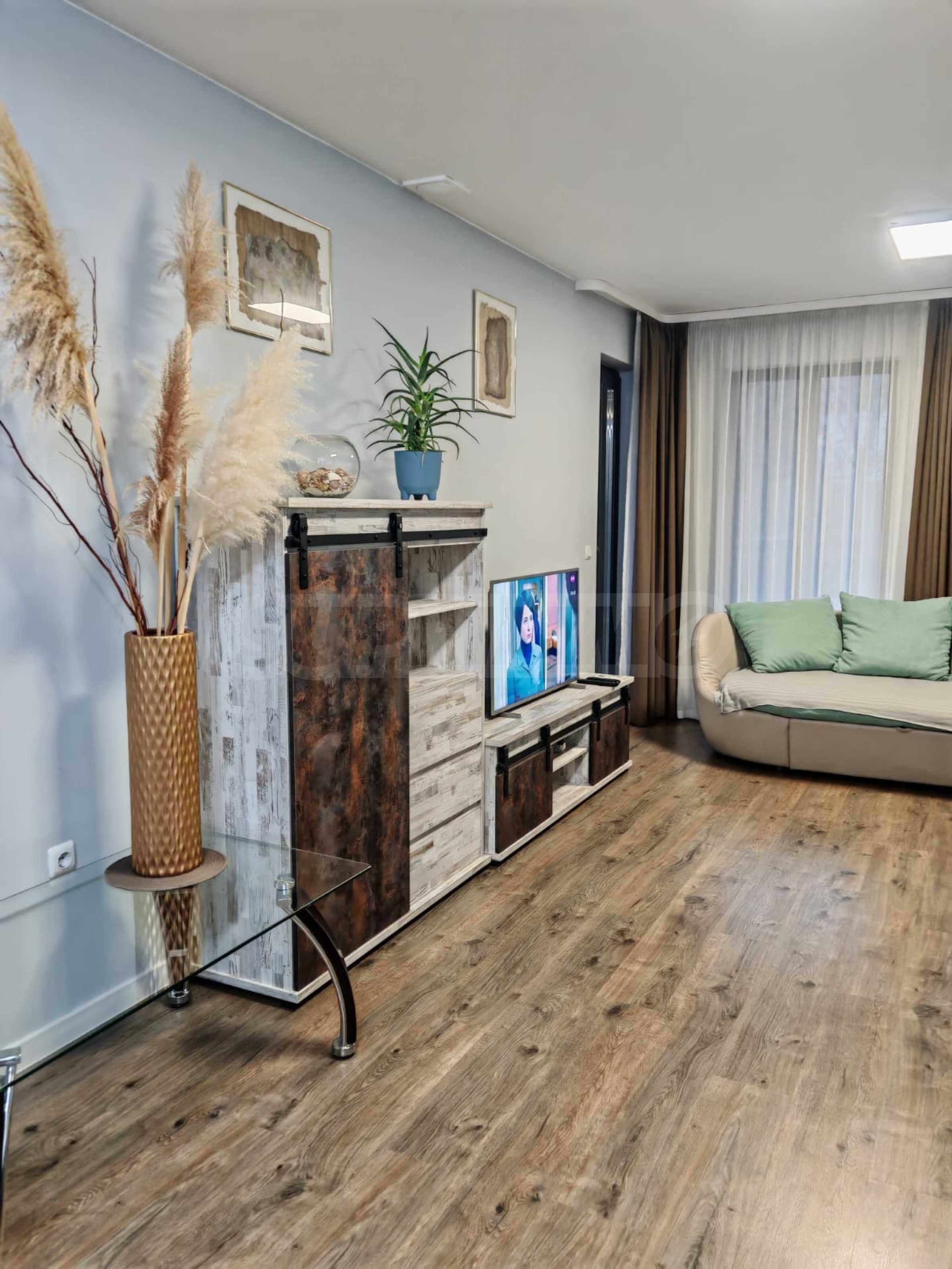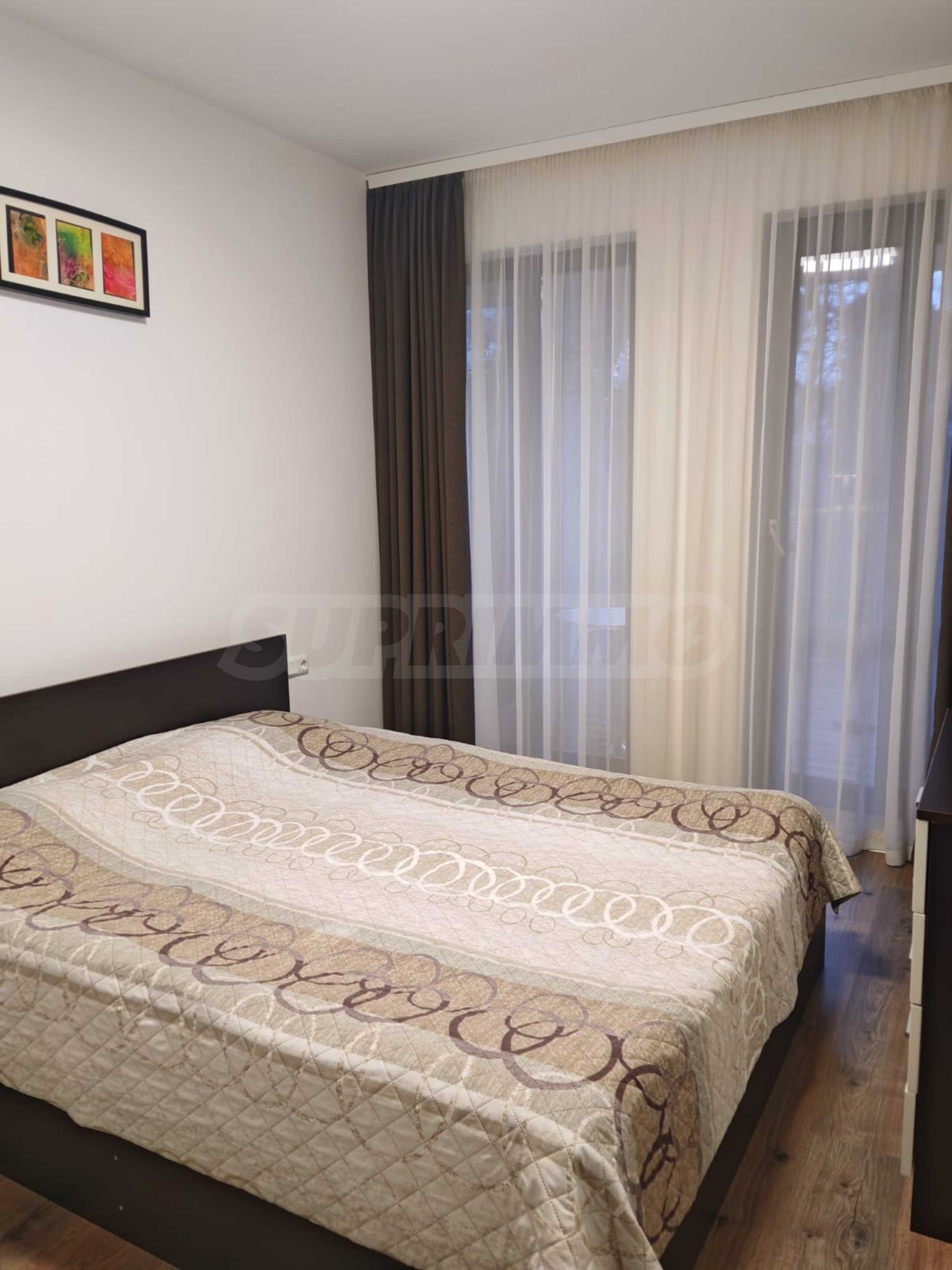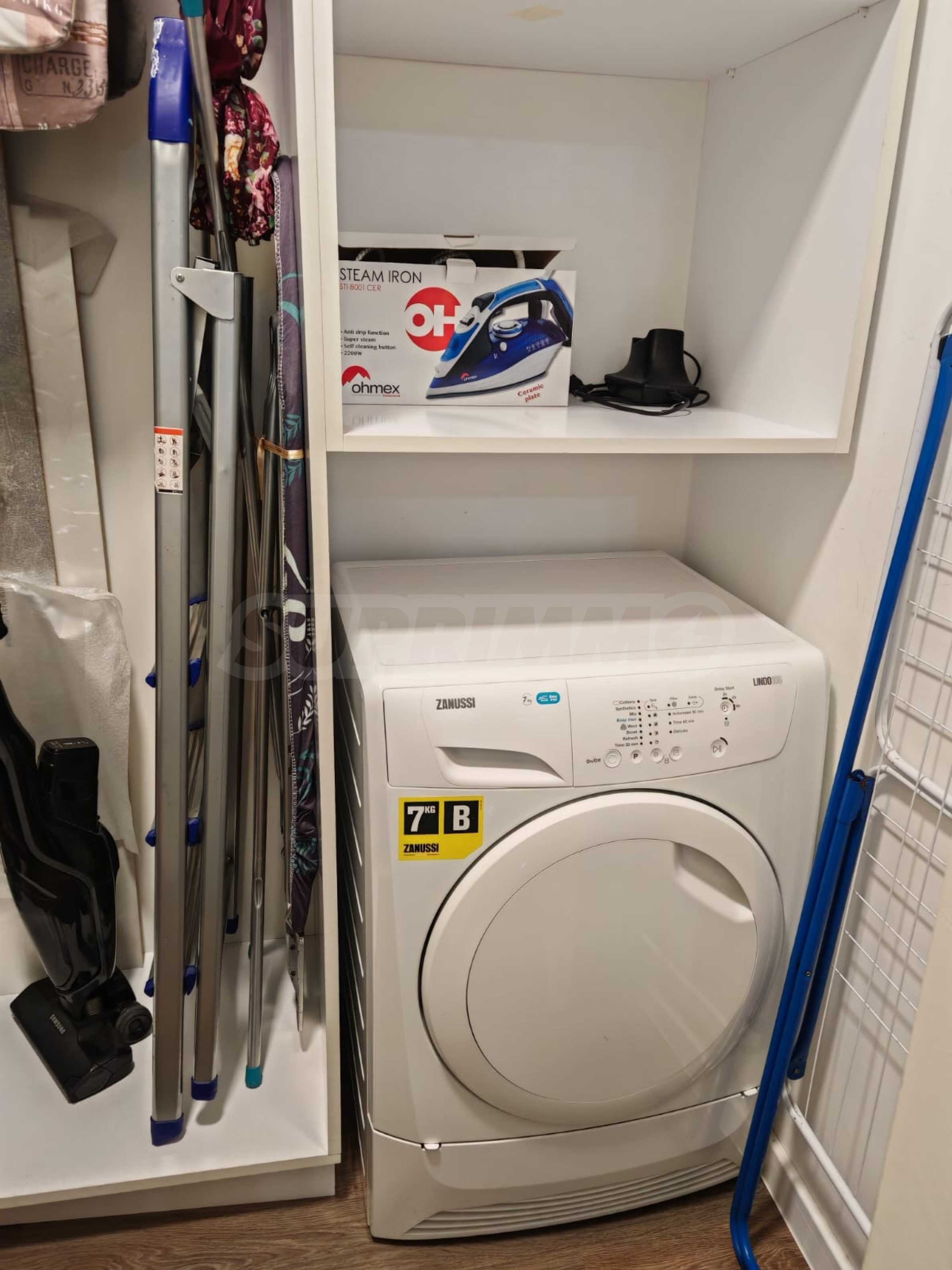 Жилището е напълно обзаведено и оборудвано, предлага се с всичко необходимо за живеене като мебели и ел. уреди, има климатици.