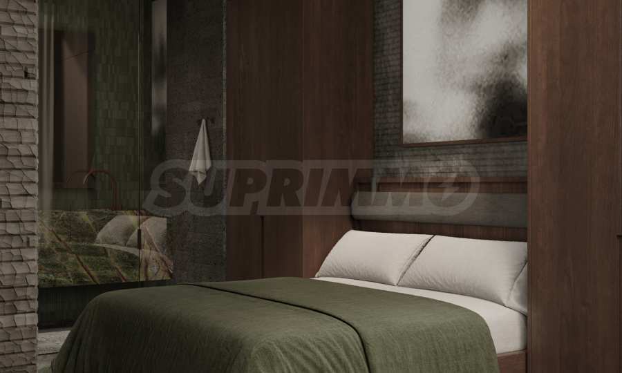 Интериорът е допълнен от специално изработени мебели и шкафове, занаятчийска мебелировка и кухня от масивен мрамор, оборудвана с висок клас електроуреди. Кухните и баните са завършени с масивни месингови смесители, а функционалността е подсилена от универсални електрически контакти, микро трак осветление и аналогови ключове, които позволяват прецизен контрол на светлината и атмосферата. Допълнителен комфорт осигурява и съвременна система за филтрация на водата.