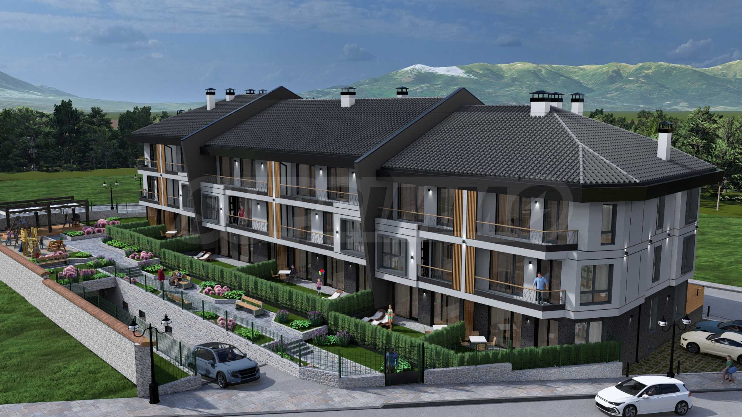 Представяме нов жилищен комплекс на изключителна локация – само на минути от кабинковия лифт и ски пистите на Банско. Комплексът съчетава модерна архитектура, естествени материали и висок стандарт на изпълнение, вдъхновени от духа и планинската идентичност на Пирин. Фасадата му е елегантна комбинация от камък, дърво и стъкло – естествено продължение на алпийската визия на района и гаранция за дълготрайност и естетика.