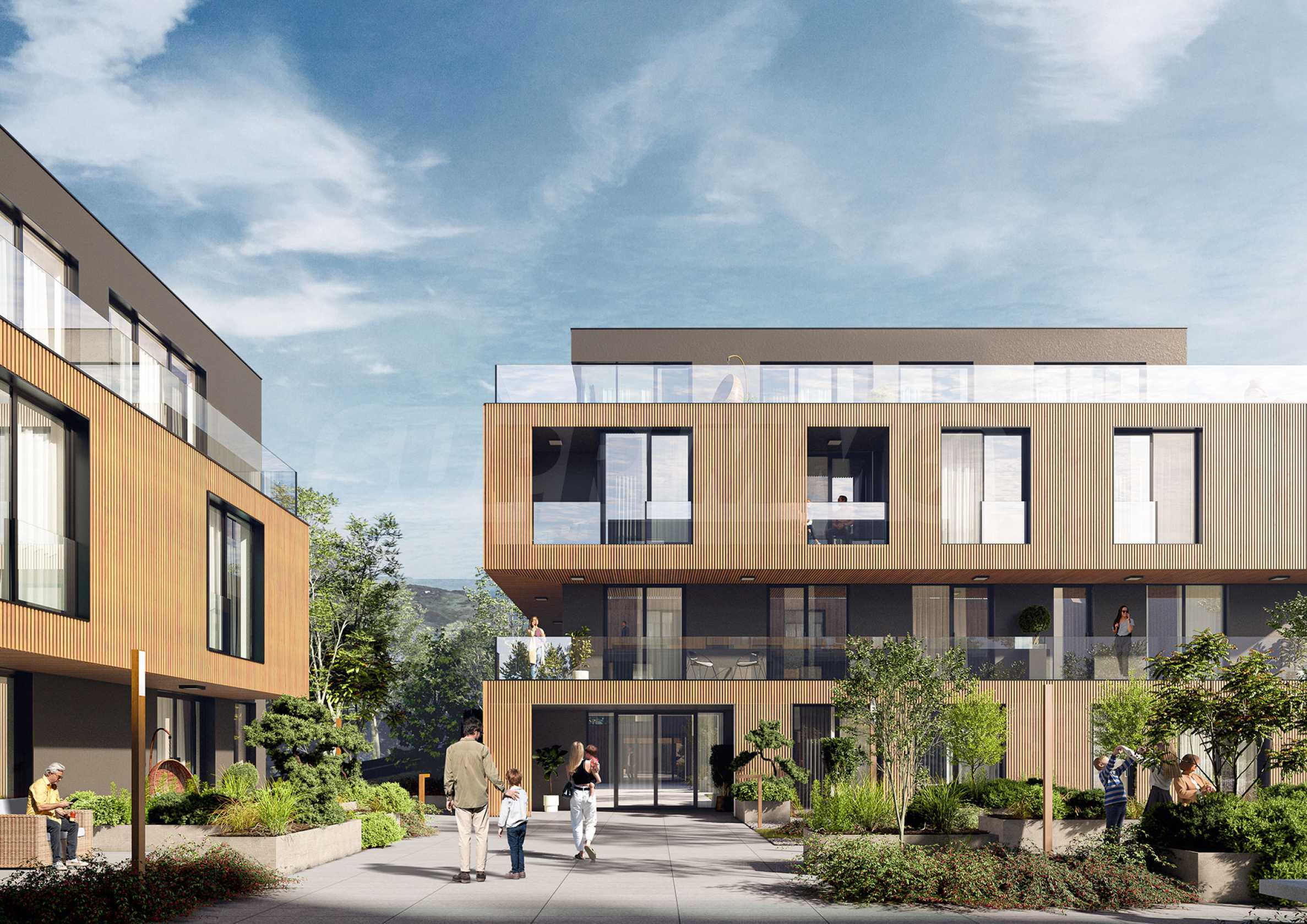 • Стъклени парапети и модерни фасадни елементи, подчертани в унисон с околната среда;