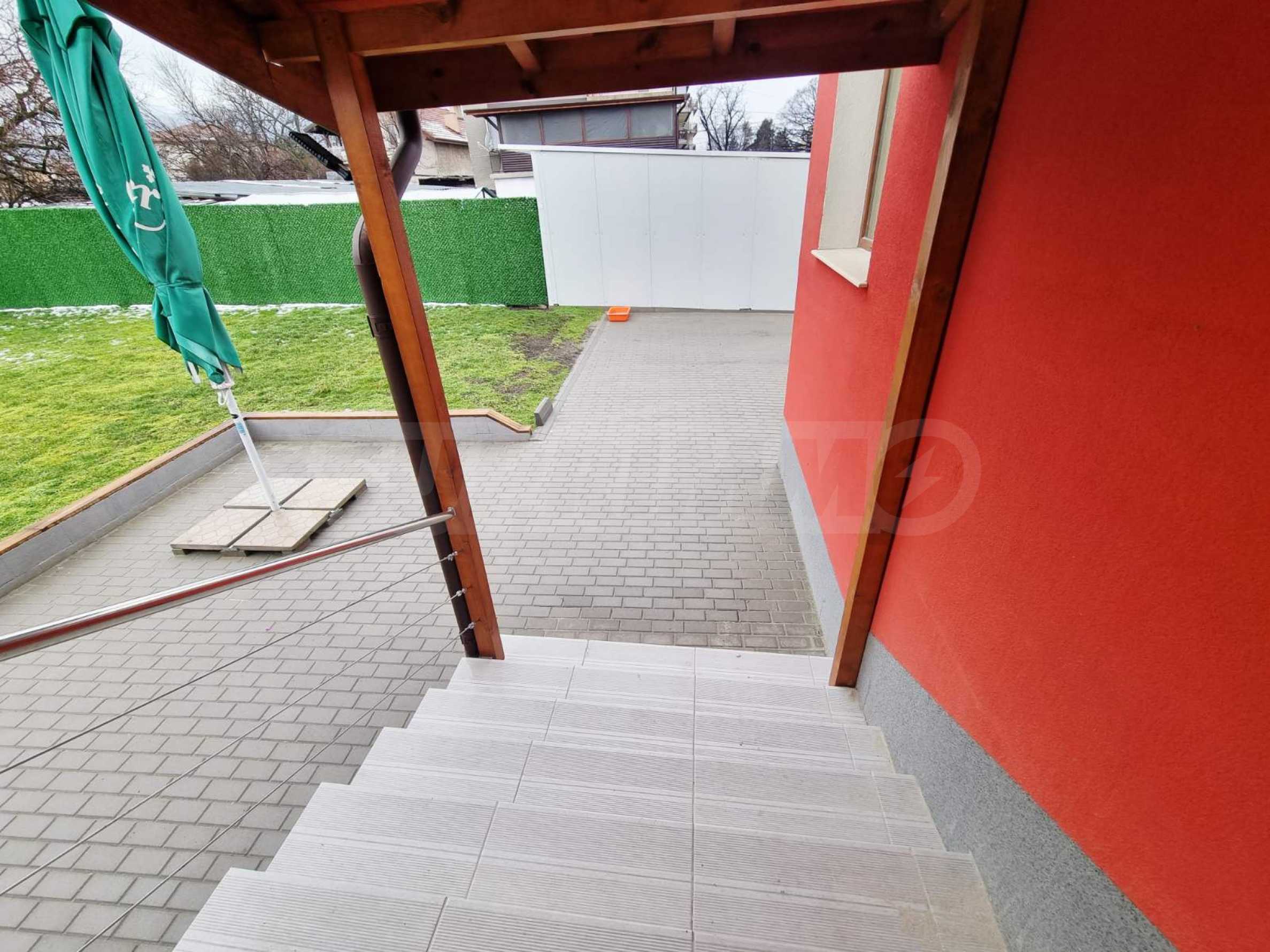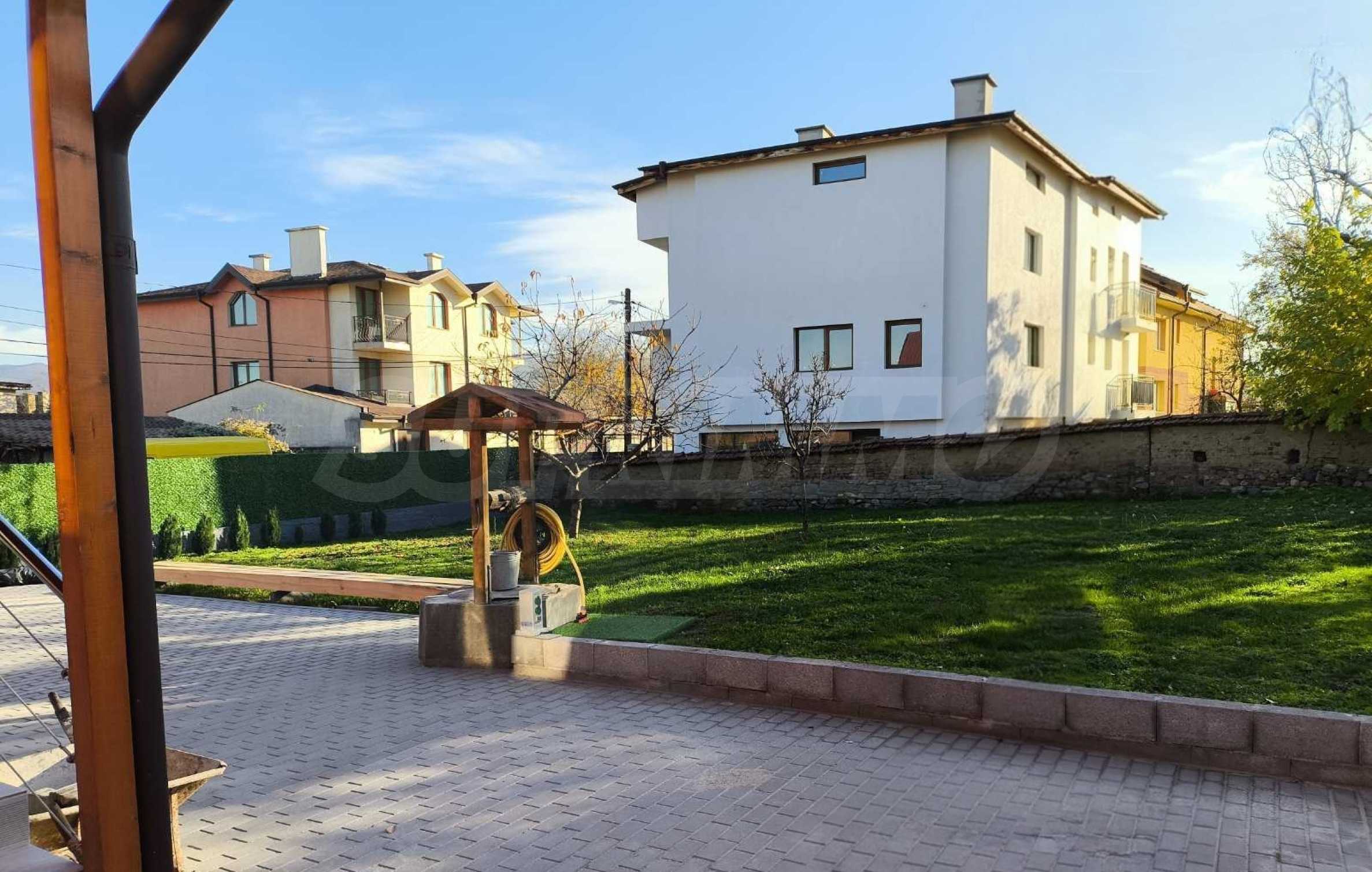 Къщата е красиво завършена и разположена, като граничи с две улици, а дворът е с южно изложение и просторна гледка. Налични са 2 паркоместа на открито, с възможност за трето.