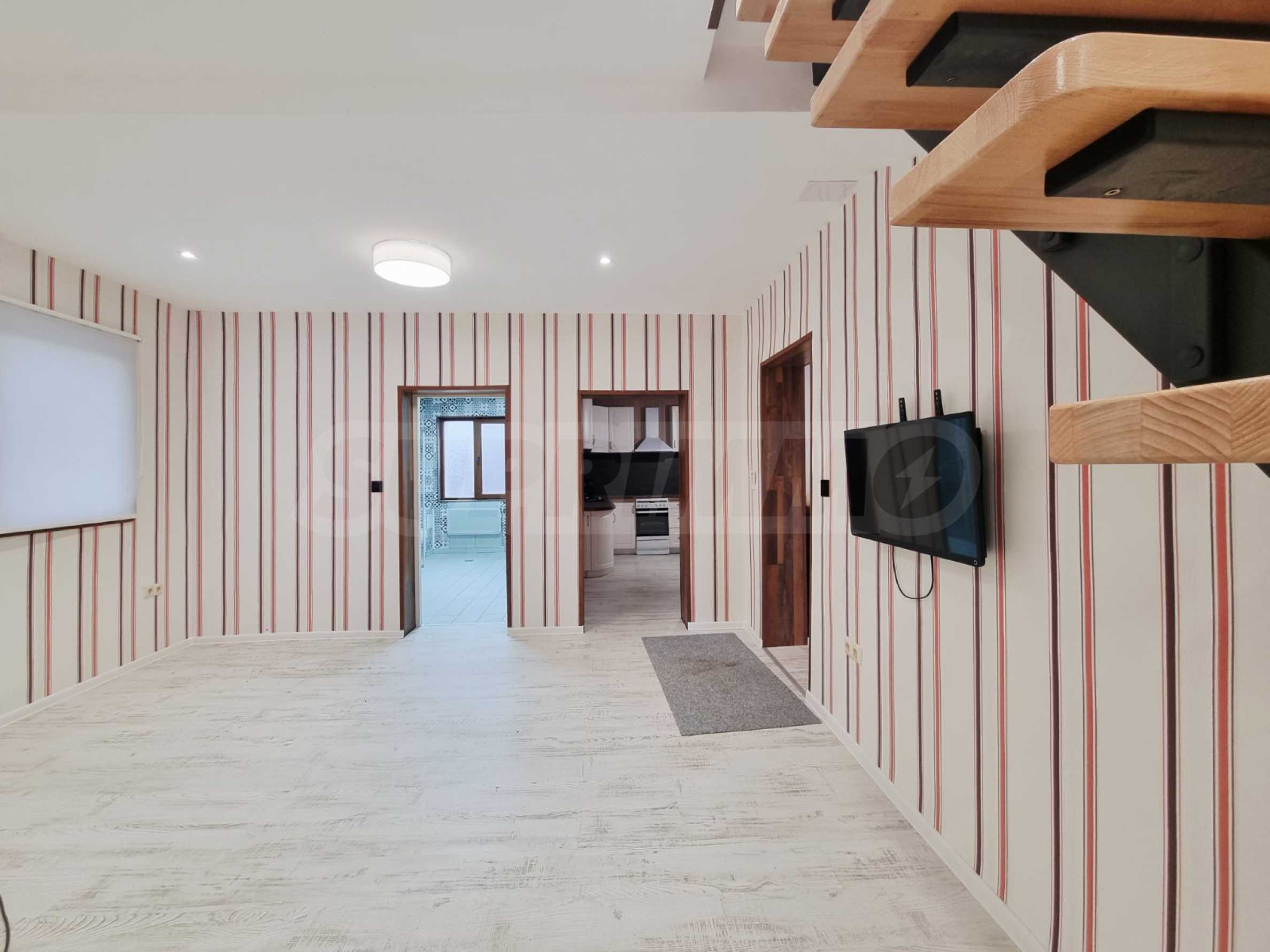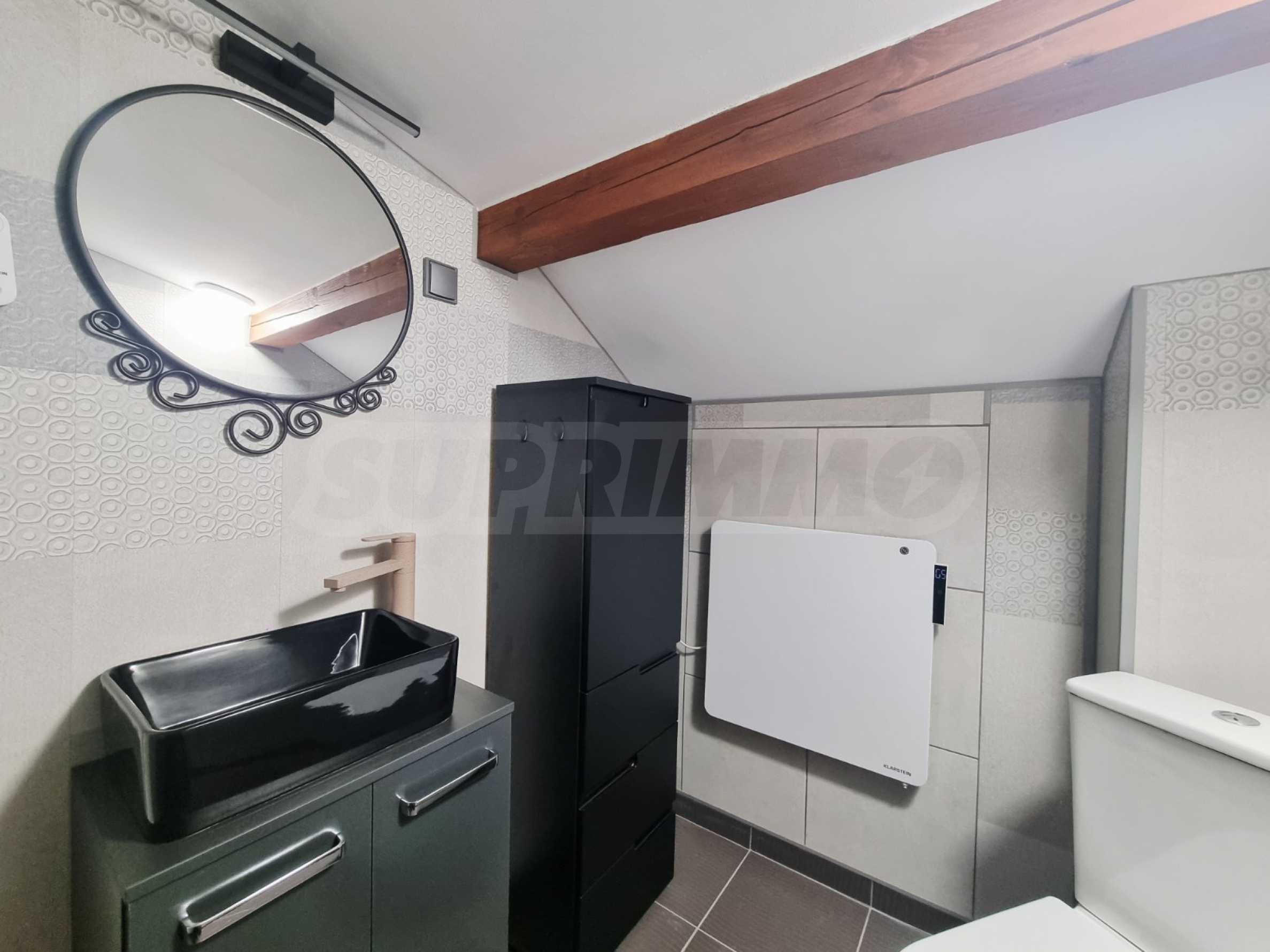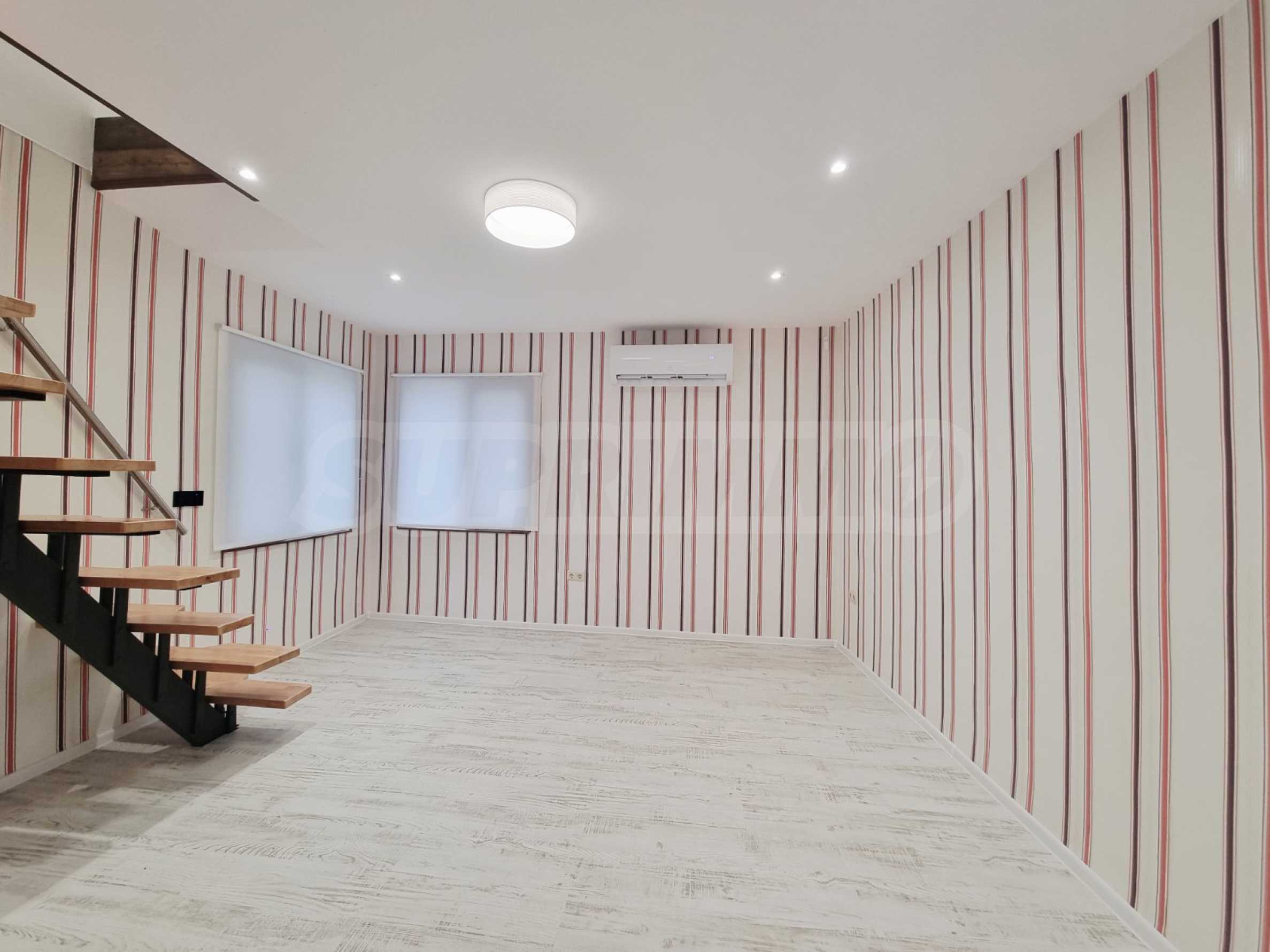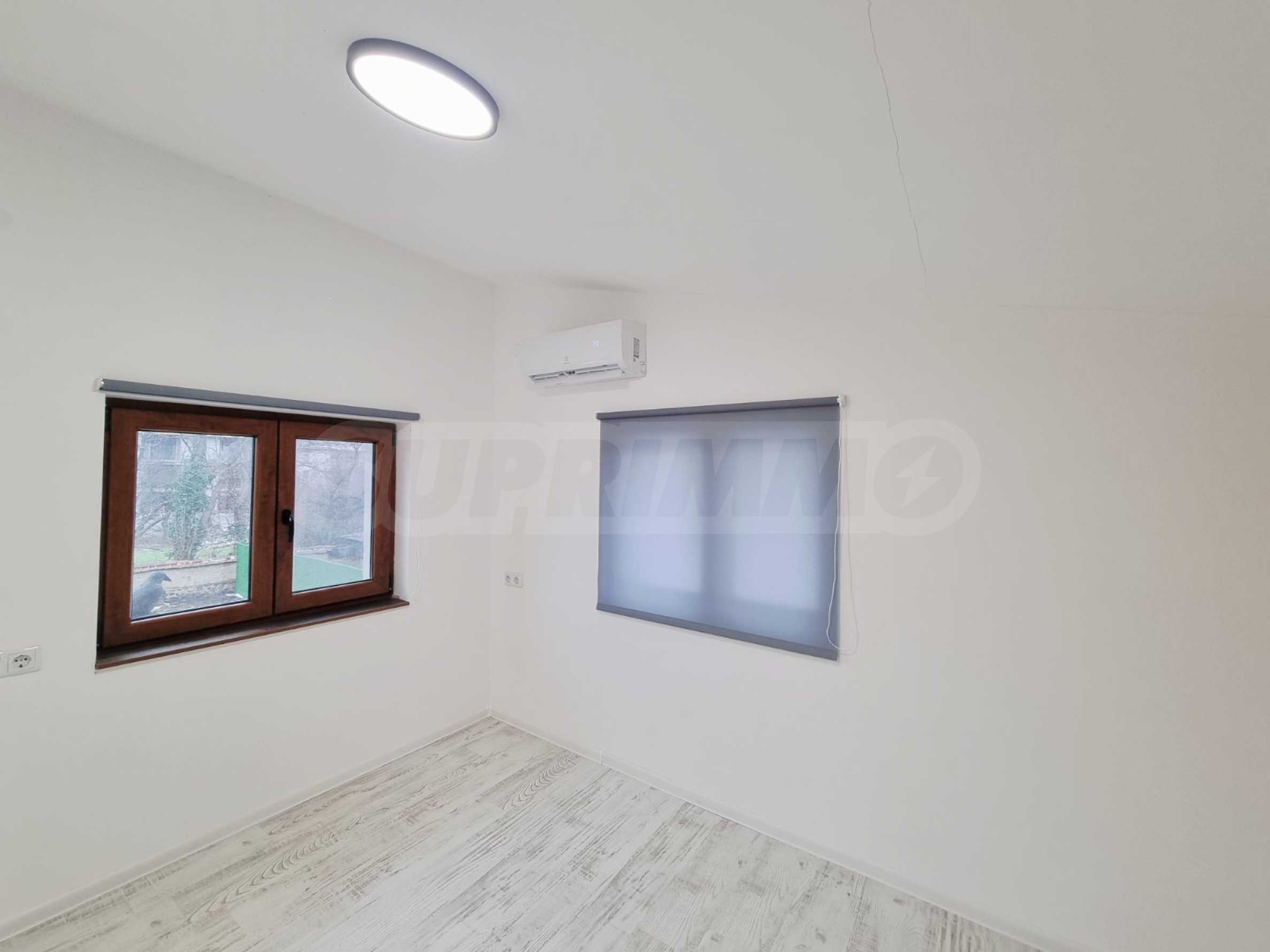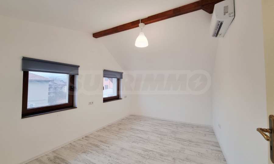 - 2-ри етаж: три стаи (подходящи за спални или за отделни кабинети), голямо коридорно помещение с възможност за поставяне на вградени шкафове, баня с тоалетна.