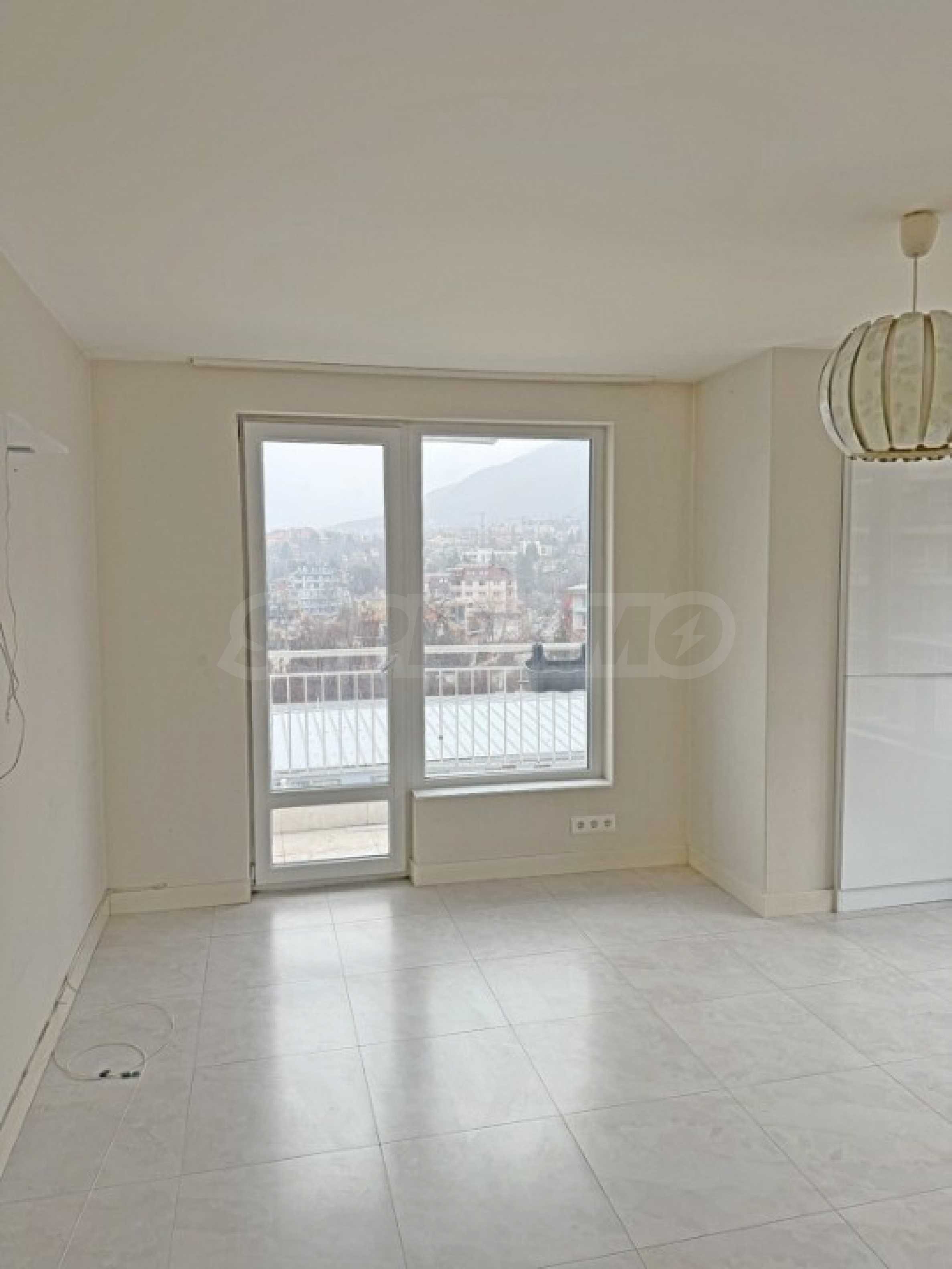 Апартаментът разполага с 98 кв.м. площ и е ситуиран на 4-ти етаж от общо седем. Разпределението е следното: дневна с оборудвана кухня, 2 спални, баня с тоалетна и тераса с панорамна гледка към Витоша.