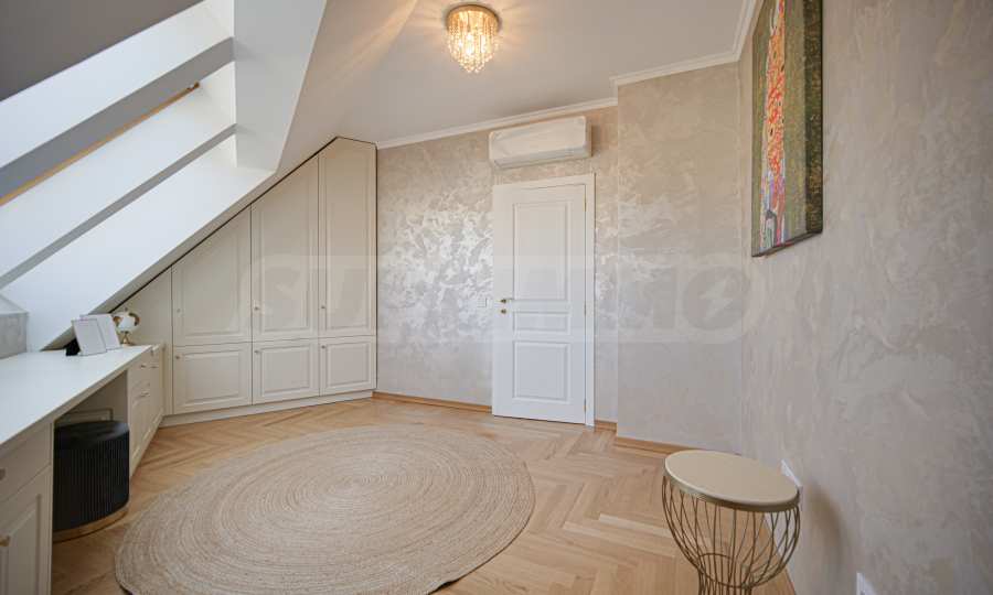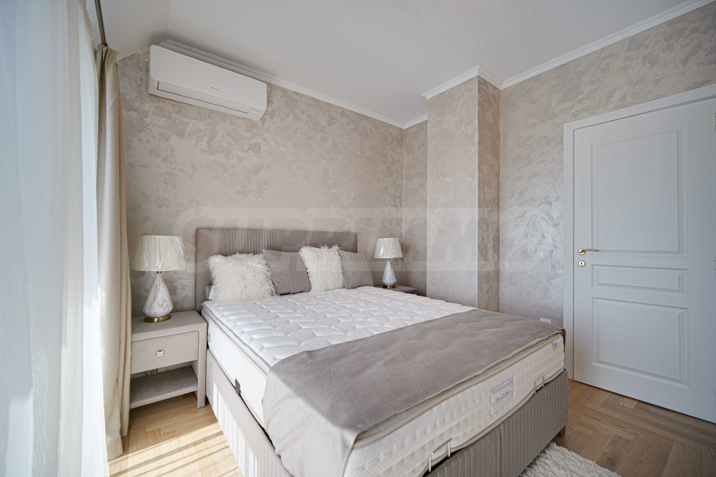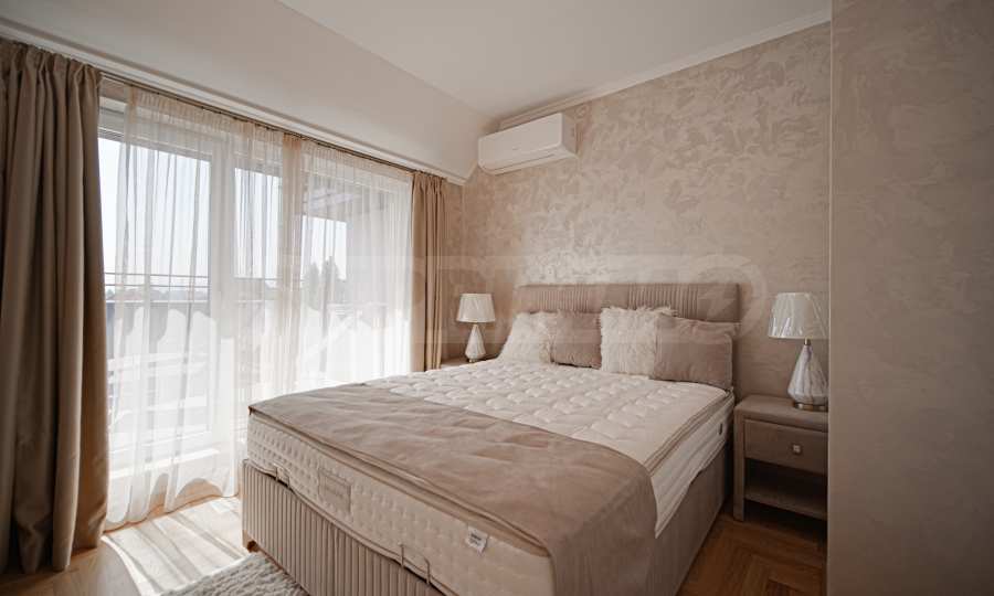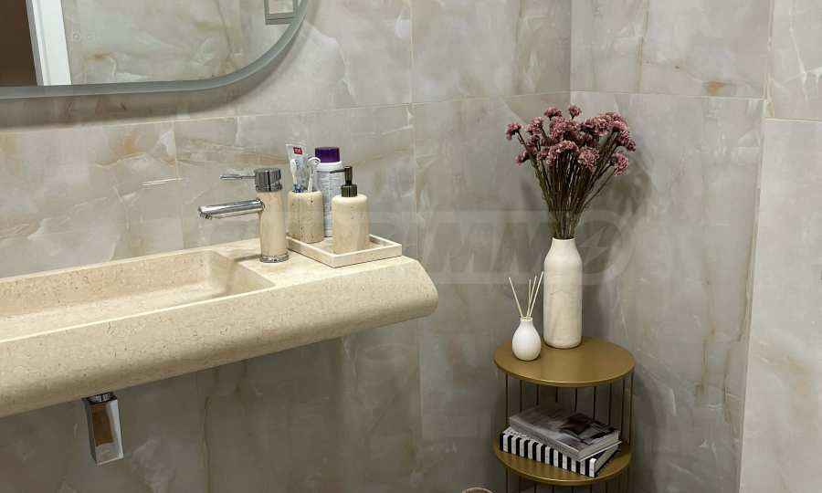 Степен на завършеност: стени и тавани на латекс и тапети ,под на дъбов паркет; монтирани ключове, контакти, радиатори, изградено СОТ окабеляване, изградено слаботокови окабеляване с FTP розетки, оптичен кабел до всеки апартамент, наличие на сървърно помещение в обща част, свързано с интернет доставчик, изградена звънчево-домофонна инсталация, монтиран климатик, изградена и работеща инсталация за видеонаблюдение и СОТ за цялата сграда, с обхват - вход и периметър на сграда, вход и периметър на гаражни етажи, монтирани водомери и пощенски кутии за всички обекти в сградата, изградена и функционираща вентилационна система в гаражи, изградена и функционираща поливна система за зона озеленяване.