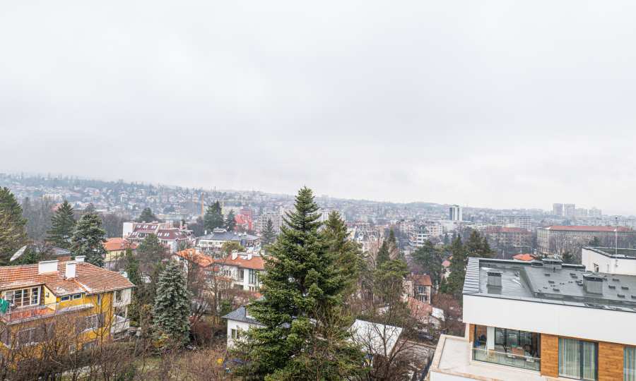 Представяме двустайно жилище с панорамна гледка и голяма тераса в нов жилищен комплекс в местност „Гърдова глава“. Комплексът се състои от две сгради със зелени площи. Локацията на имота е в близост до бул. „Цар Борис III“ и „Околовръстен път“. Удобното му разположение предоставя на метри спирки на градски транспорт (автобусна и трамвайна линия). В района ще откриете училище, детска градина, хипермаркети, аптеки, кафенета, ресторанти, хранителни магазини и други.