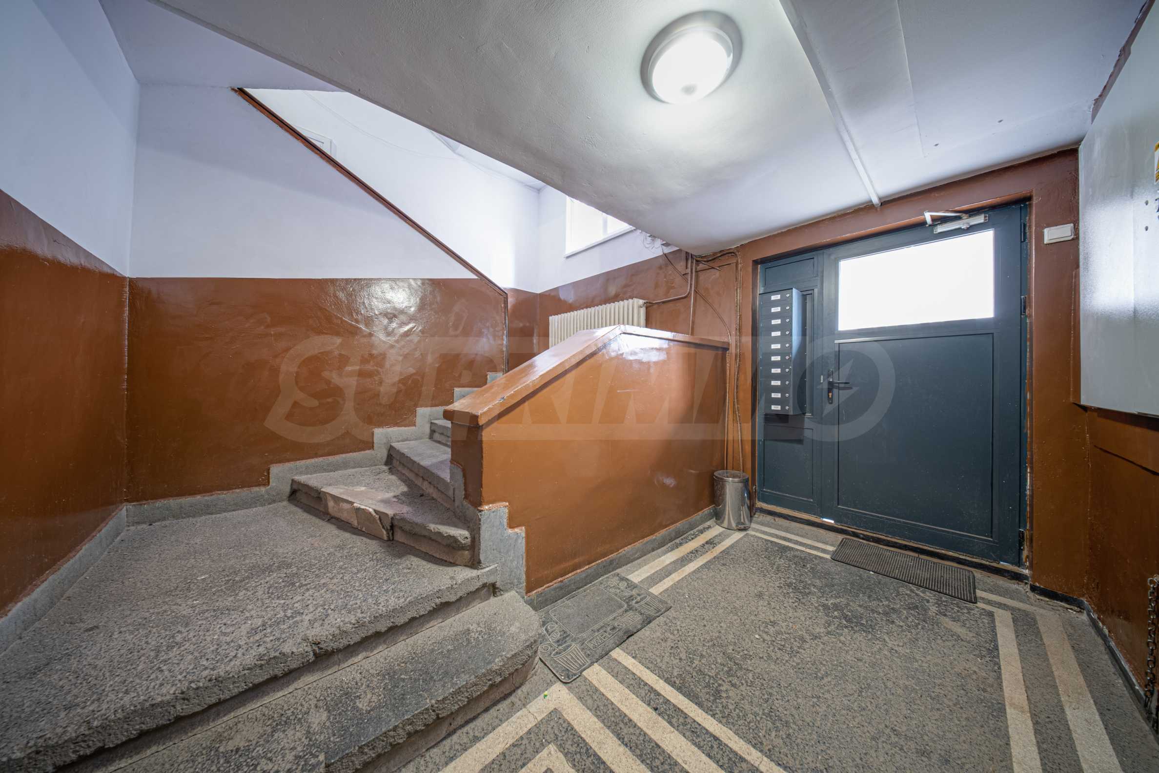 Апартаментът заема трети етаж от общо пет в сграда с добре поддържани общи части. Изложението е изцяло юг/запад. Предлага се довършено със следните материали: