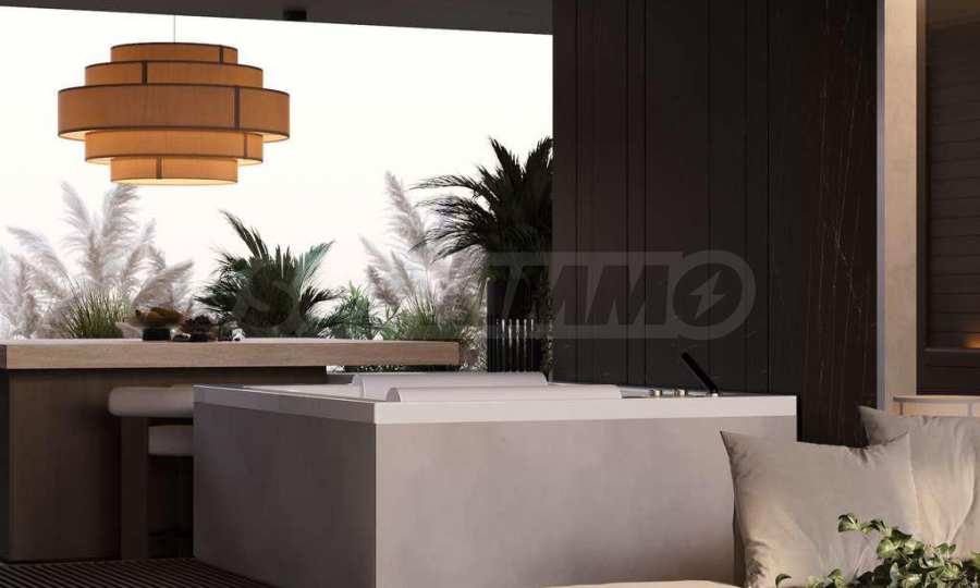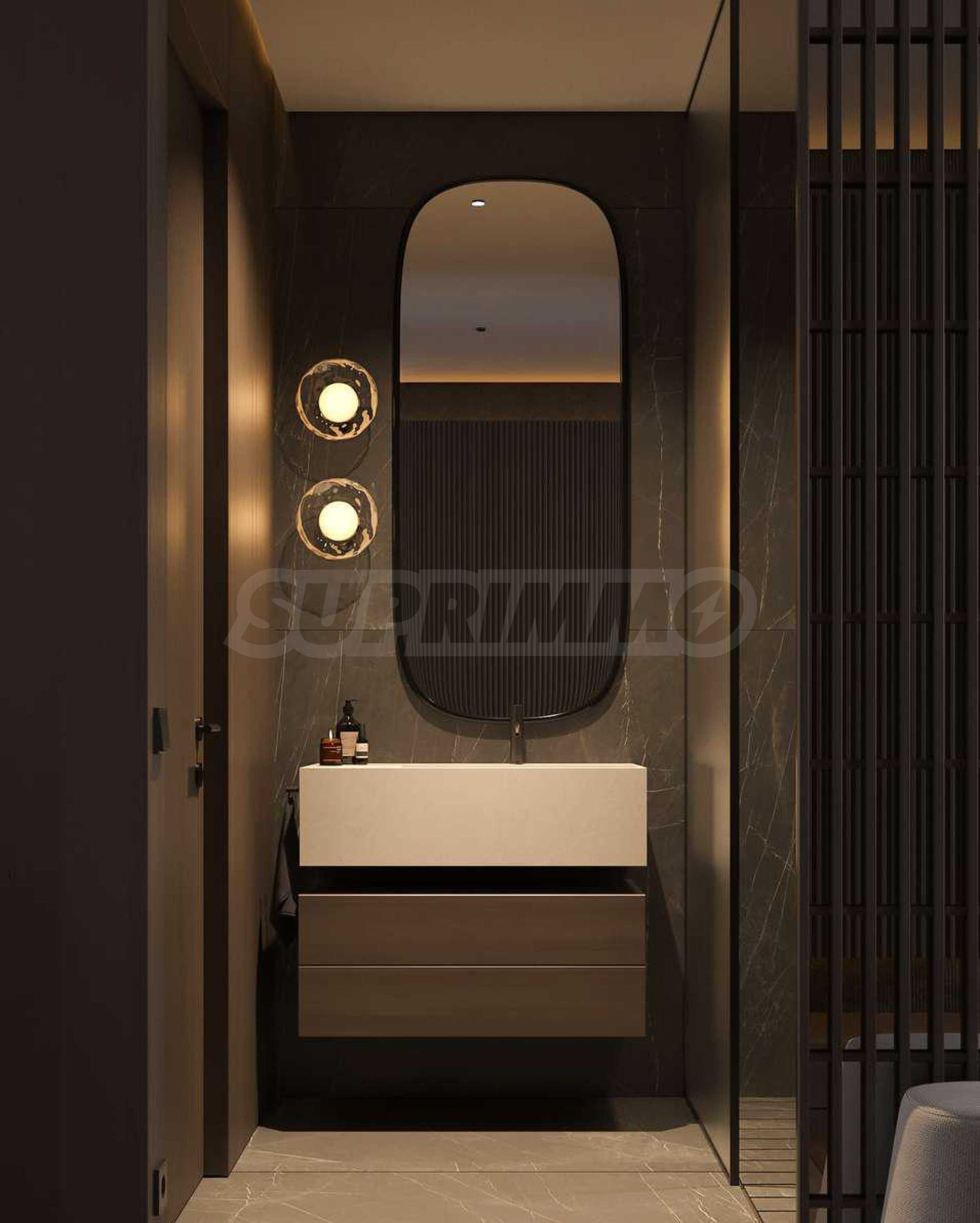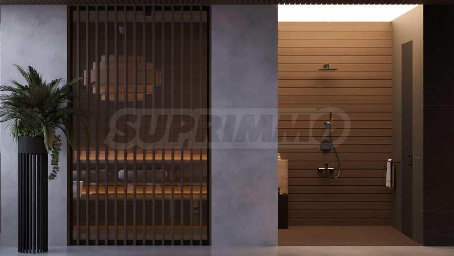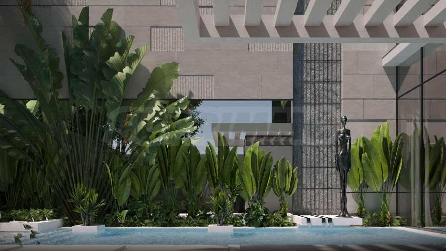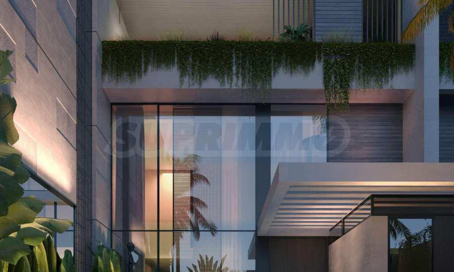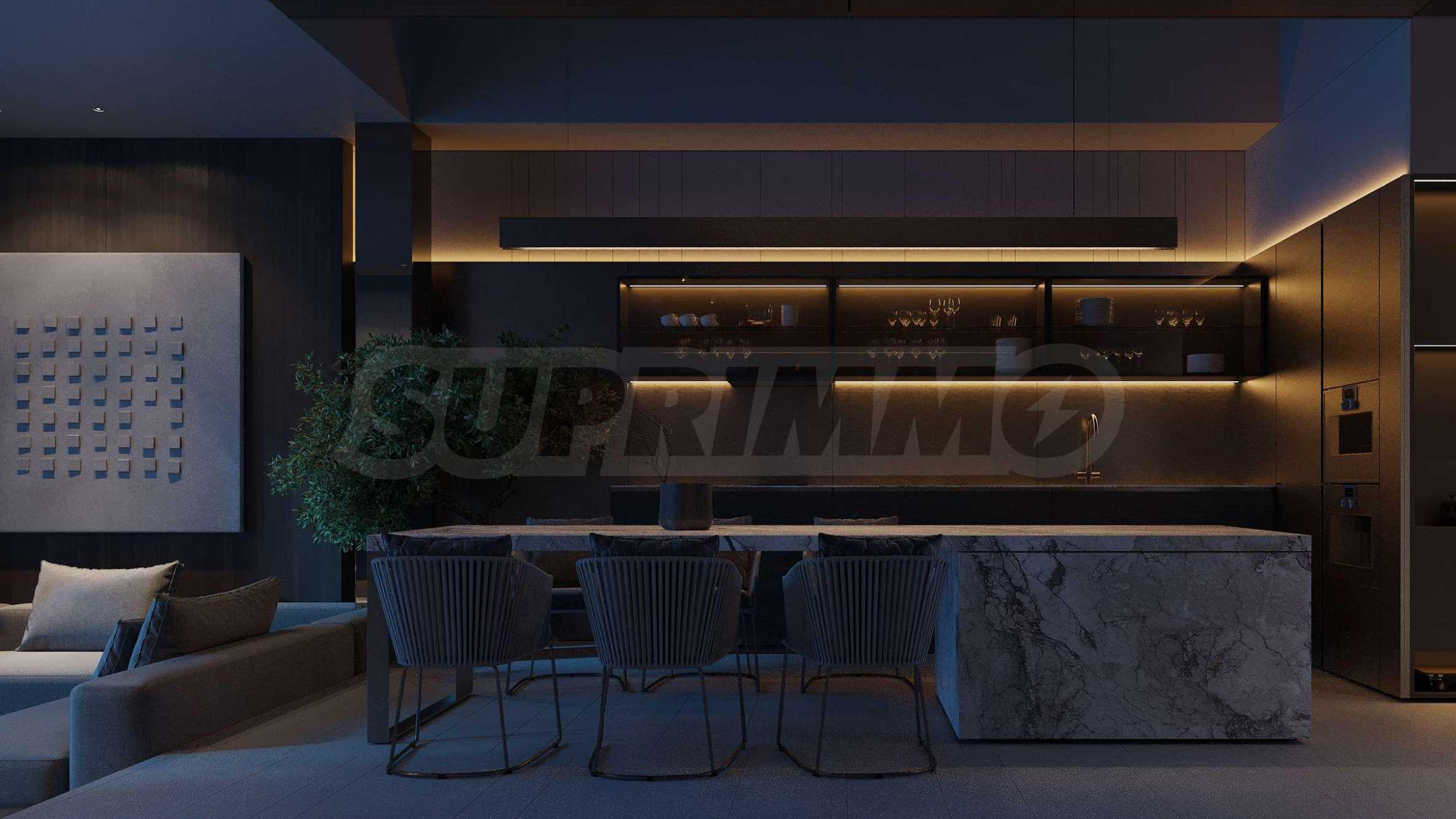 Всички резиденции в комплекса се предлагат напълно обзаведени и завършени до ключ, като всеки елемент – от настилките до финалните декоративни акценти – е подбран с внимание към детайла. Използвани са висококачествени материали като гранит, естествено дърво и терацо, а стените са фино обработени и допълнени с декоративни вложки от дърво и камък, които подчертават модерната естетика.