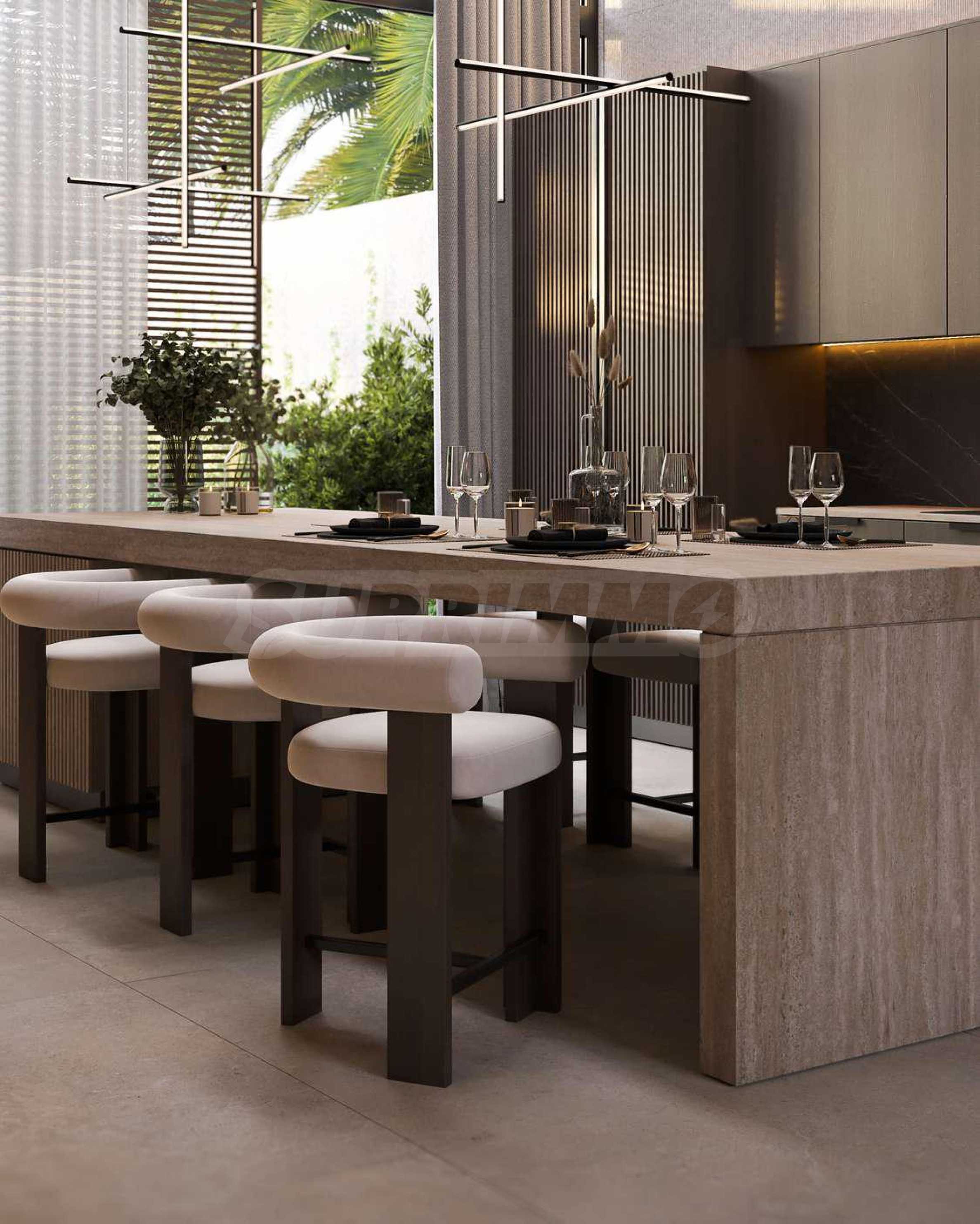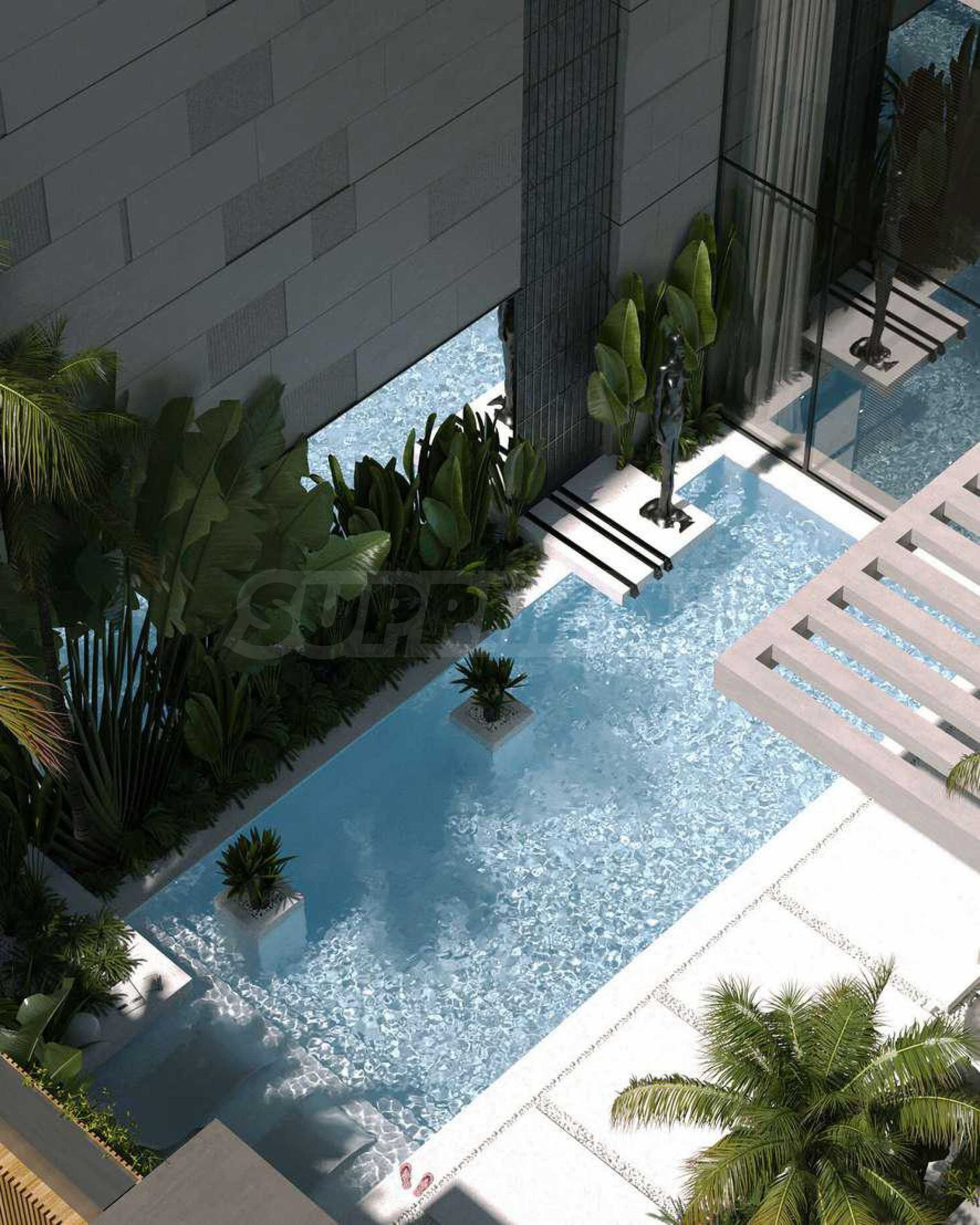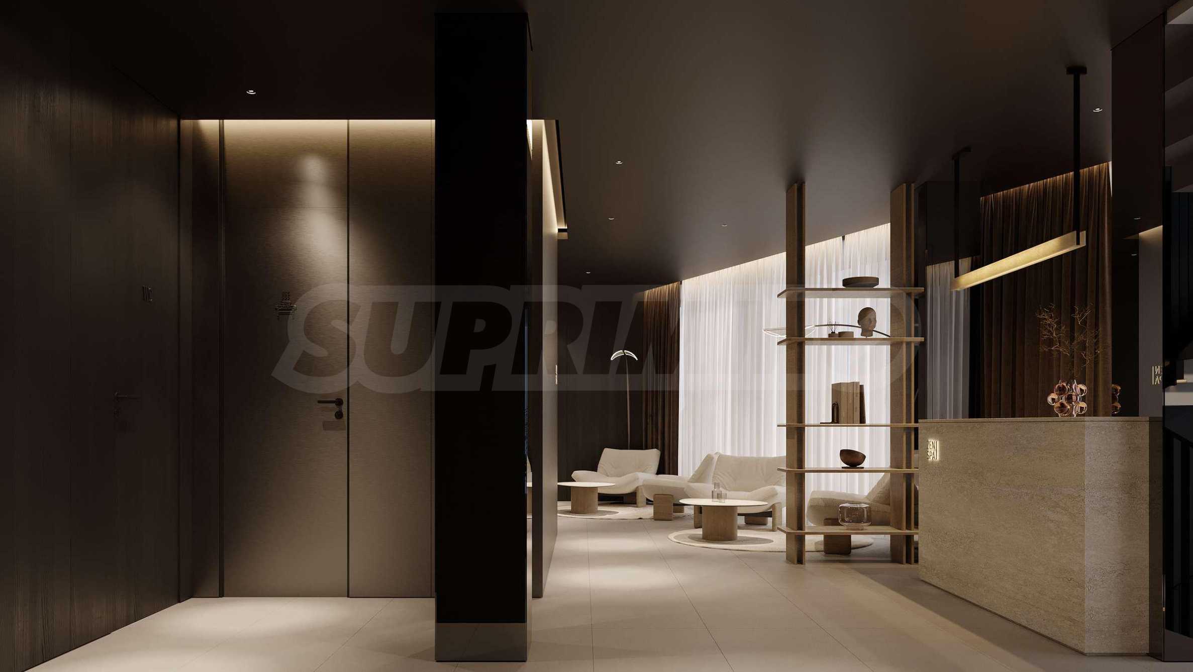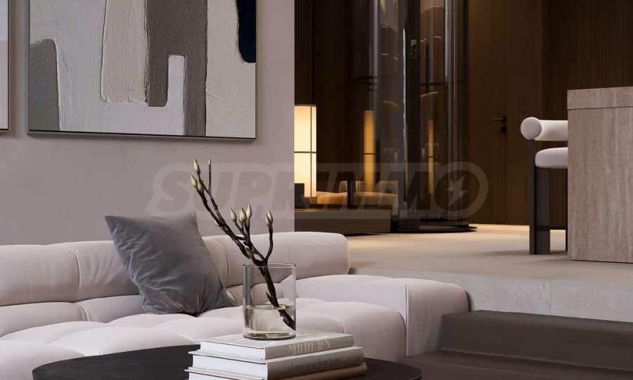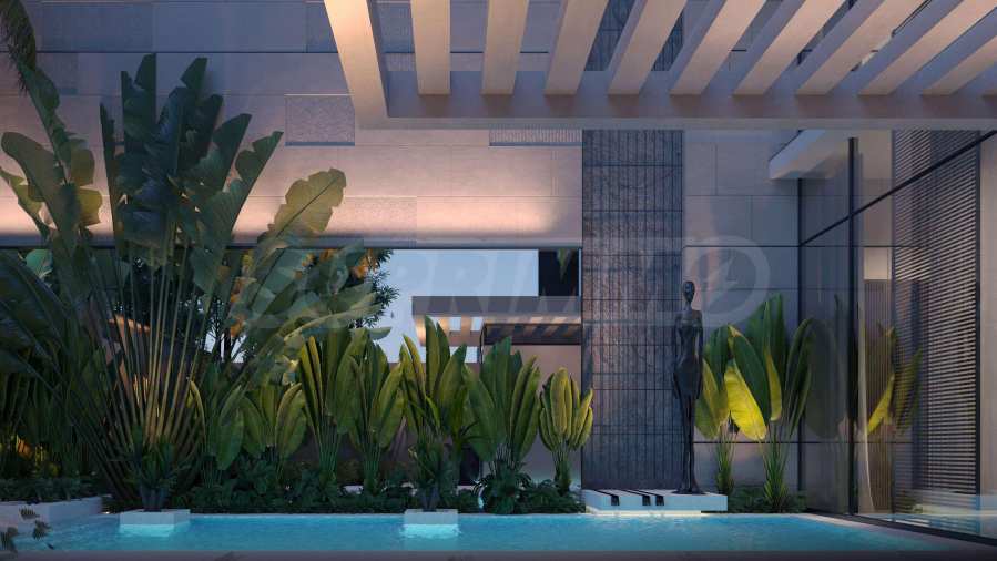 Всички резиденции в комплекса се предлагат напълно обзаведени и завършени до ключ, като всеки елемент – от настилките до финалните декоративни акценти – е подбран с внимание към детайла. Използвани са висококачествени материали като гранит, естествено дърво и терацо, а стените са фино обработени и допълнени с декоративни вложки от дърво и камък, които подчертават модерната естетика.