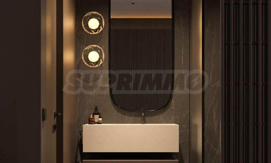 Баните са оборудвани с аксесоари и санитария от доказани международни производители като TOTO, Grohe и Remtech. Кухните са с вградени италиански шкафове и електроуреди от Modena, Samsung и LG, включително кафемашина Nespresso.