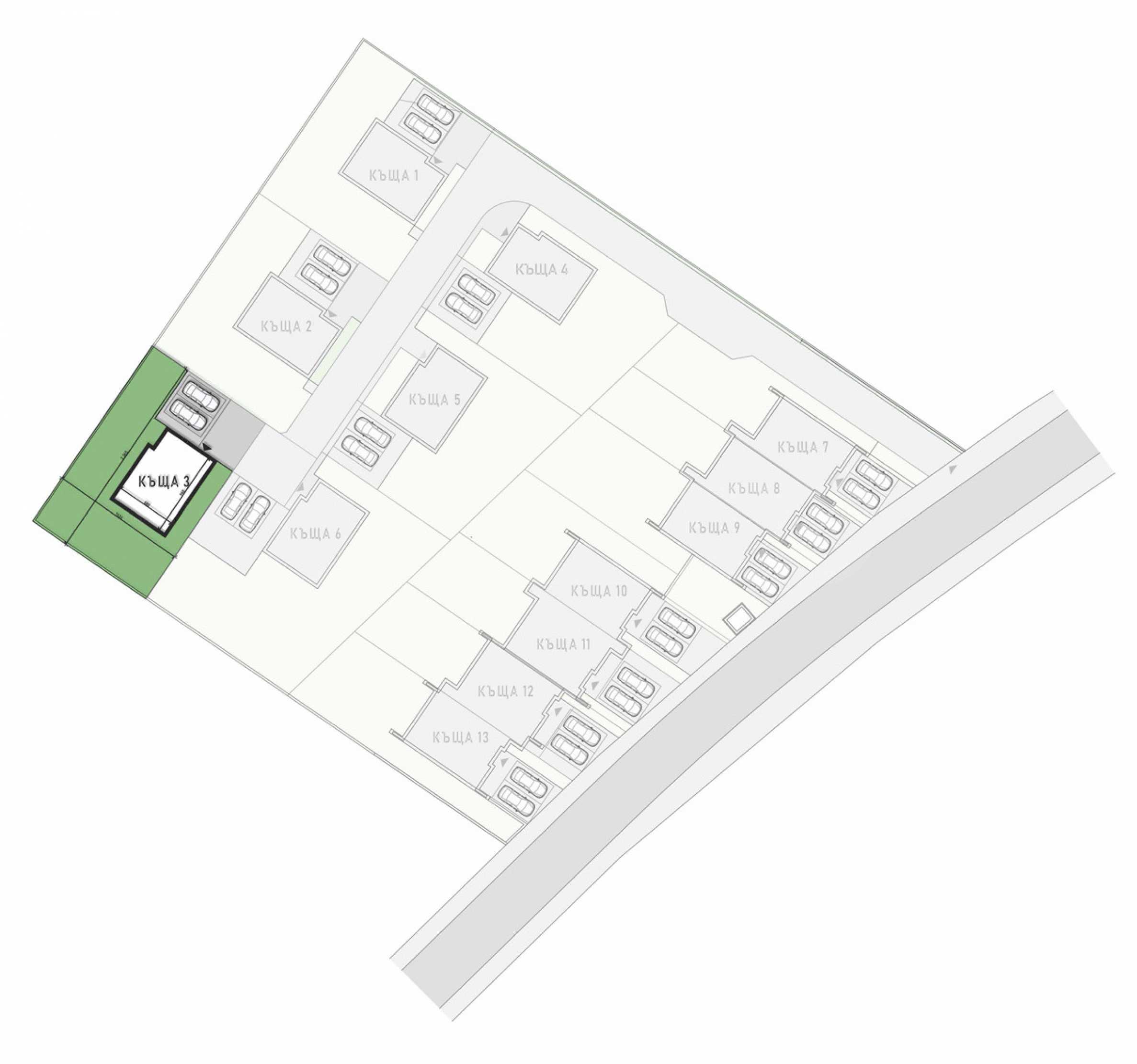 Самостоятелната къща №3 е на два етажа, с обща площ 197.68 кв.м, с двор с площ 363 кв.м.