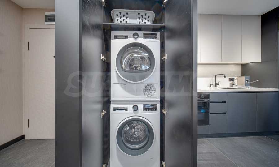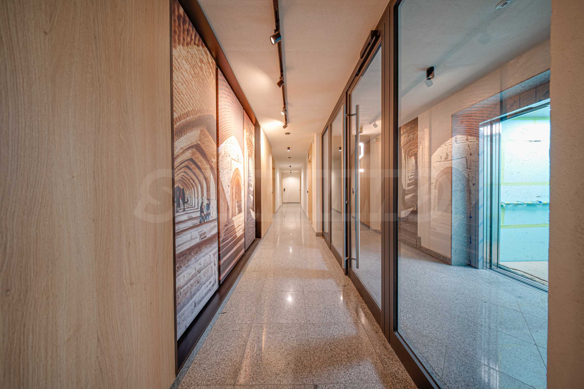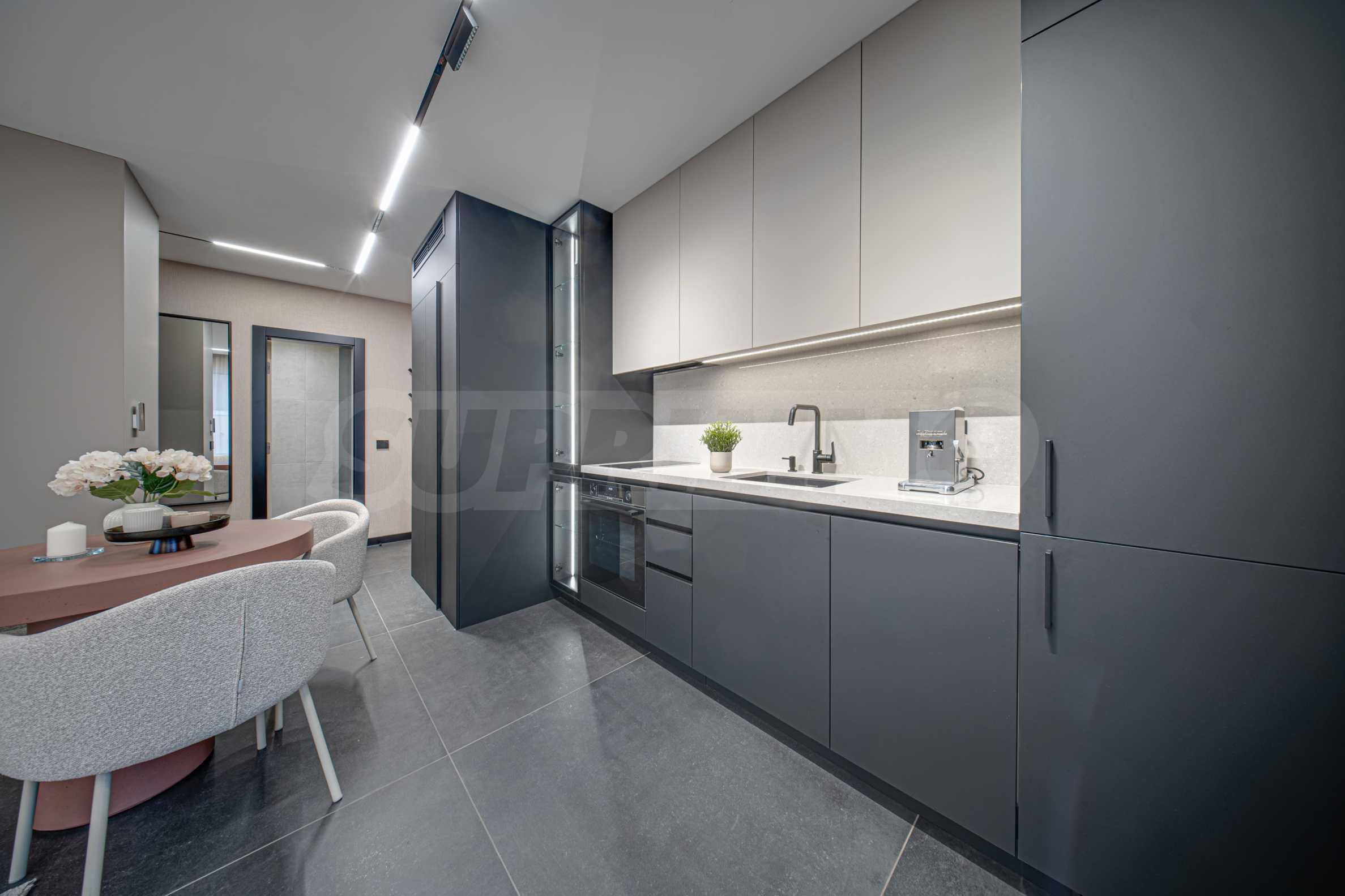 Апартаментът се предлага завършен с висок клас довършителни работи и заема втори етаж от общо четири етажа.