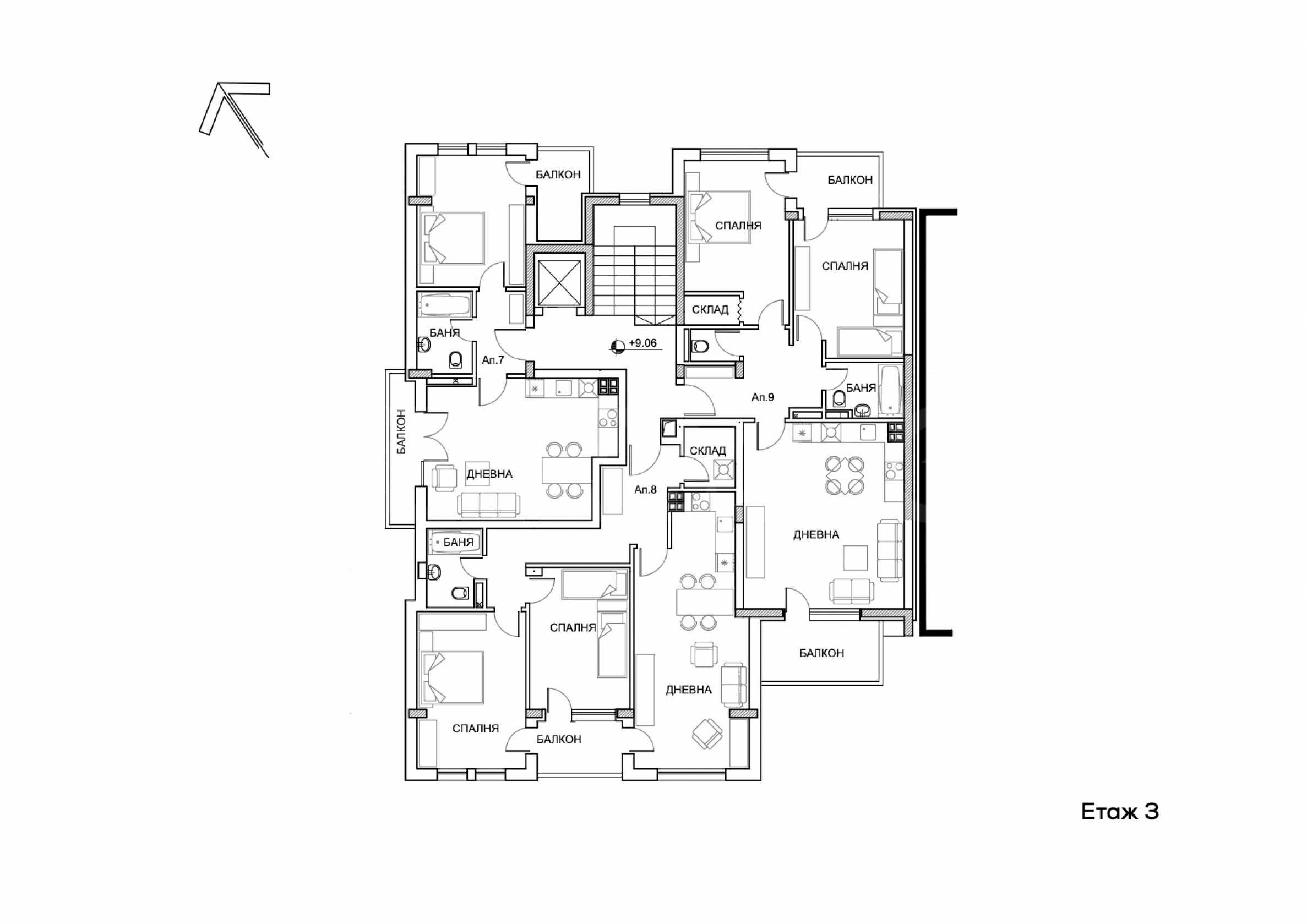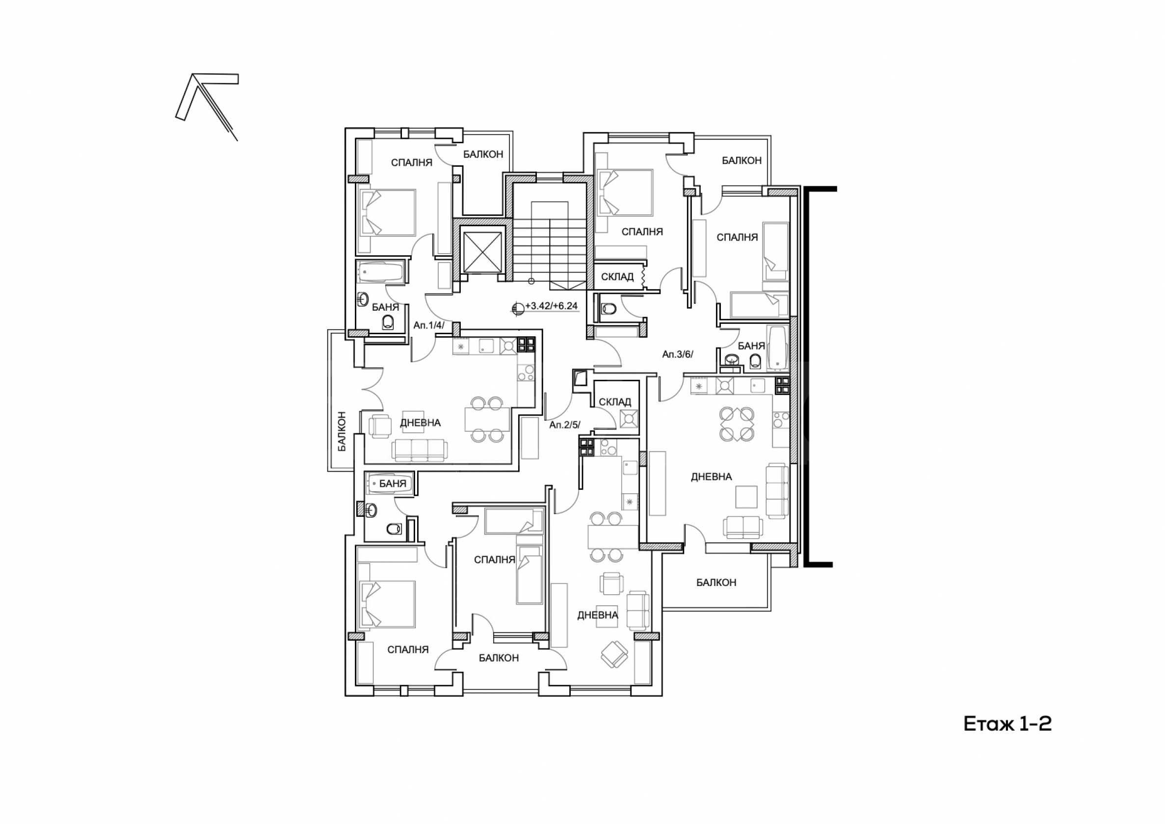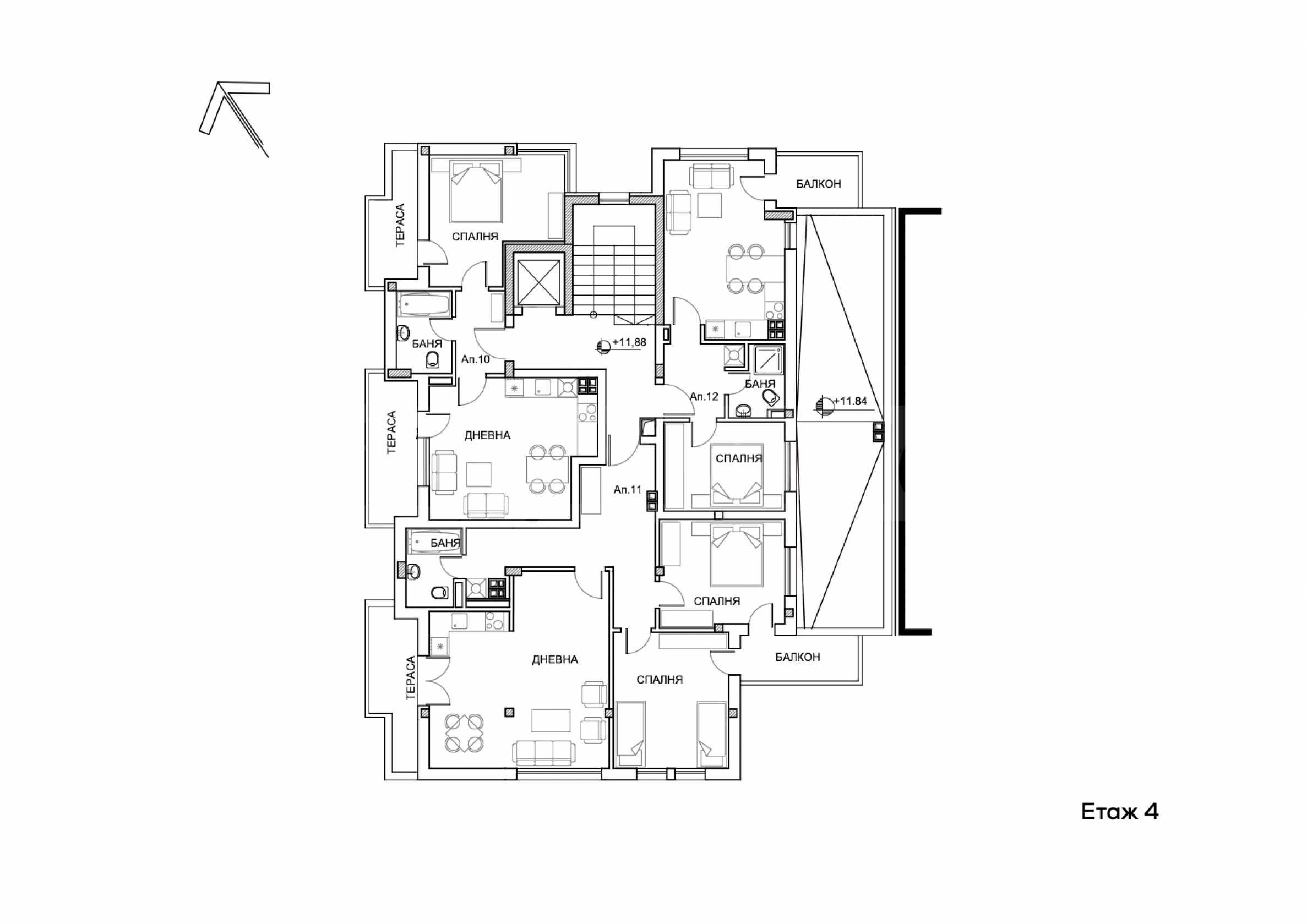 • един четиристаен апартамент, разположен на последния етаж.