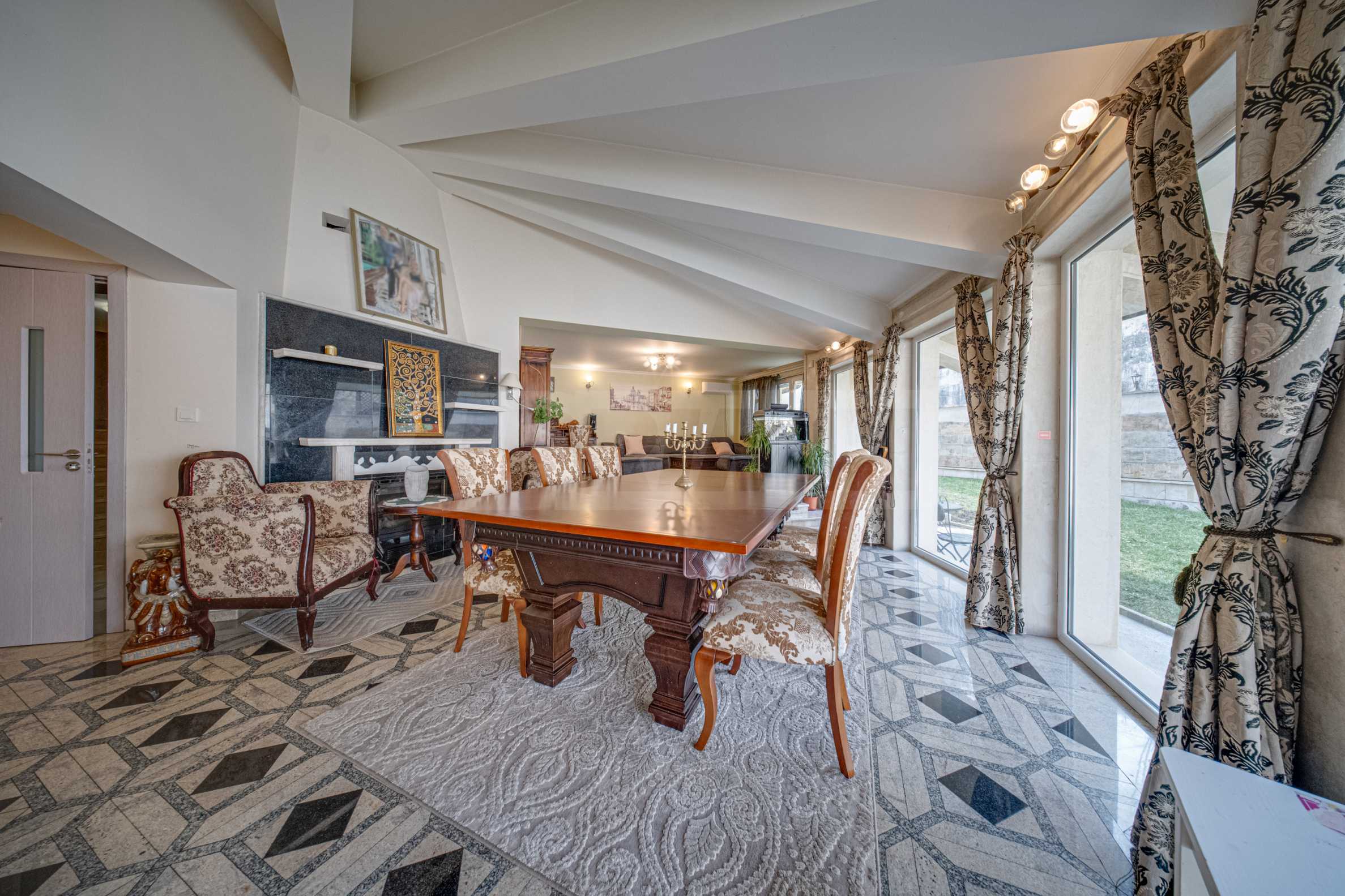 Къщата е построена през 2000 година, с разгъната площ 400 кв.м и двор 731 кв.м. Изложението е юг / север / изток, като от имота се откриват прекрасна гледки към планината и града. Имотът е с класически архитектурен облик, а интериорът е изпълнен с елегантност и стил. (Обзавеждането е по договаряне.)