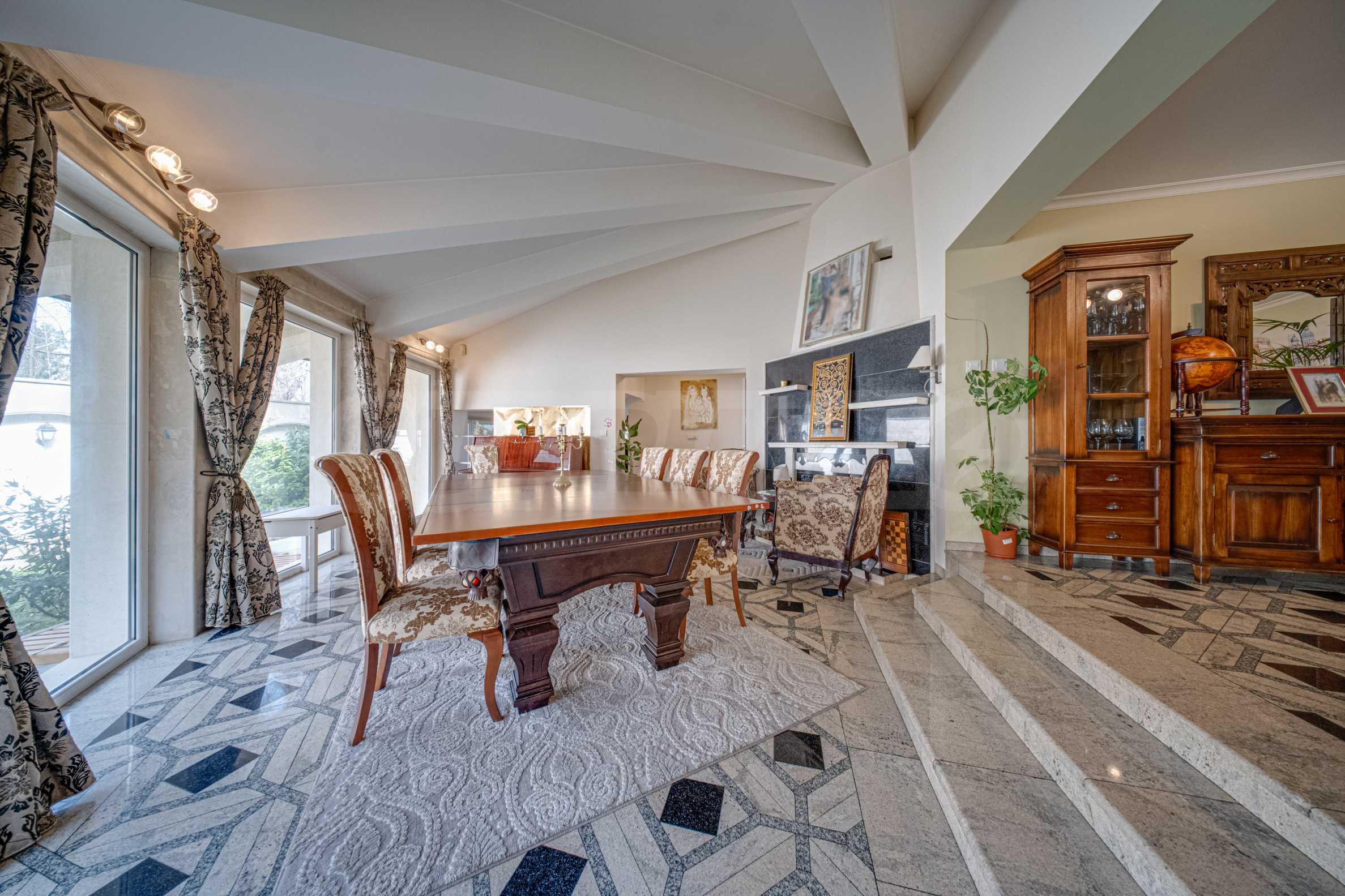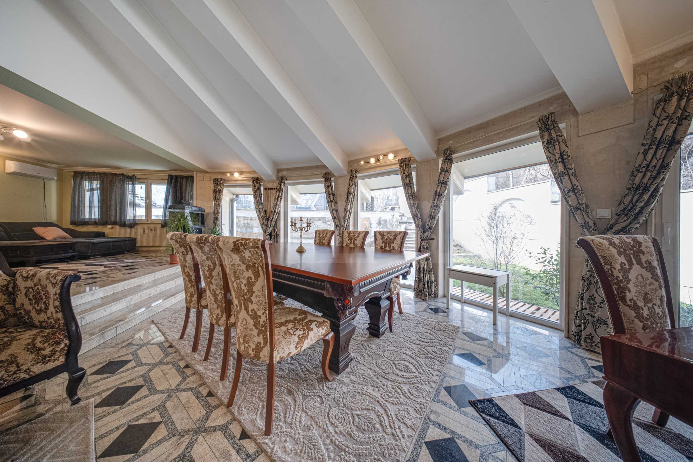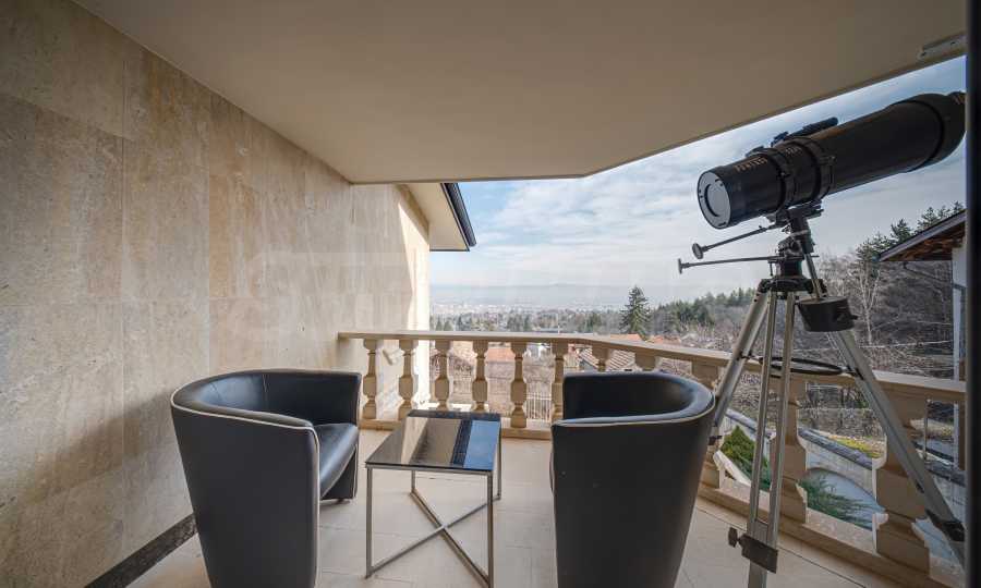 Представяме впечатляваща еднофамилна къща в полите на Витоша в кв. „Драгалевци“, на метри от Природен парк Витоша и в близост до ул. „Лешникова гора“. Районът е благоприятен за живеене, изпълнен с красиви панорами, зеленина и чист въздух. Комуникацията с града се осъществява лесно и удобно чрез бул. „Черни връх“ и Околовръстен път.