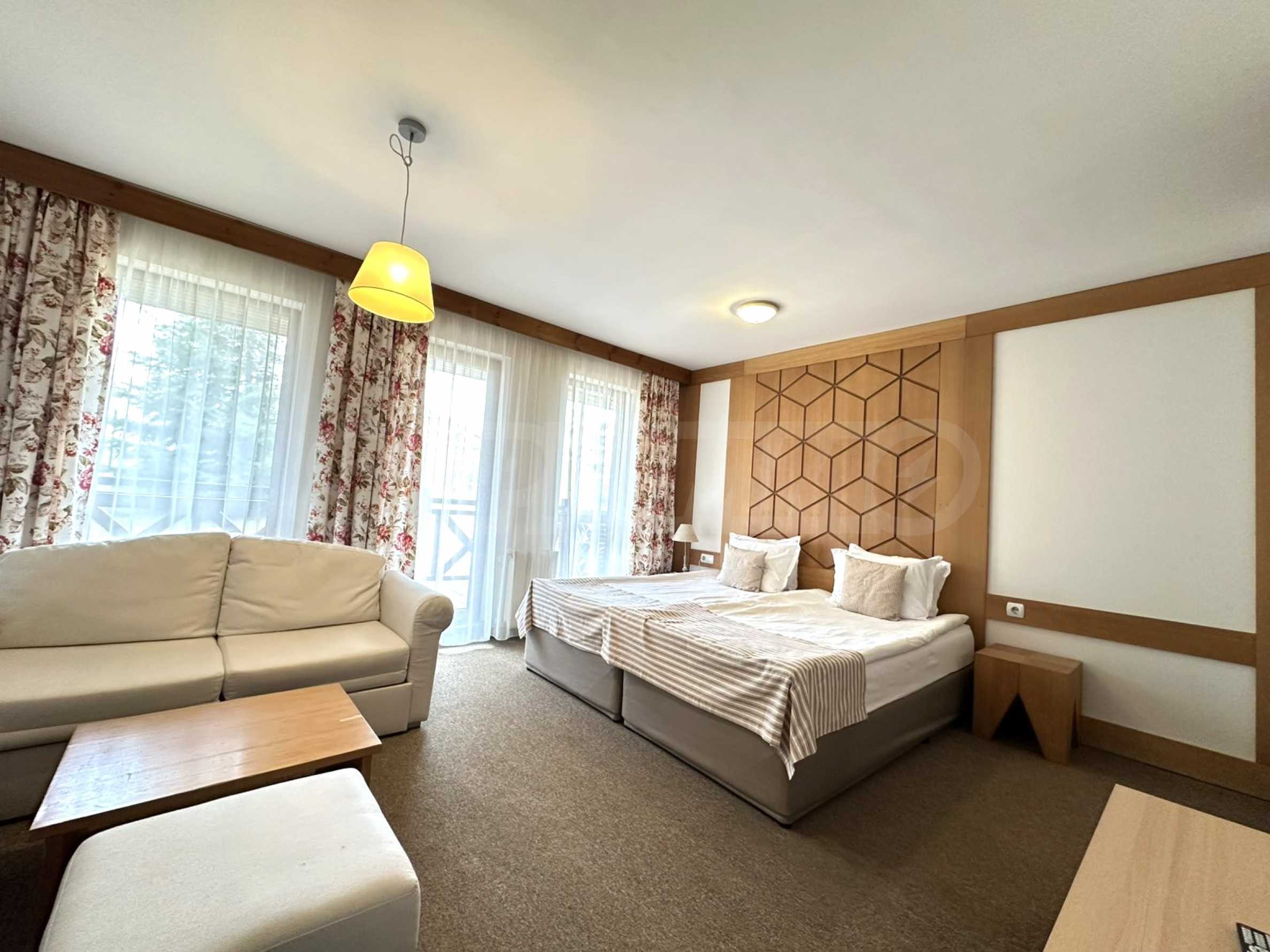 Представяме просторен и светъл едностаен апартамент в затворен комплекс, разположен сред живописна природа на границата на парк Пирин и на 400 м до начална станция на кабинковия лифт в популярния планински курорт Банско.