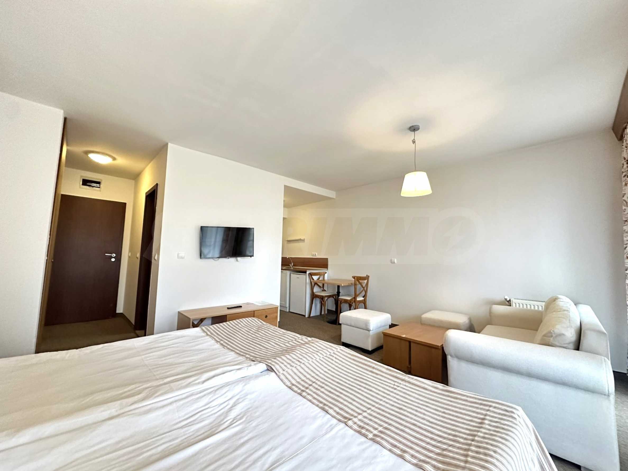 Апартаментът е обзаведен и оборудван с котлон с две гнезда, абсорбатор, хладилник, мивка, шкафове за инвентар и посуда, маса за хранене, телевизор, спалня, диван, гардероб, баня с душ кабина, тоалетна, мивка с огледало.