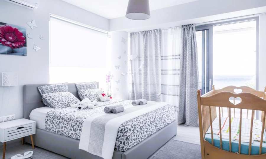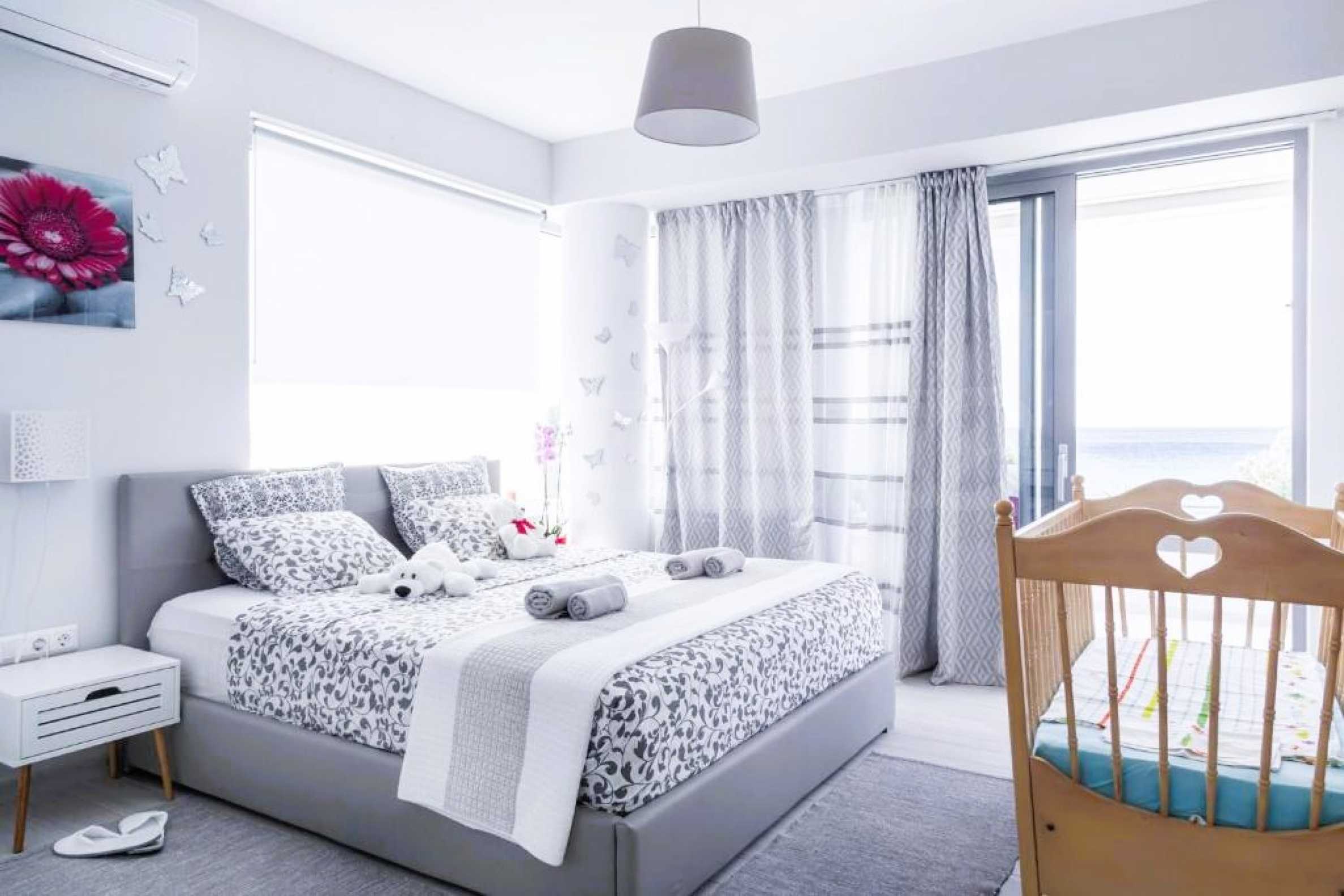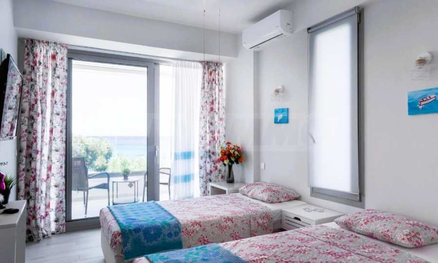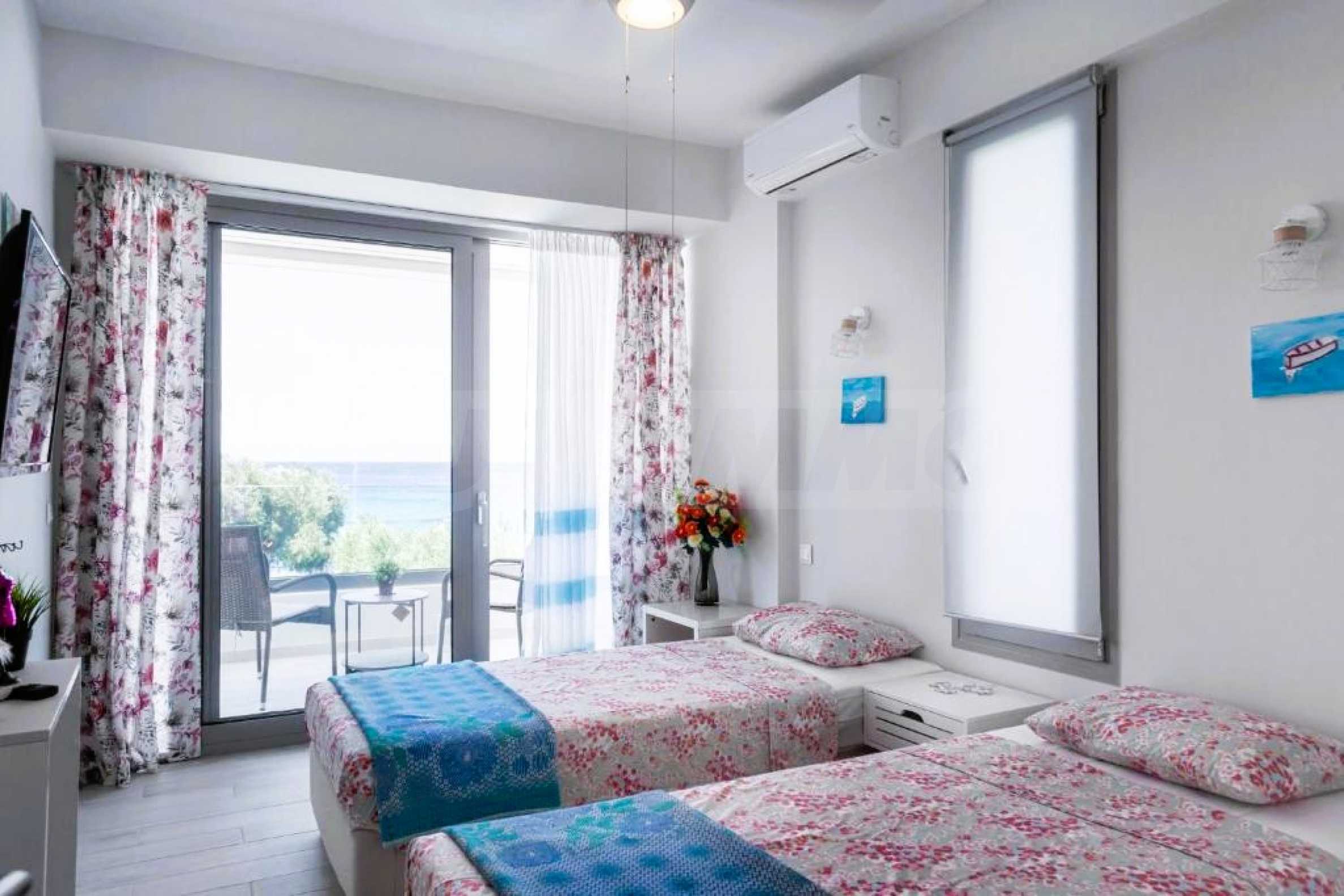 Гледка, която спира дъха: Тук морето не е просто „наблизо“ – то е част от интериора благодарение на огромните френски прозорци.