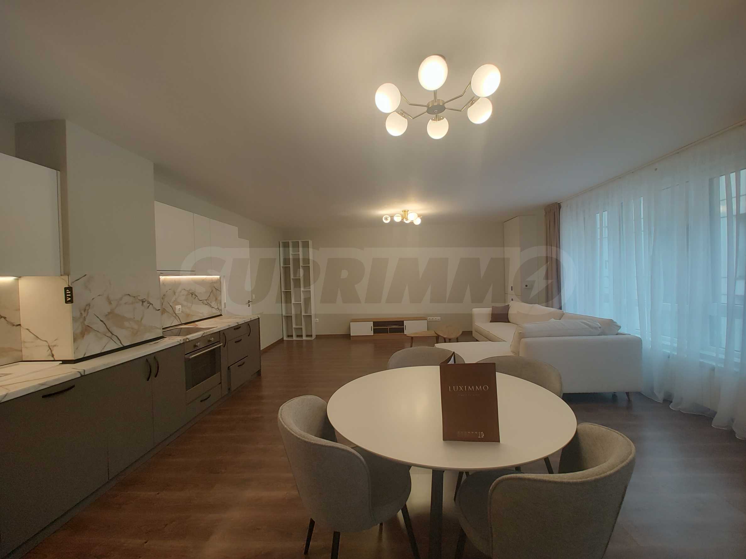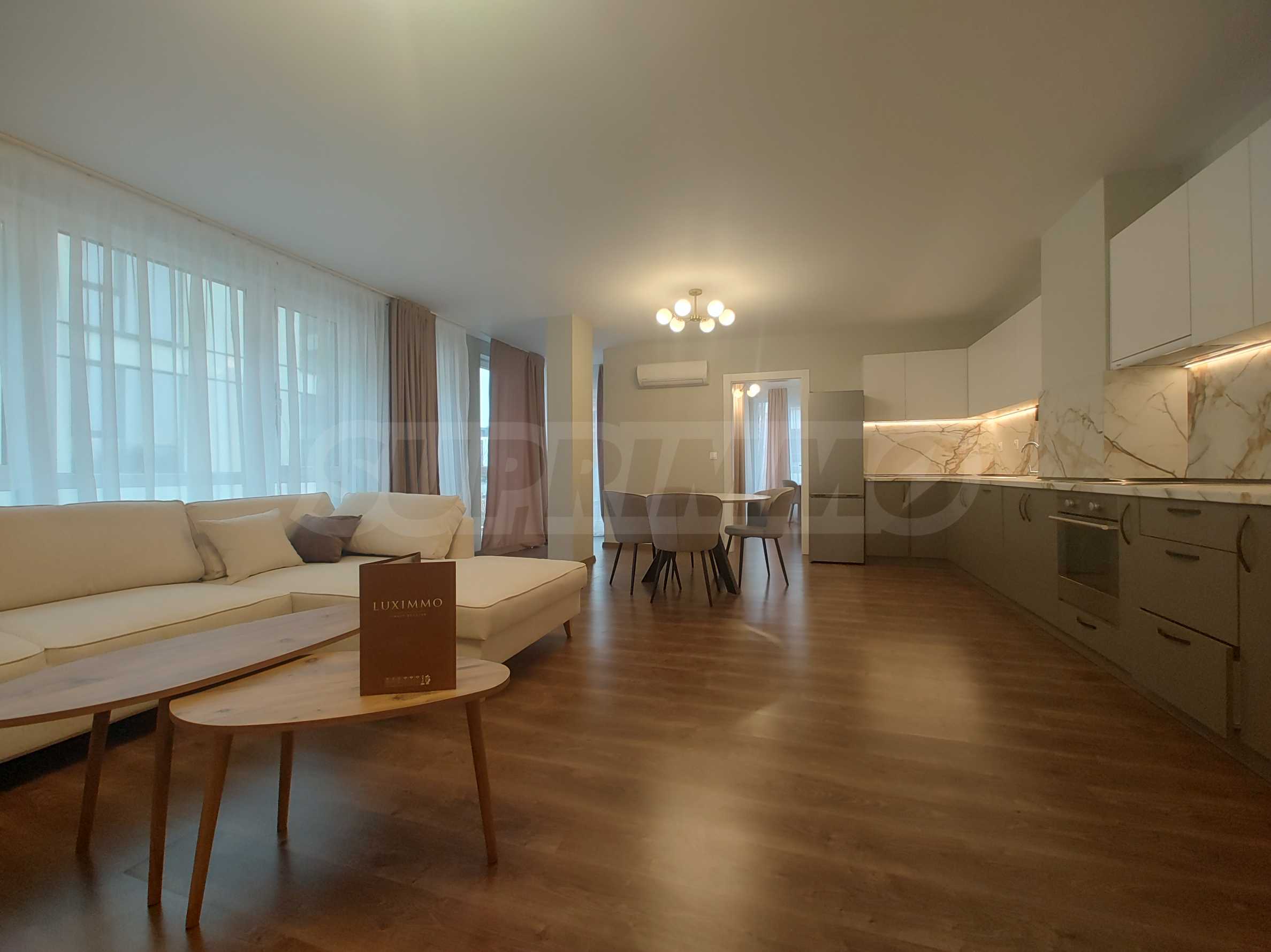 Апартаментът е напълно нов, необитаван досега и очаква своите първи наематели. Обзавеждането е подбрано с изключителен вкус — висококачествени мебели, премиум електроуреди, стилни декоративни акценти и внимание към всеки детайл. В жилището ще откриете всичко необходимо за комфортен, модерен и луксозен начин на живот.