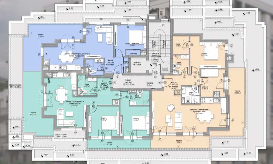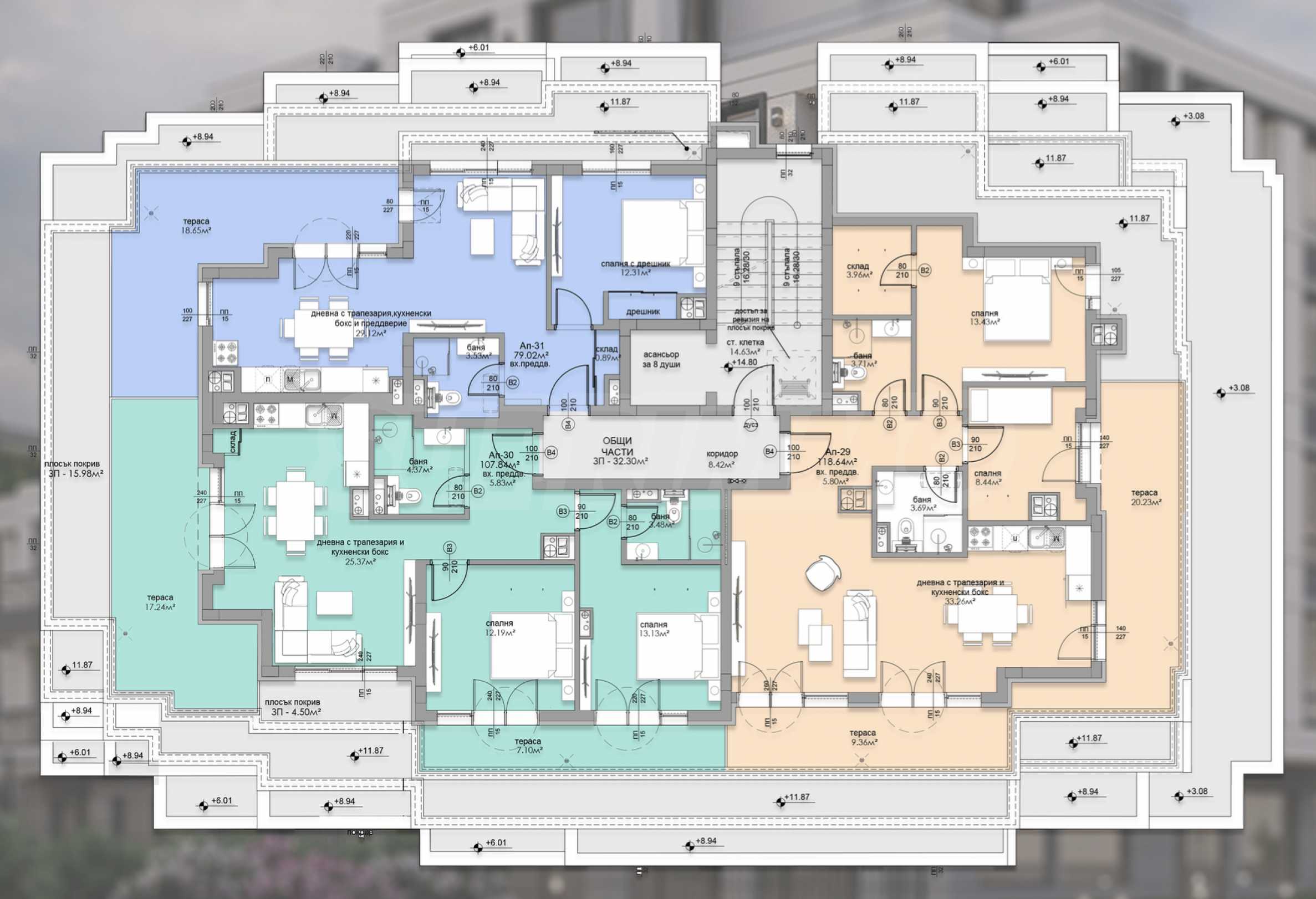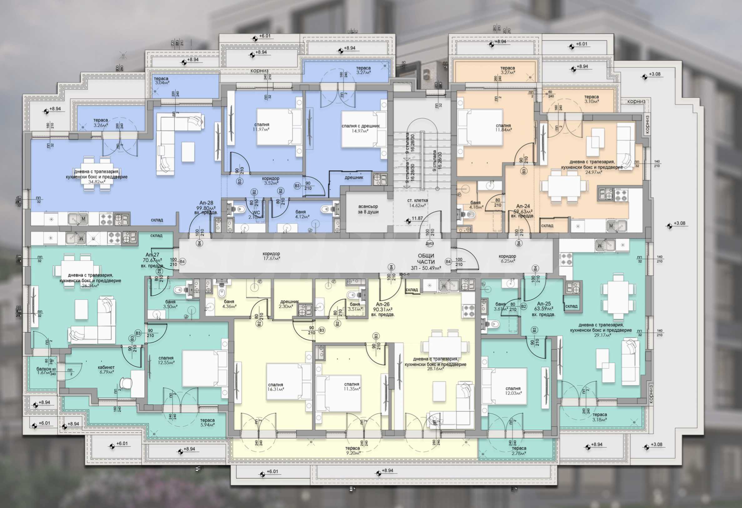 • Монолитна конструкция с плосък покрив, хидро и топлоизолация;