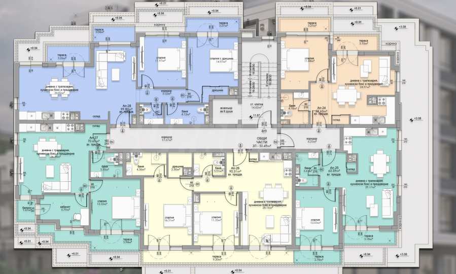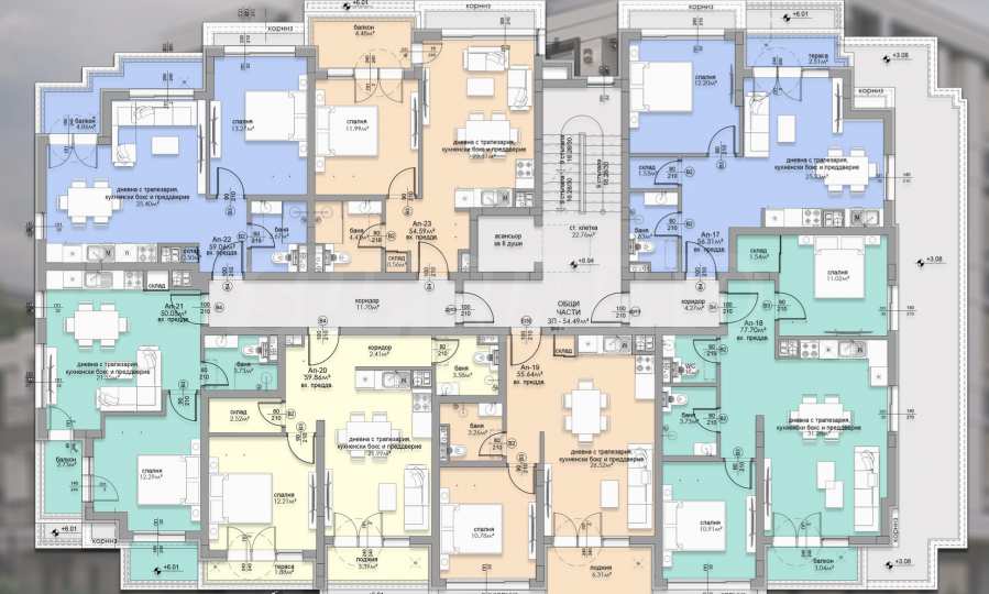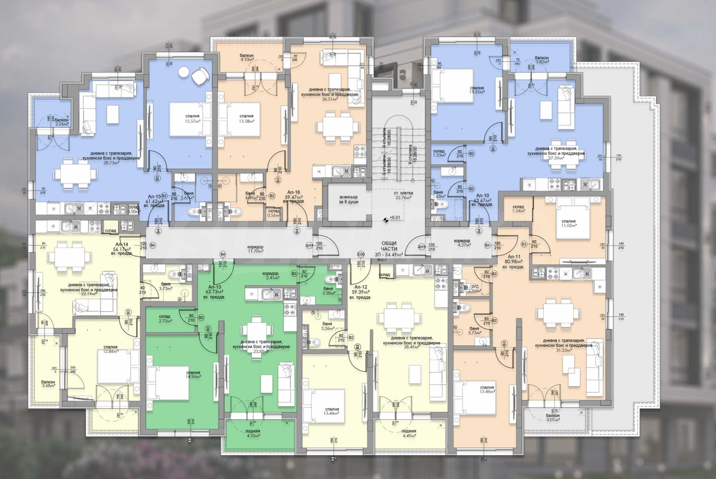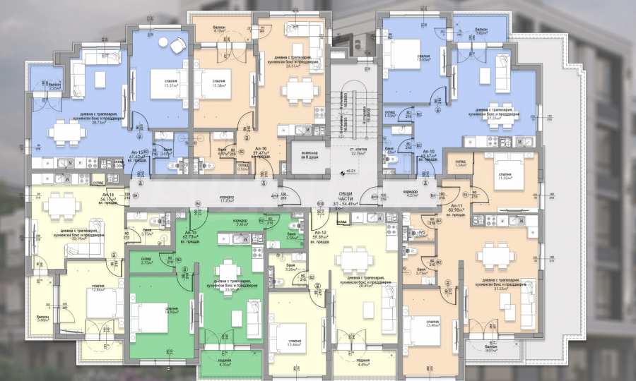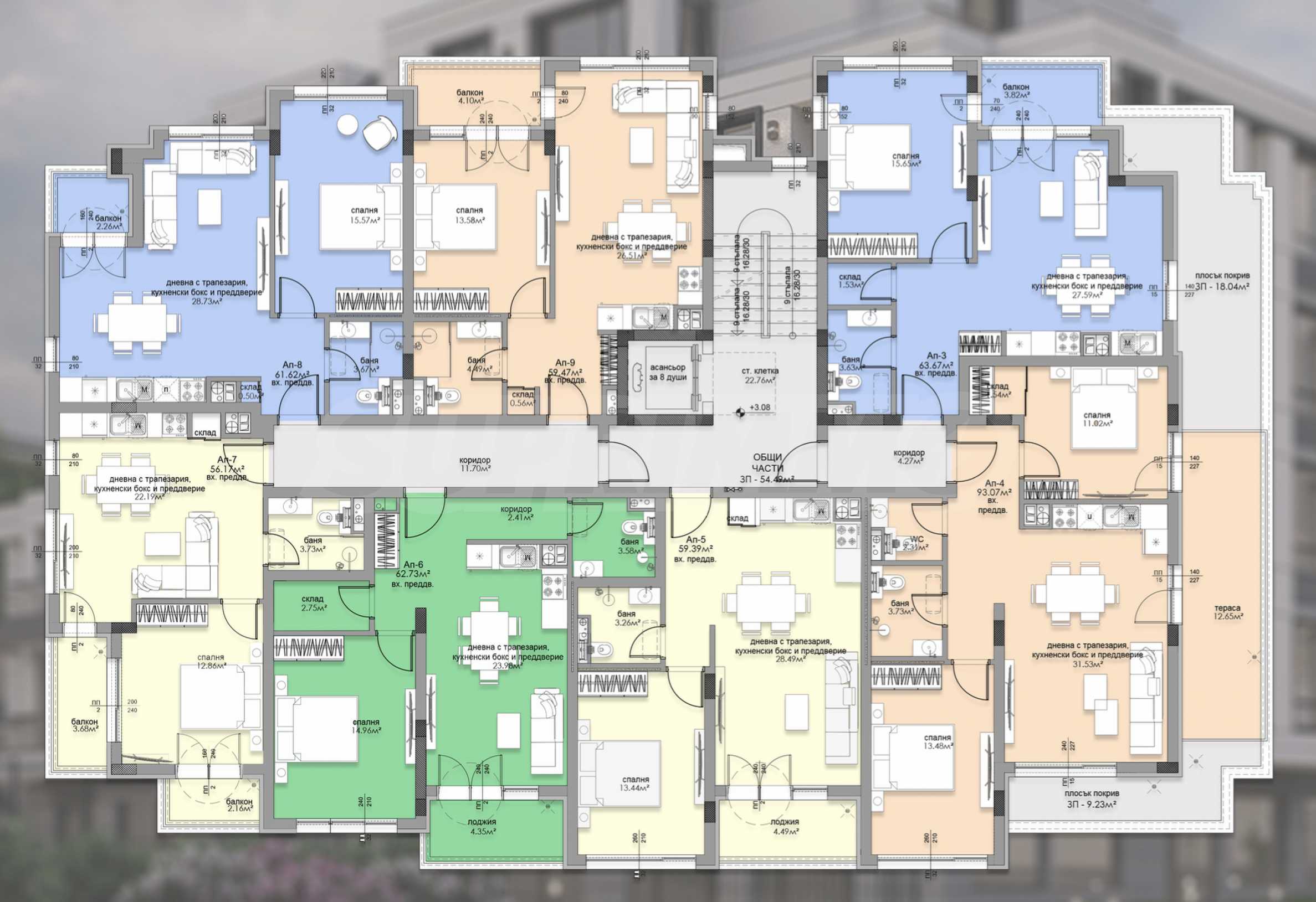 Апартаментите са от тип двустайни и тристайни жилища, предлагат се в степен на завършеност по БДС.