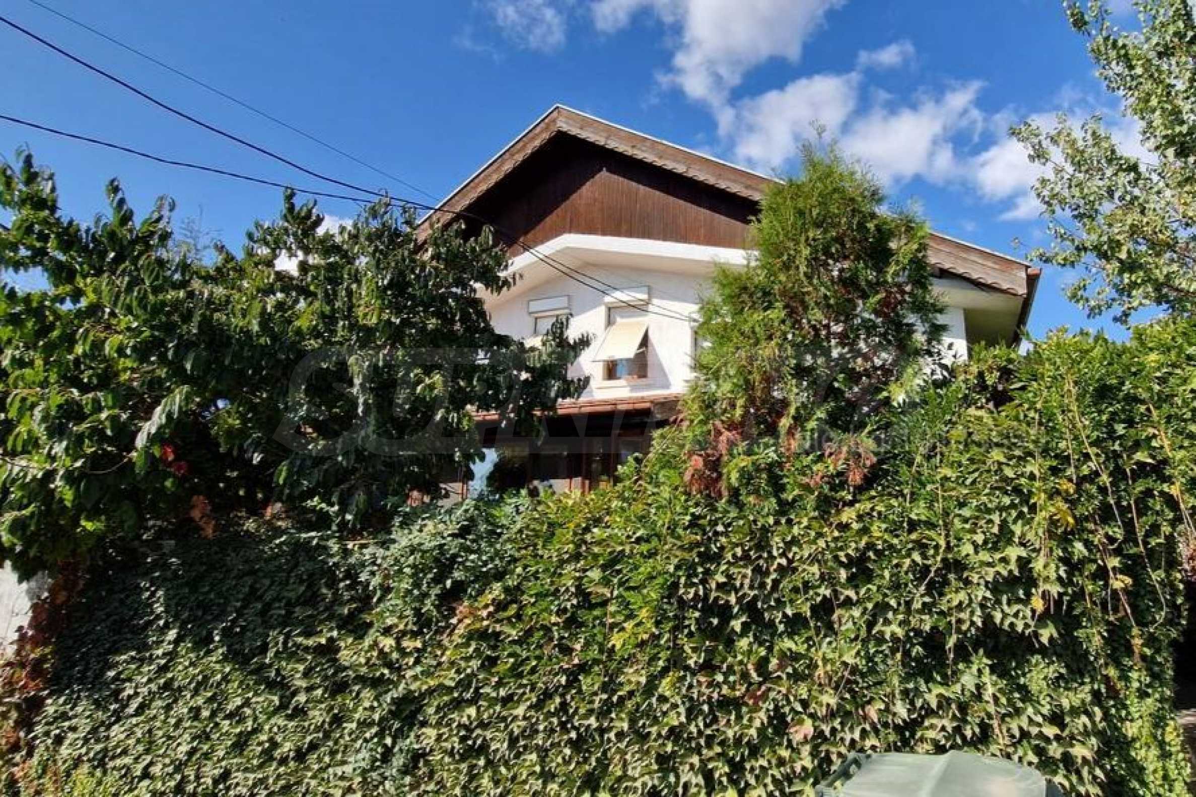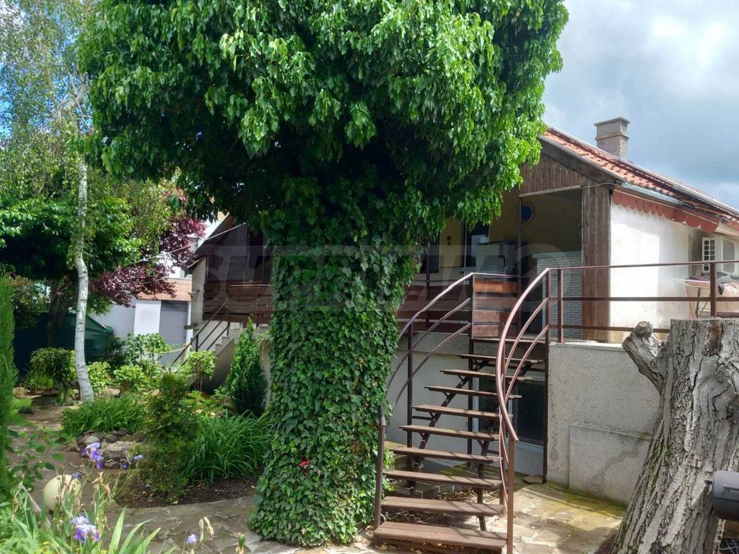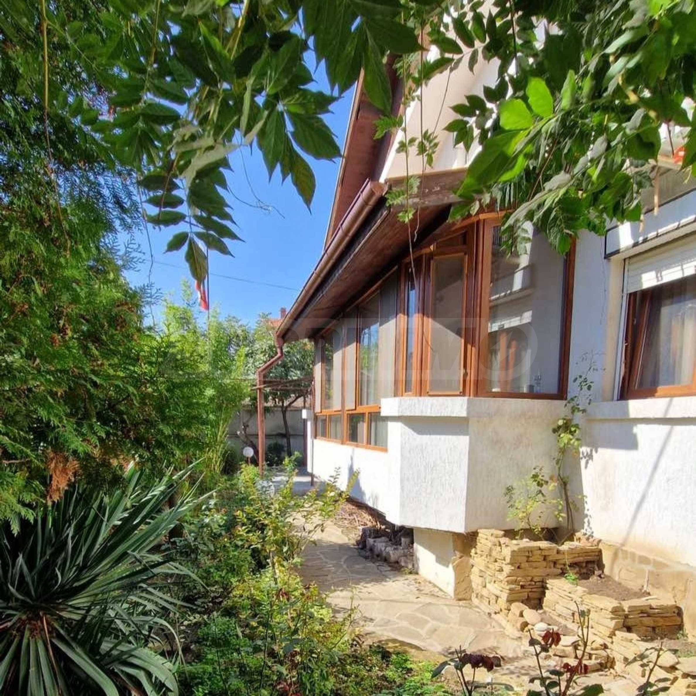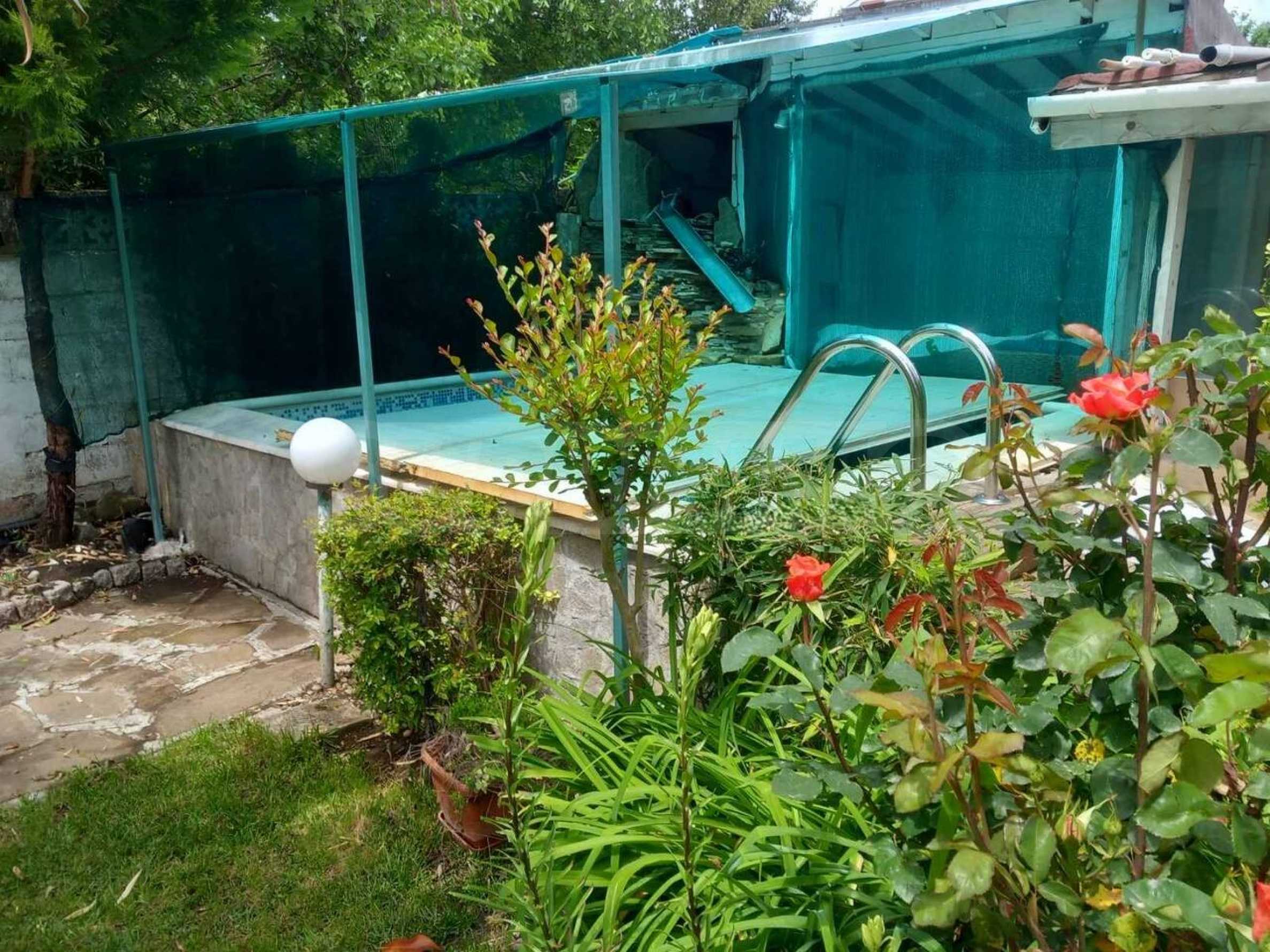 Къщата е с РЗП - 156 кв.м, разположена в собствен двор с площ от 687 кв.м, с басейн, градина, барбекю зона, санитарен възел, заредена работилница, беседка и външна чешма.