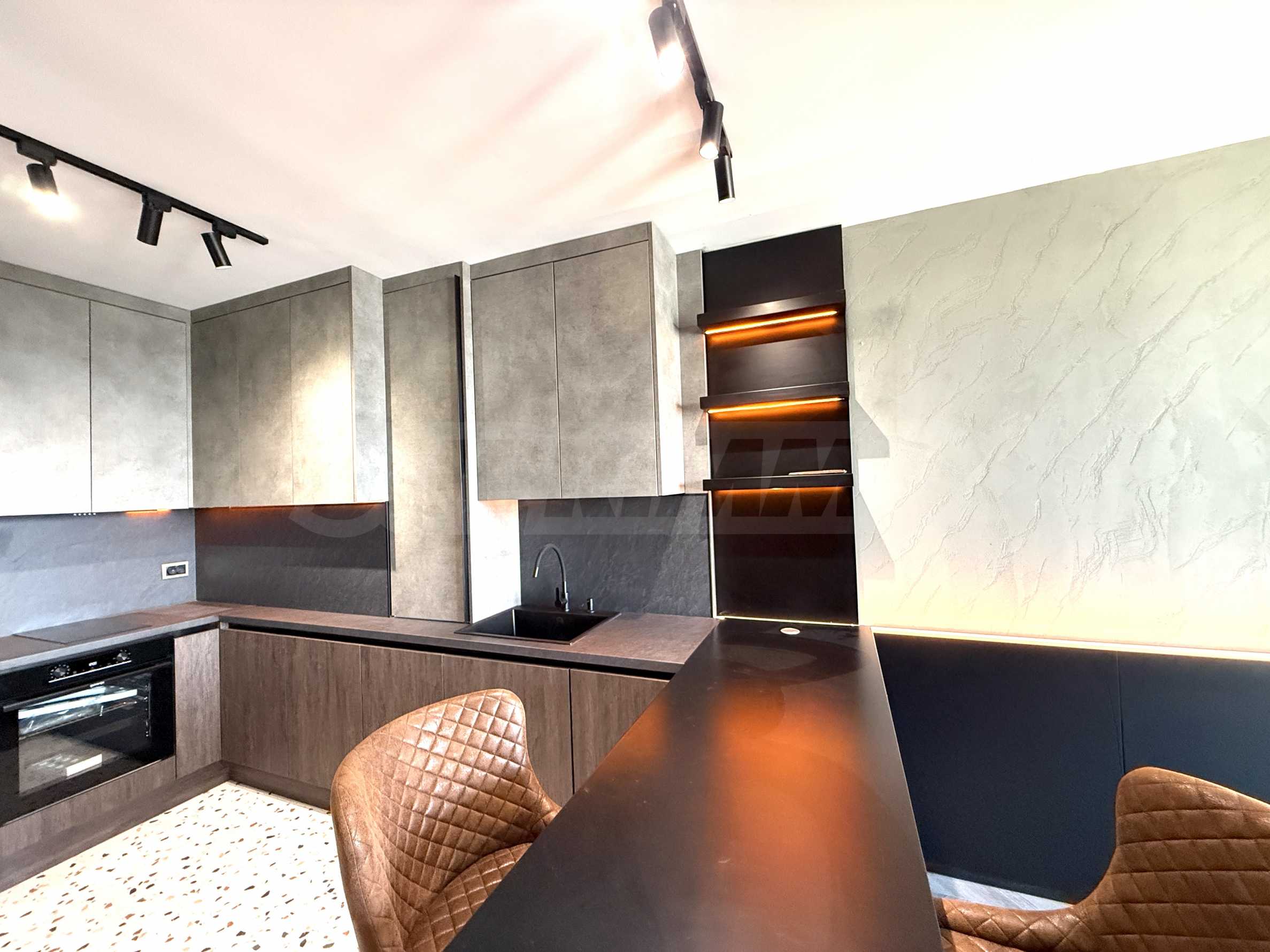 Предлага се напълно обзаведен и оборудван. В дневната има стилна секция от МДФ, телевизор, декоративна камина, LED осветление. Кухня с пълно оборудване на марката Gorenje: вграден хладилник с фризер, миялна машина, керамичен двоен котлон; фурна и абсорбатор. Ще бъде поставен диван, холна маса и вътрешни дървени щори. Спалнята е обзаведена с легло 160/200, телевизор, голям гардероб. Банята е оборудвана с душ, моноблок с вградено казанче, мивка с шкаф и огледало, лира и бойлер. Жилището е с ниски консумативни разходи. Има мокро помещение с пералня и сушилня - Gorenje.