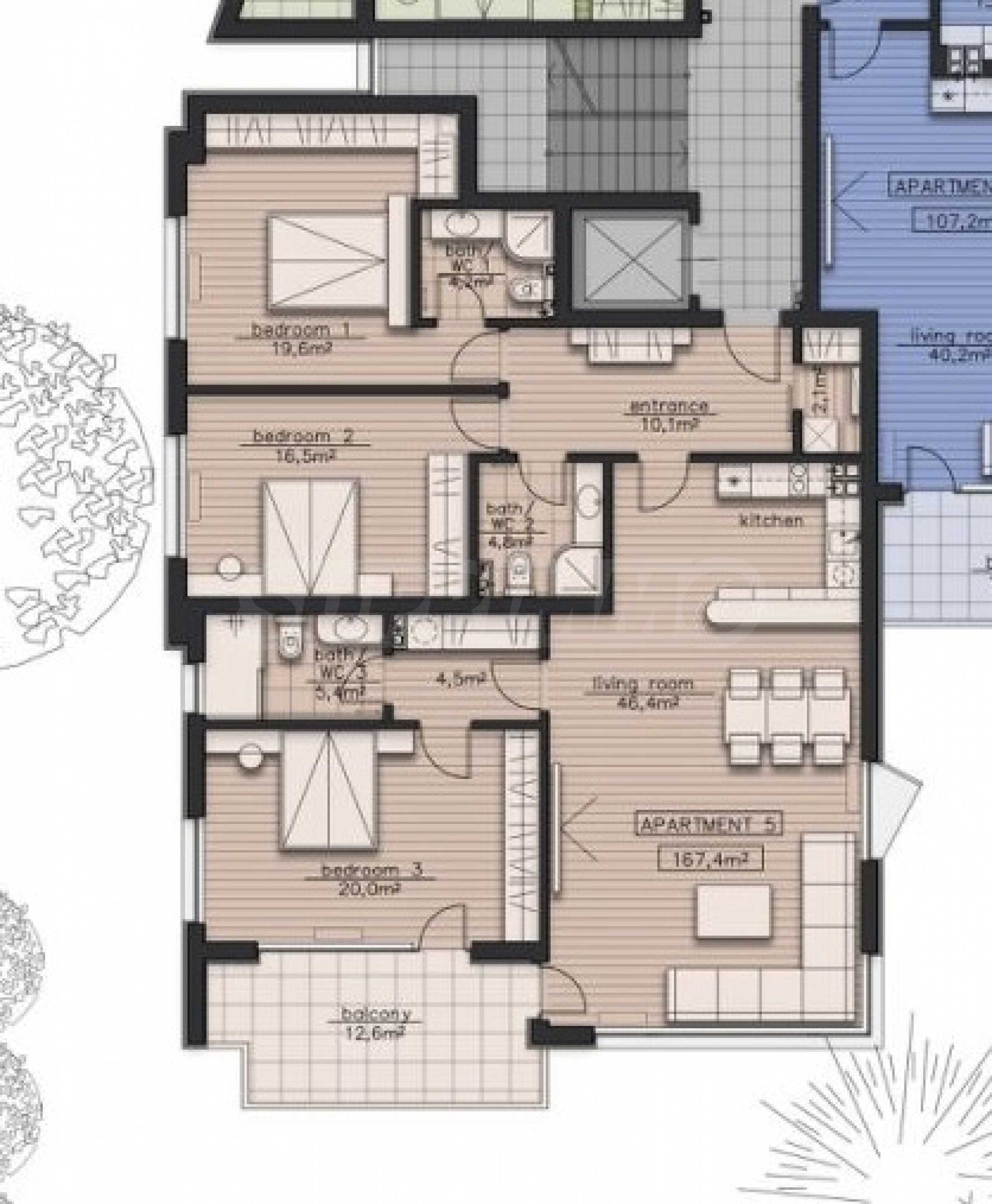 • балкон - 12,6 кв.м.