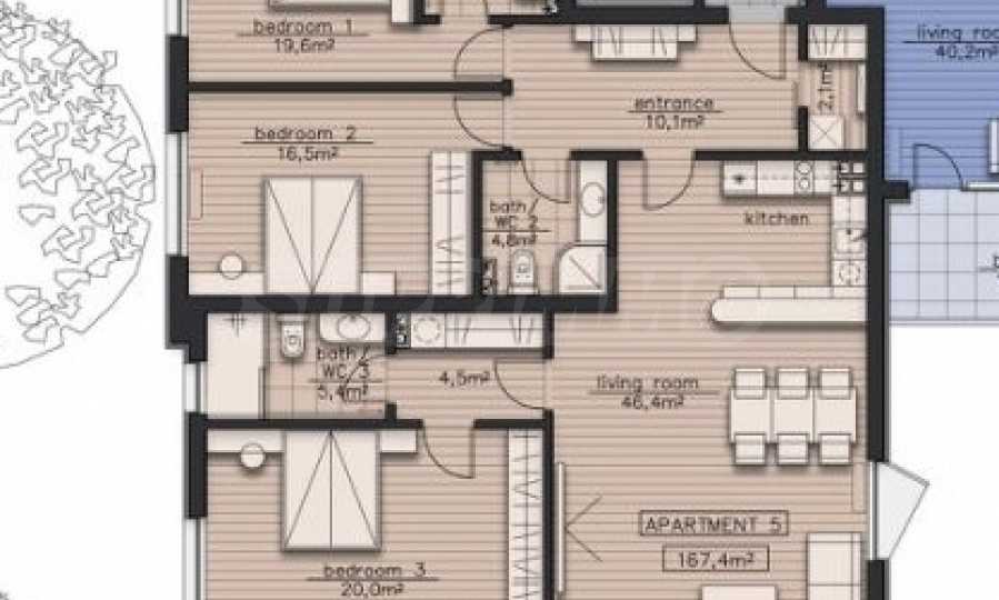 • три големи спални: 20 кв.м., 19,6 кв.м., 16,5 кв.м.